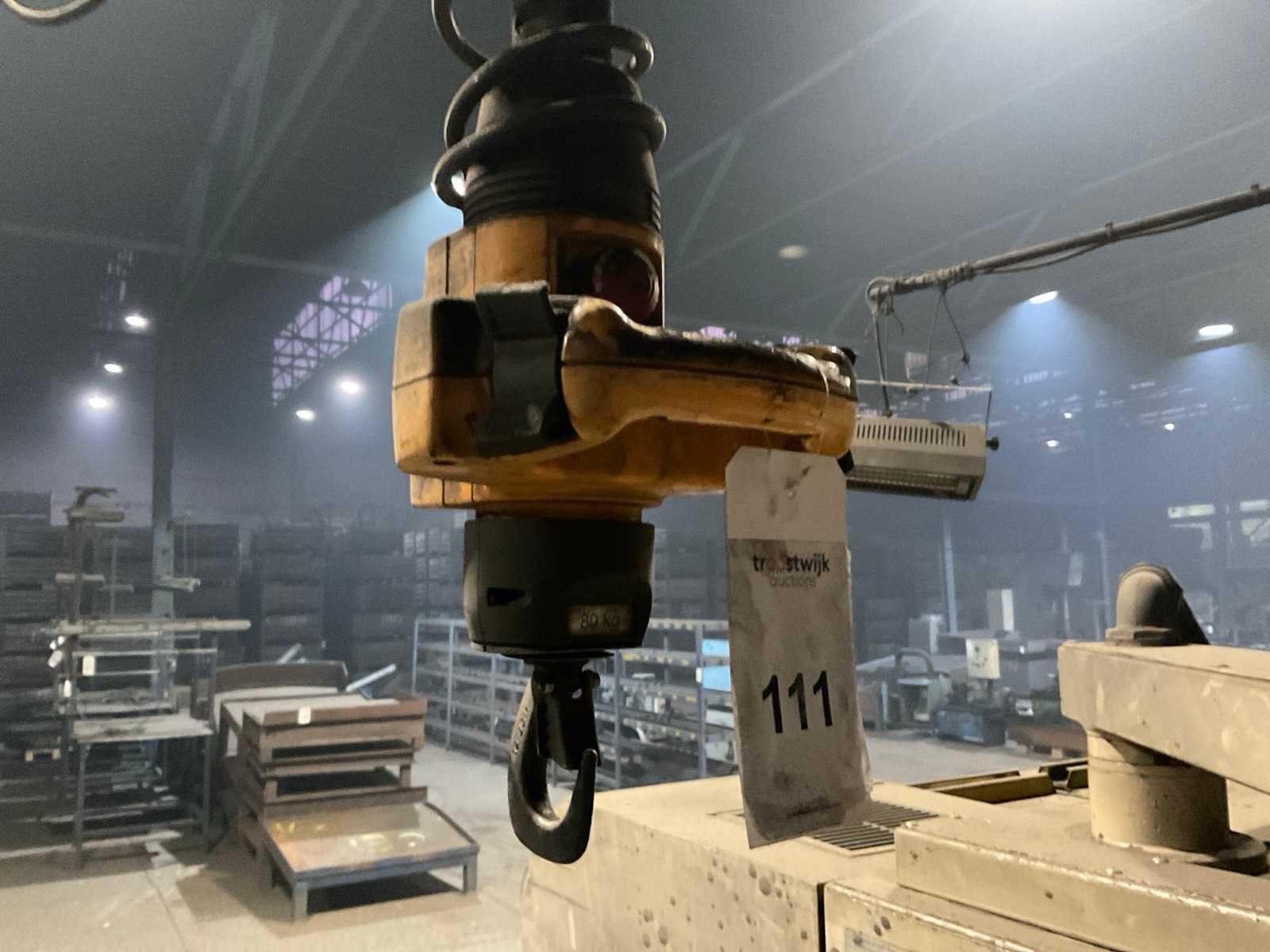 Aan wand gemonteerd. Nee Overspanning: 5m Hijsvermogen: 125kg Max. hijshoogte: 4m Aansluiting: 230V