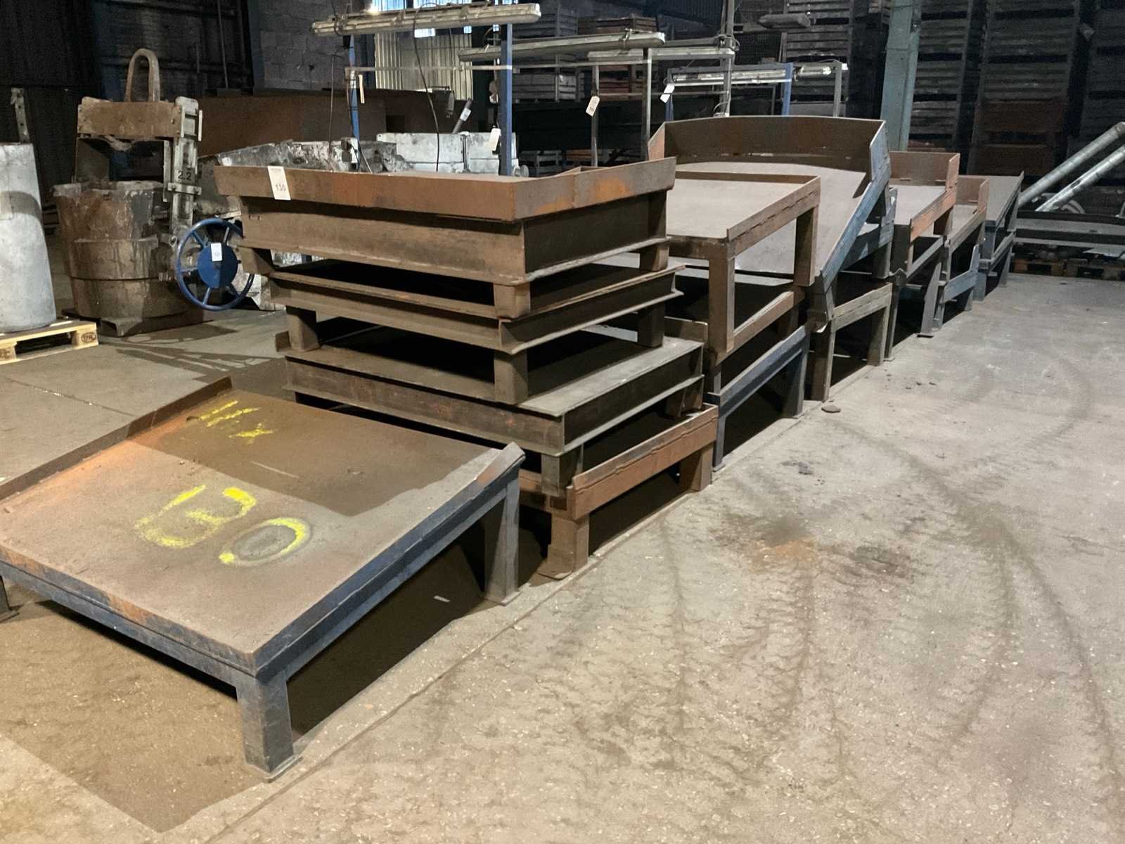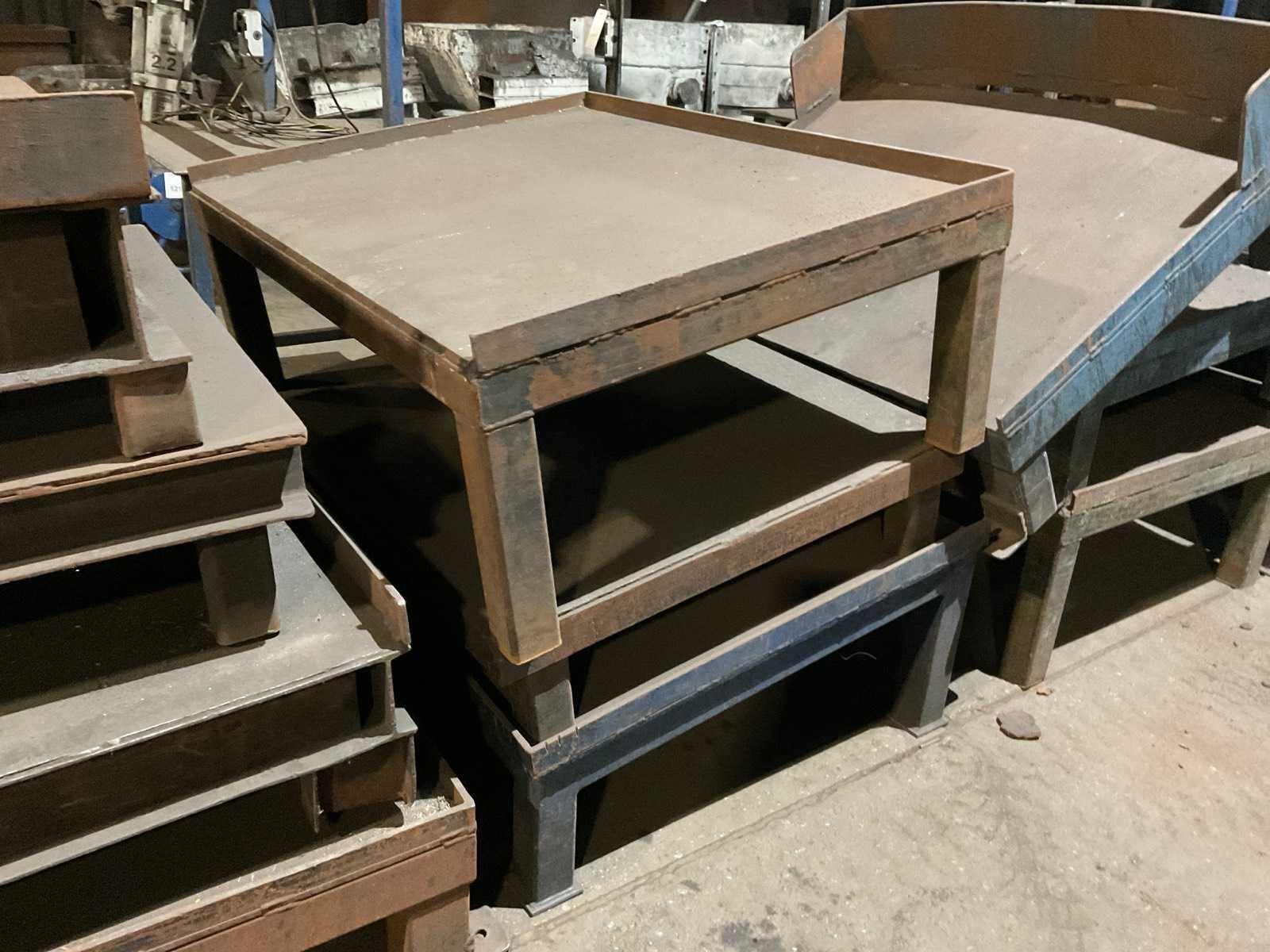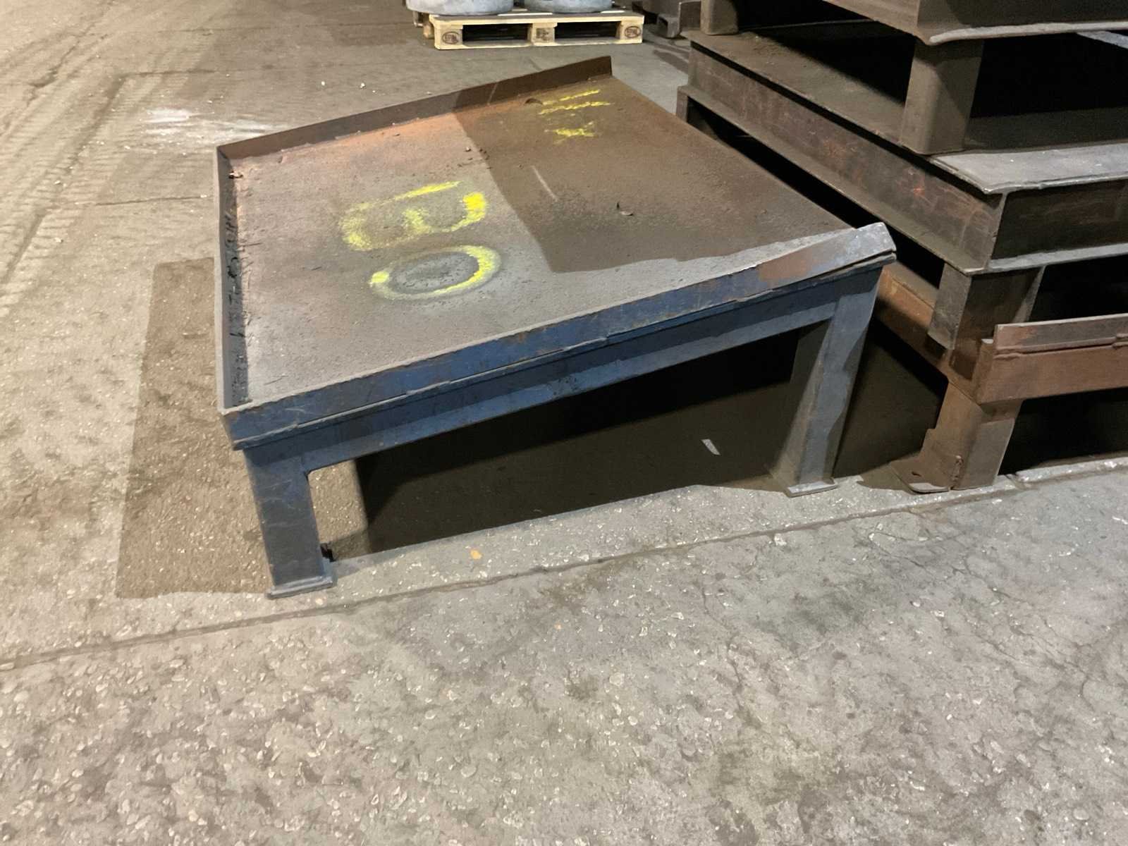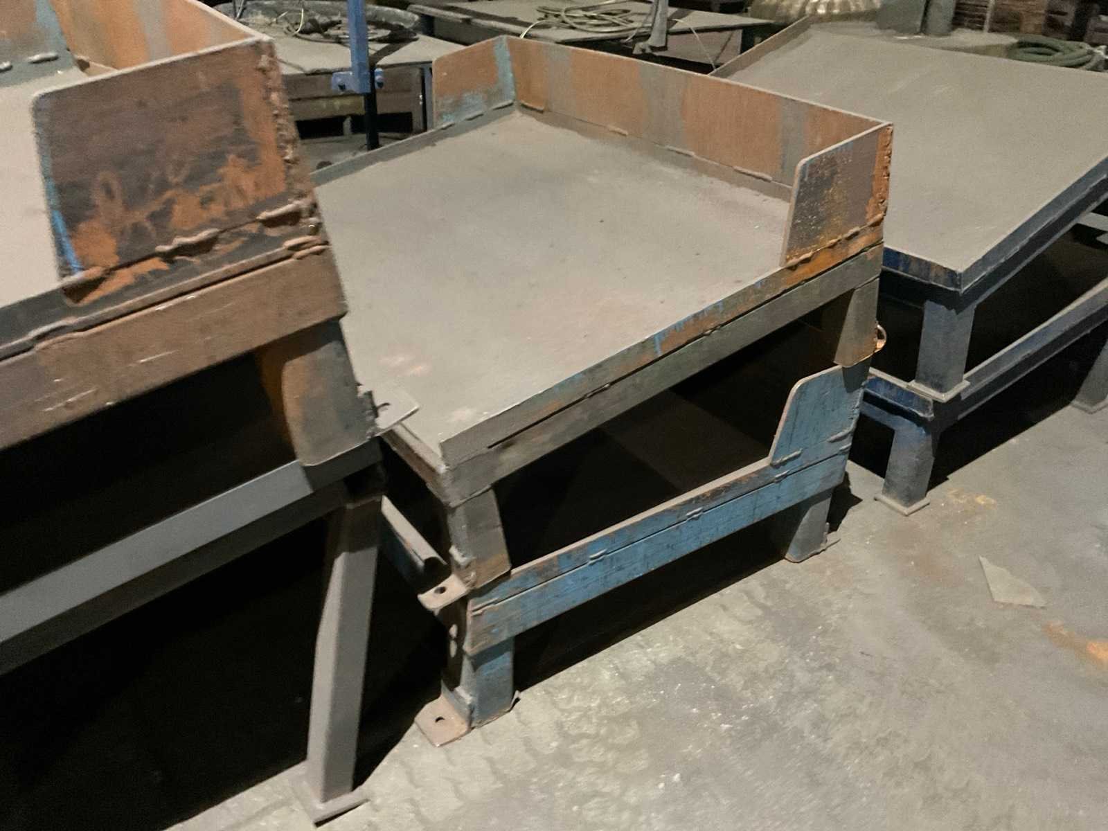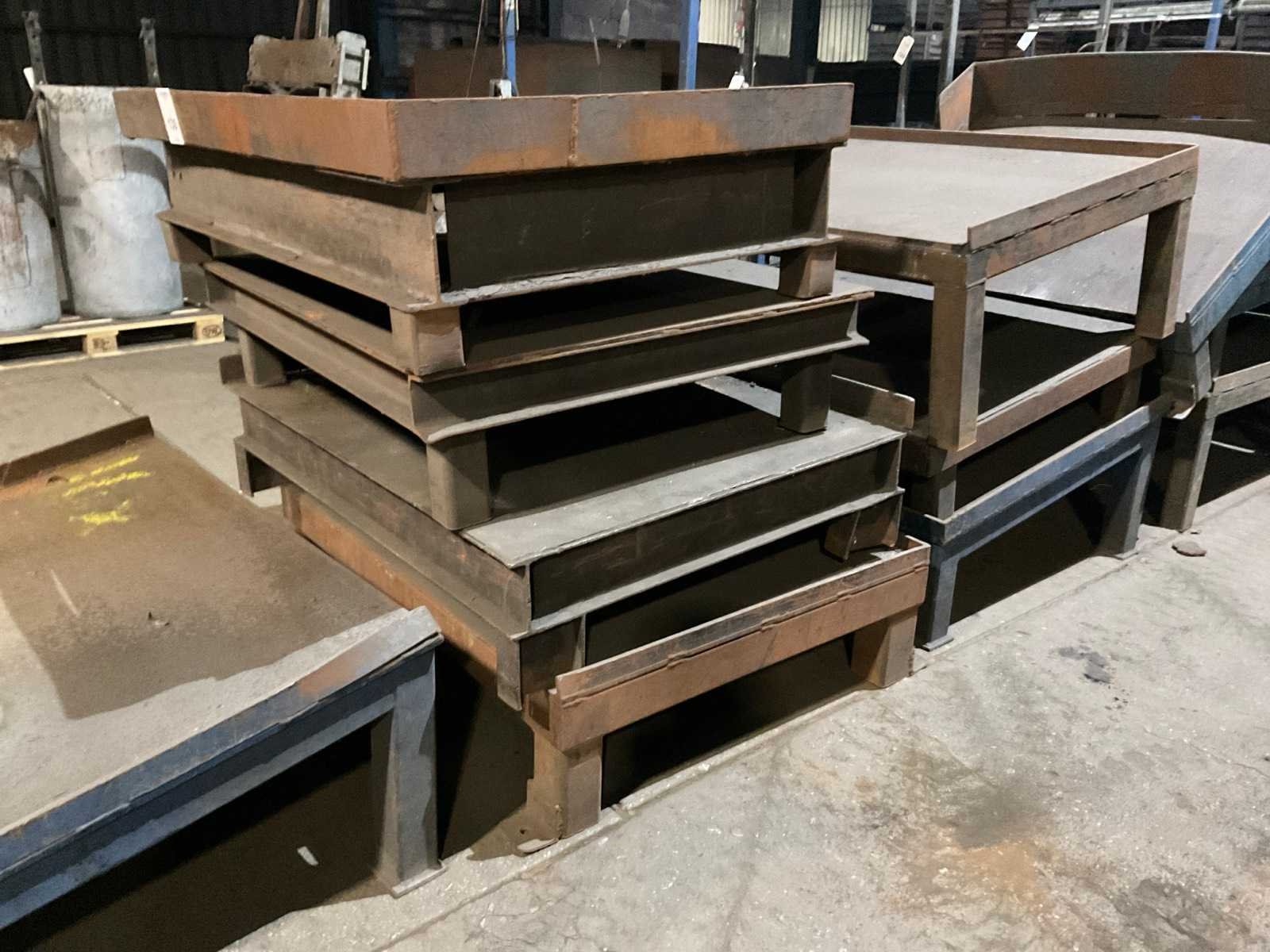 Diverse metalen verhogingen en materiaalopvangbak, in diverse afmetingen, o.a. ca. 130x100x50 cm. Nee