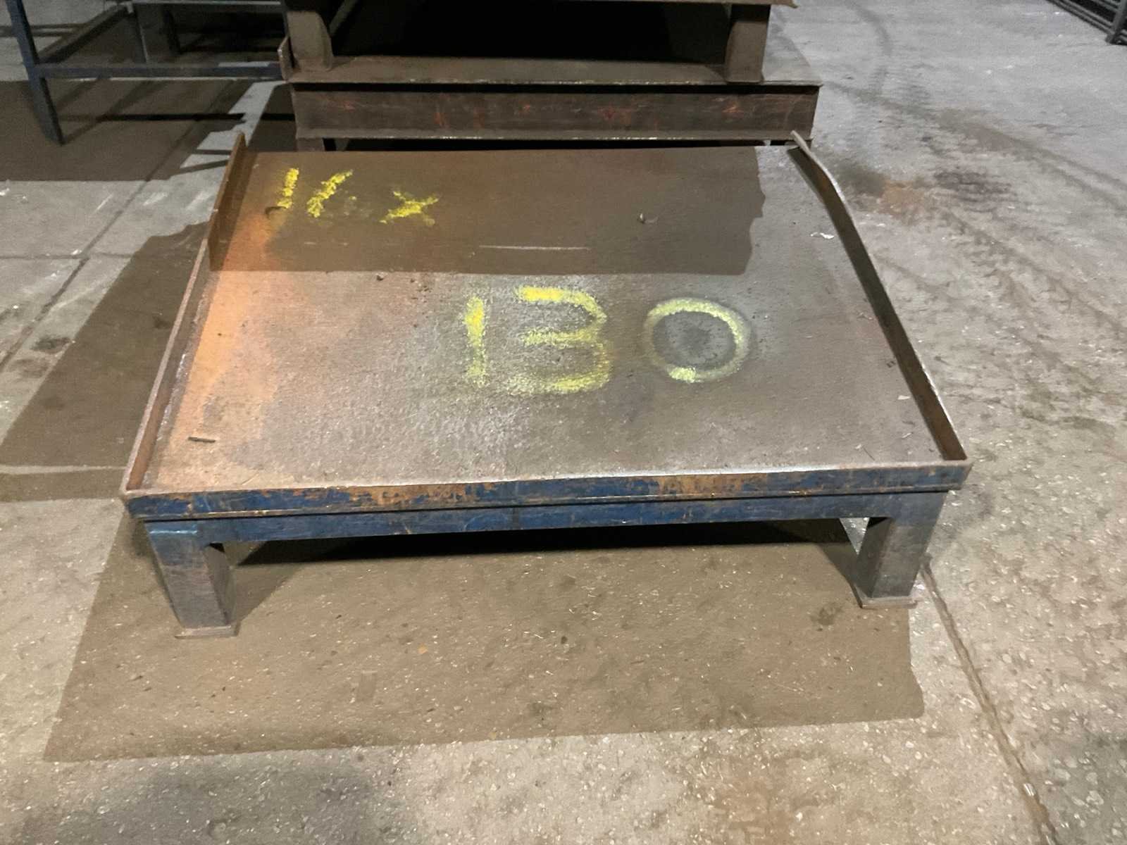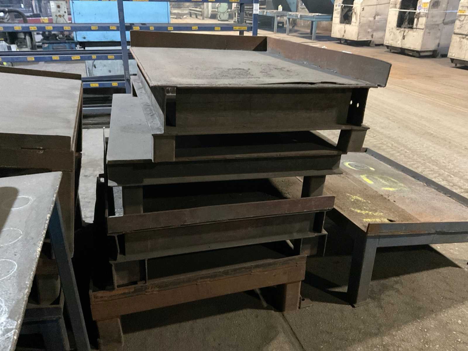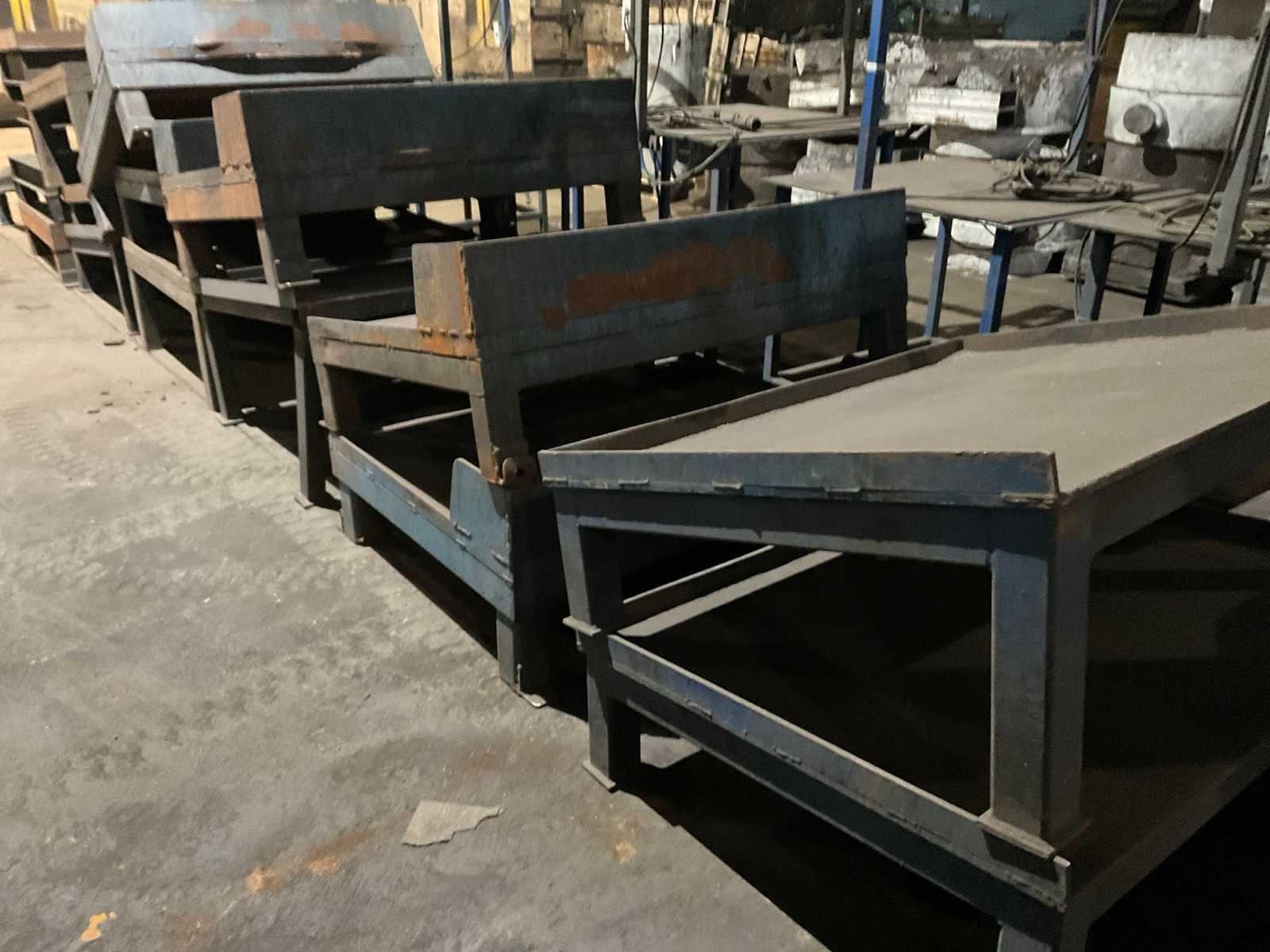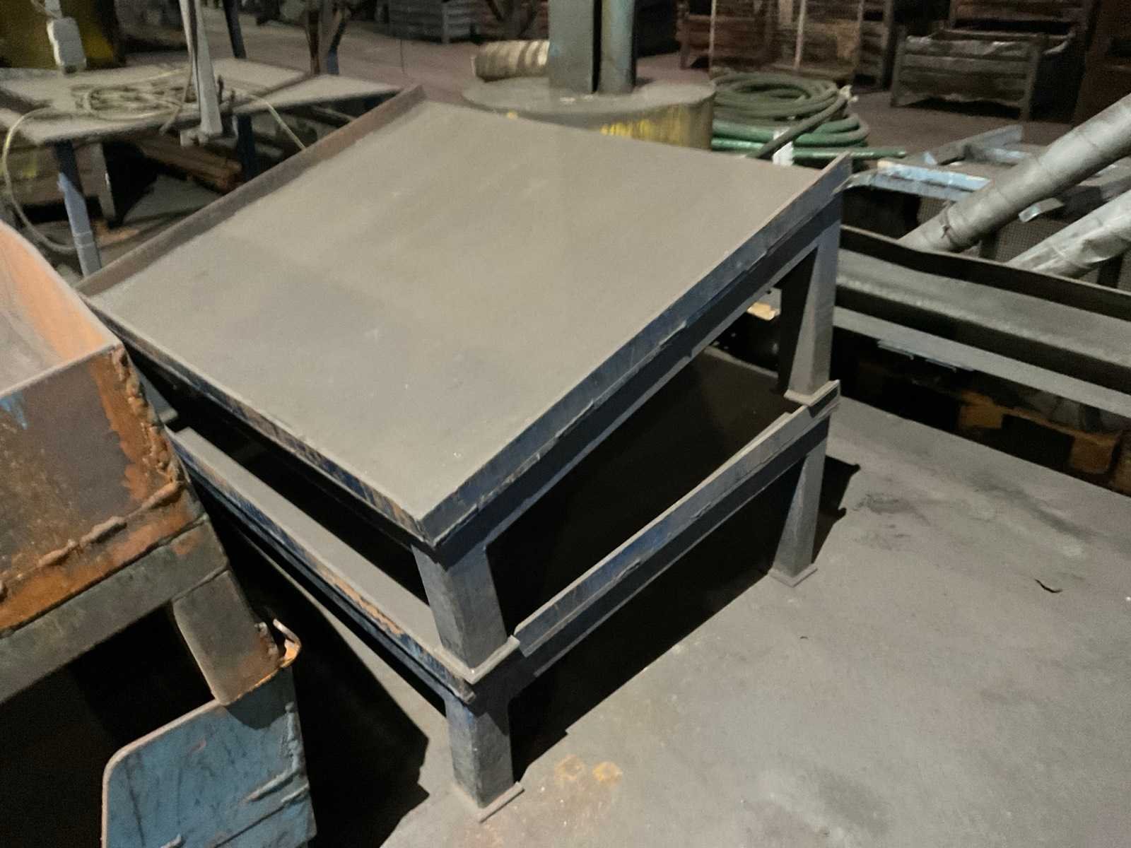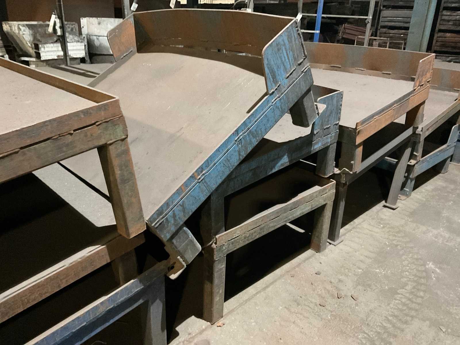Diverse metalen verhogingen en materiaalopvangbak, in diverse afmetingen, o.a. ca. 130x100x50 cm. Nee
