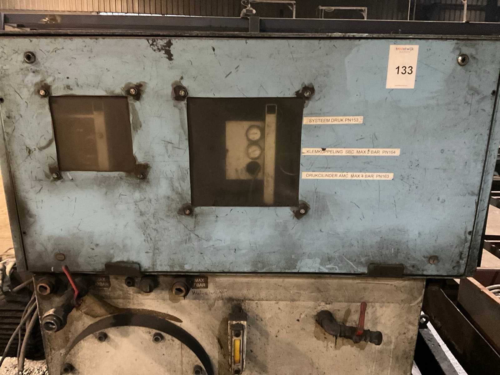 Met lekbak, afmeting ca. 250x140x20 cm. Nee Merk: Georg Fischer Disa Type: 2013 MK4/PLC-A AMC Bouwjaar: 1998 Aansluiting: 400V Afmeting l: 2000mm Afmeting b: 1200mm Afmeting h: 1450mm