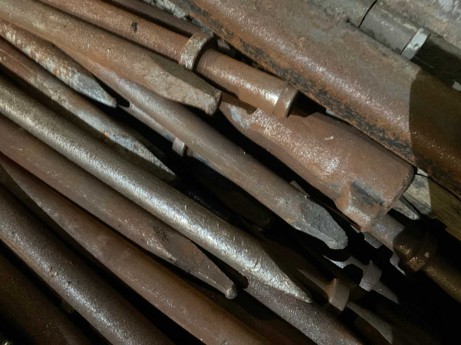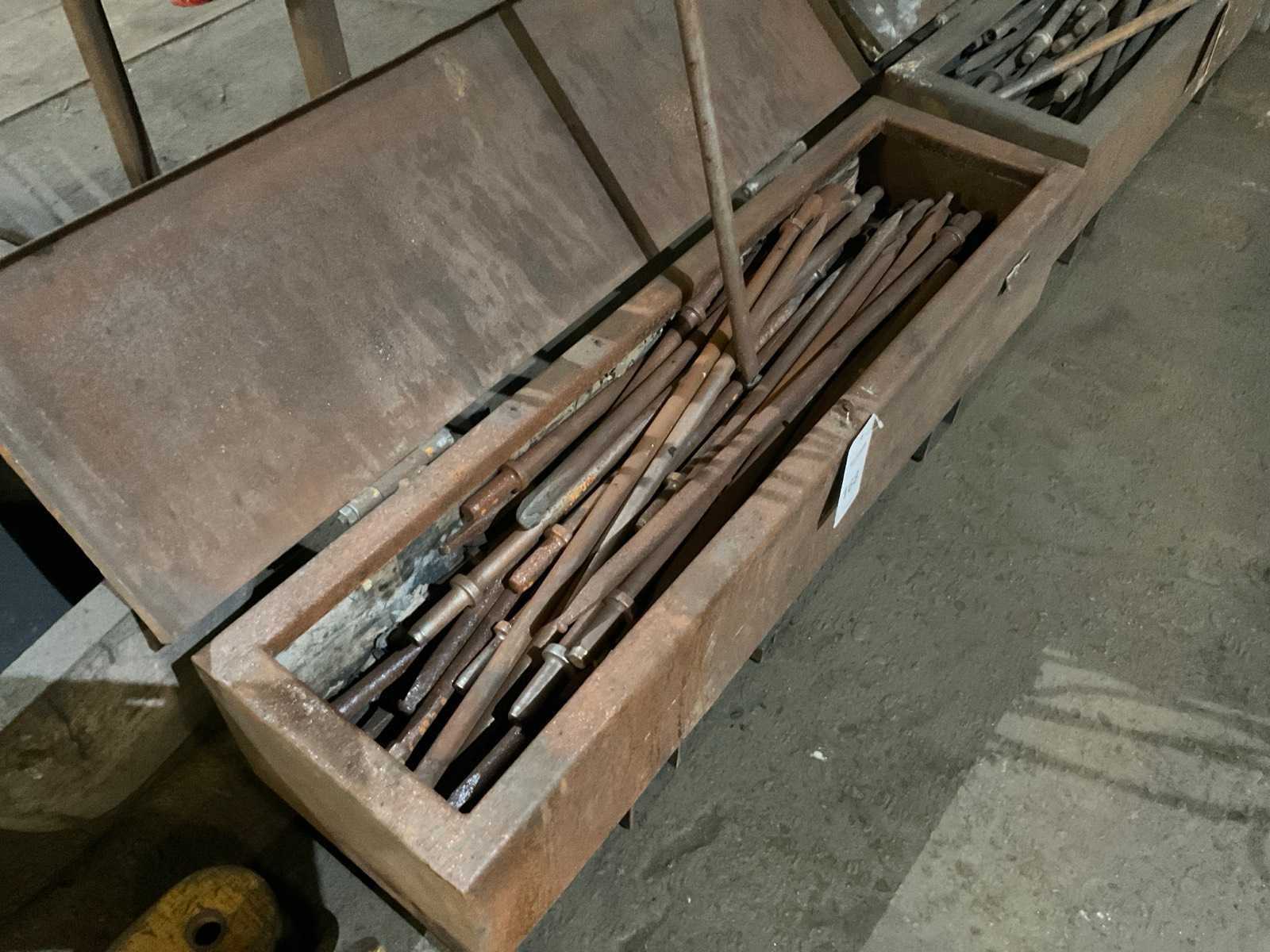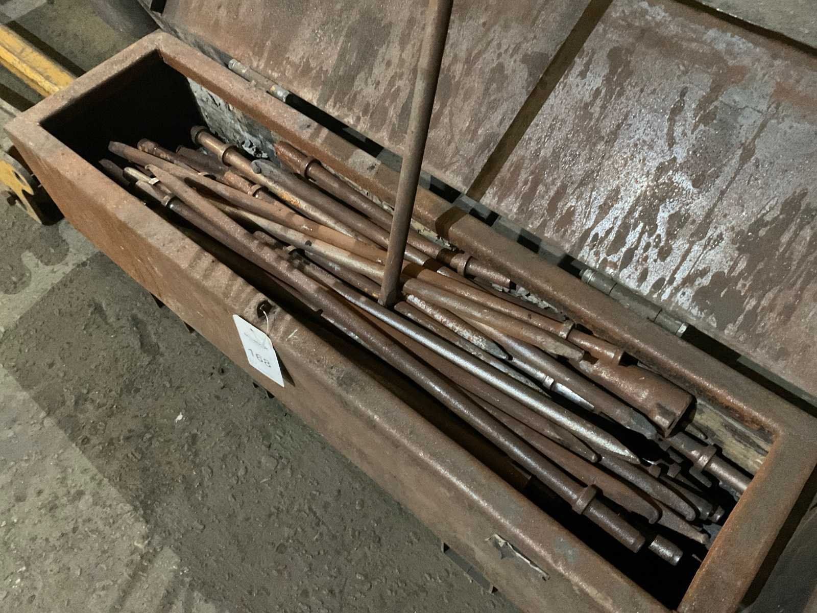 Kist ca. 130x35x27 cm inclusief puntbeitels v.v. ronde kraag. Nee