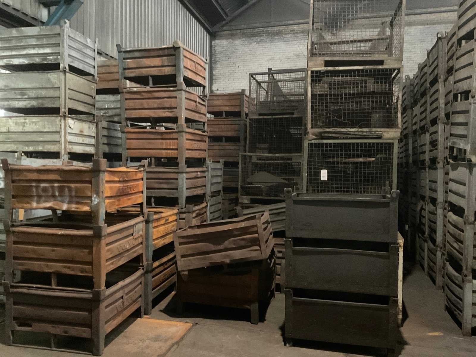 3 rijen met materiaalbakken, w.o. ‘ Volvo’ en ‘DAF’ ca. 100x100x60 cm en gitterboxen, aantal geschat ca. 50 bakken en 80 gitterboxen Nee Type: Metalen Lengte: 120cm Breedte: 80cm Hoogte: 60cm