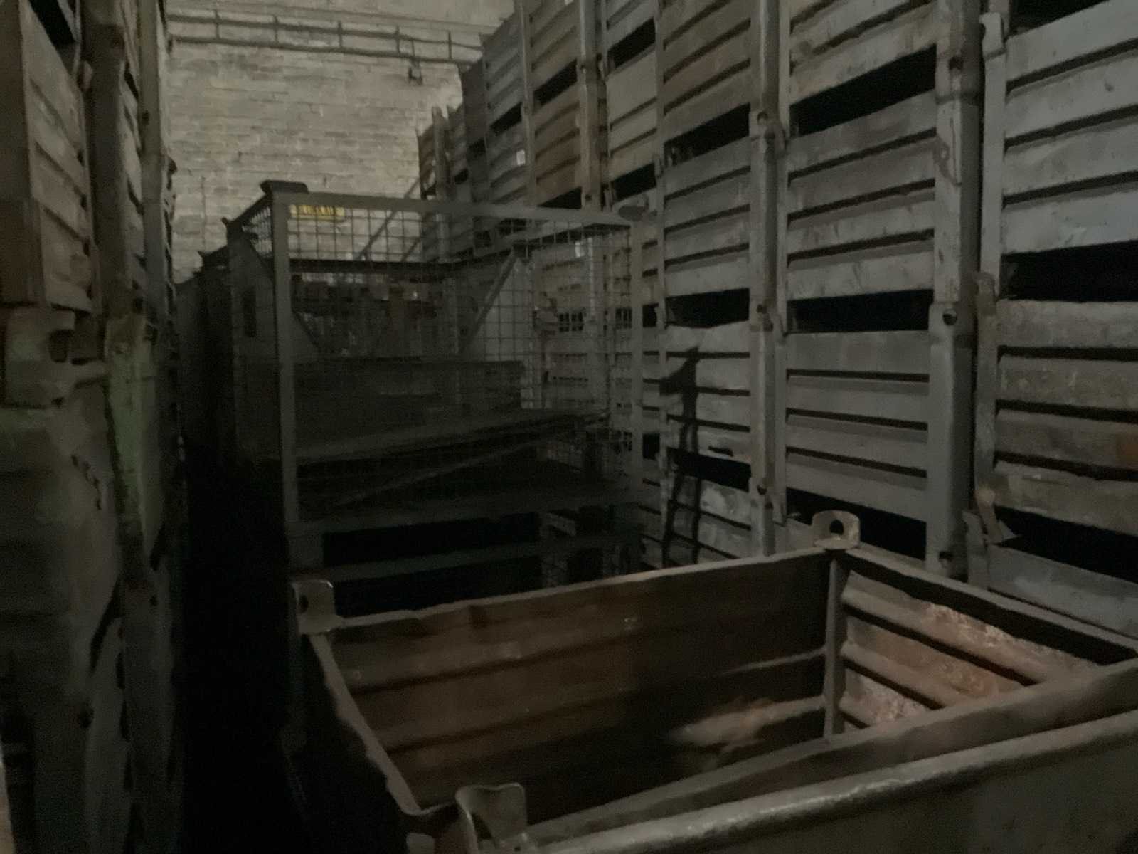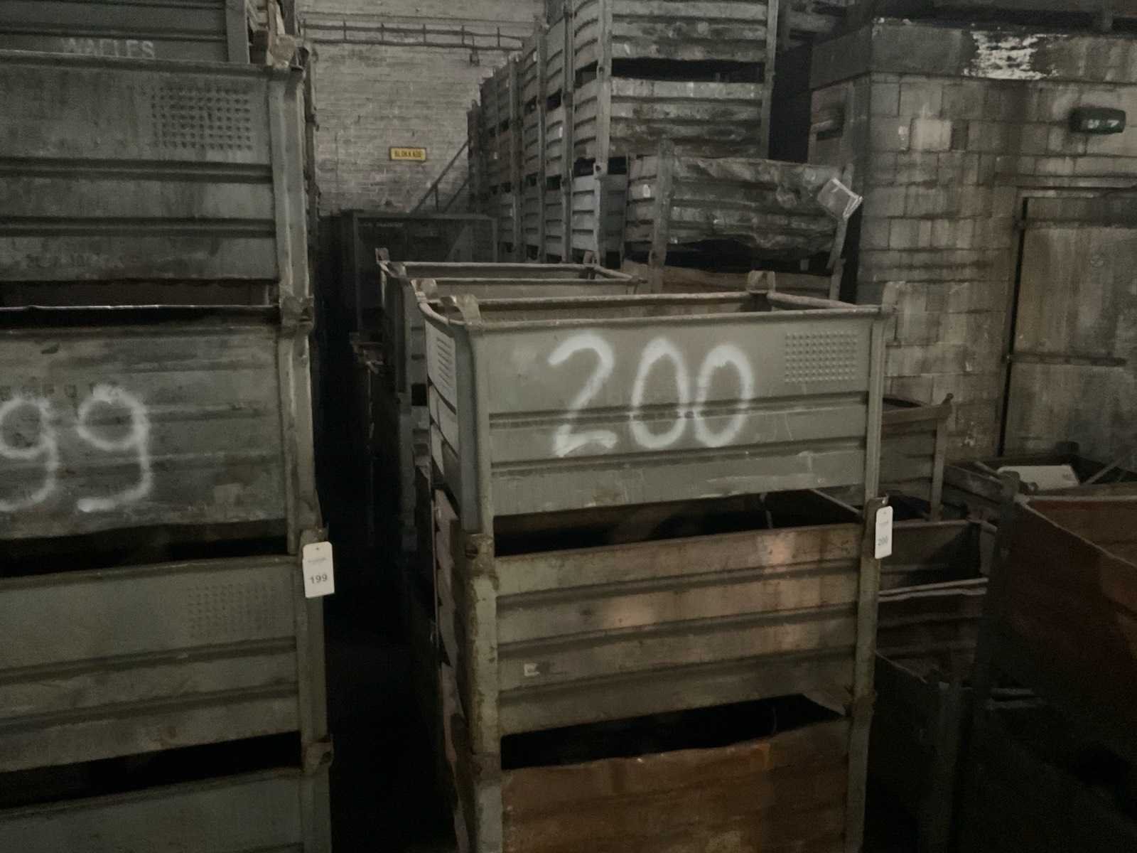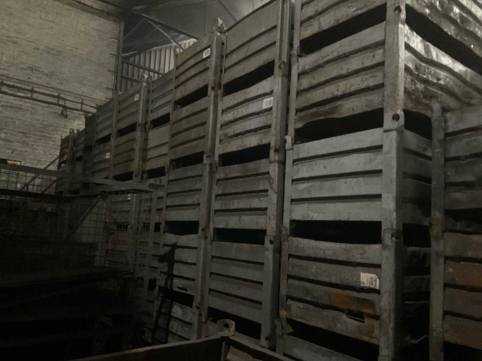 2 rijen stapels met materiaal bakken en gitterboxen, stapelbaar, diverse afmetingen en types. Nee Type: Metalen