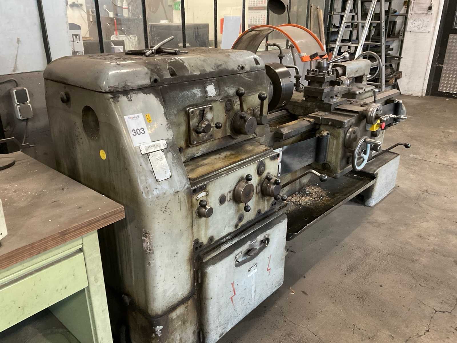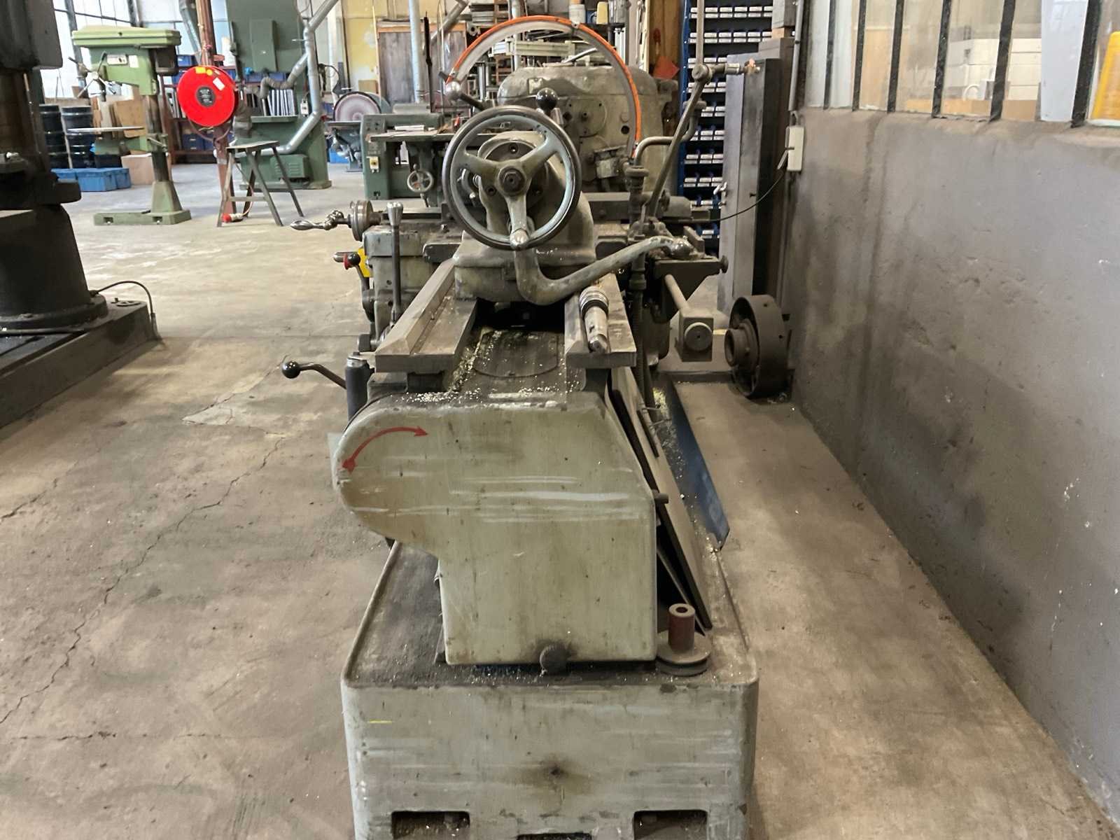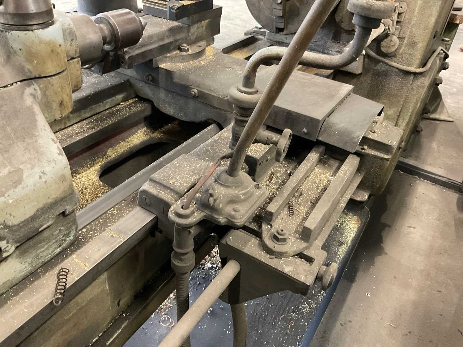 Inclusief extra klem. Nee Merk: Arad Type: SN400-1000 Bouwjaar: 1967 Draailengte: 1000mm Draai: 400mm Holle spil Ø: 48mm Snelheid van n =: 12rpm Snelheid tot n =: 1500rpm Aansluiting: 400V Machinegewicht: 2200kg Afmeting l: 2600mm Afmeting b: 800mm Afmeting h: 1300mm