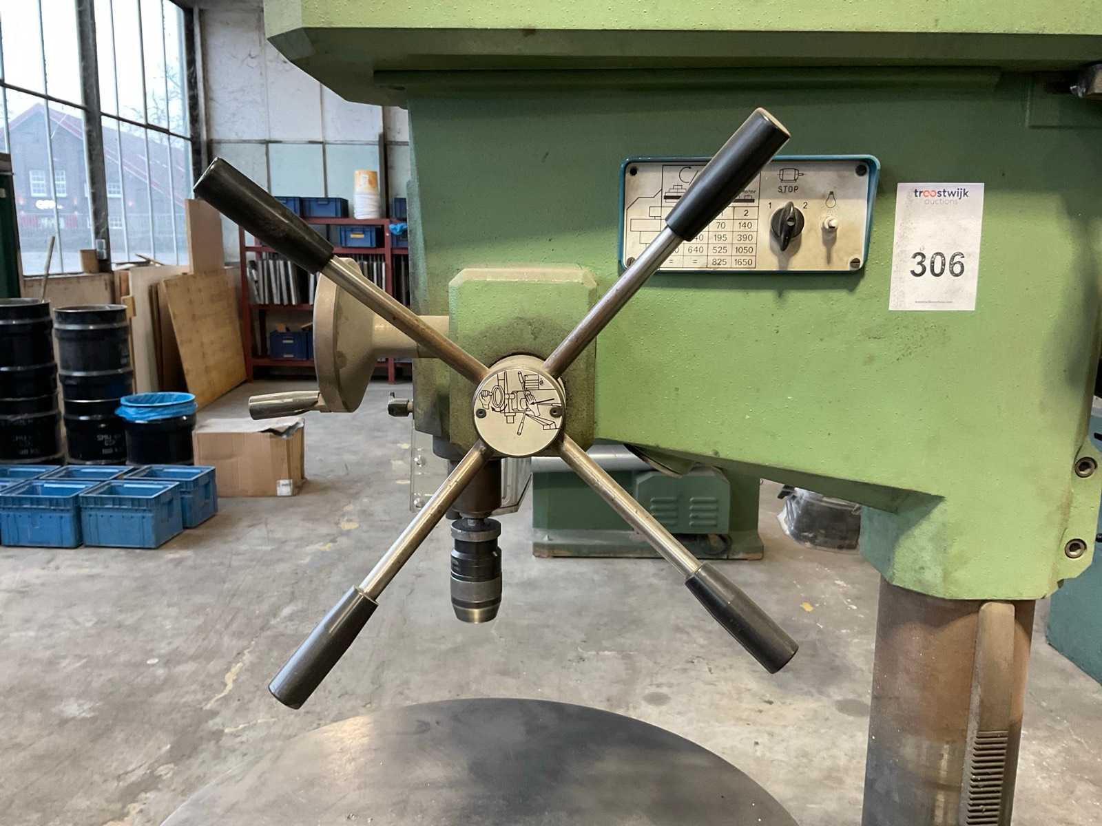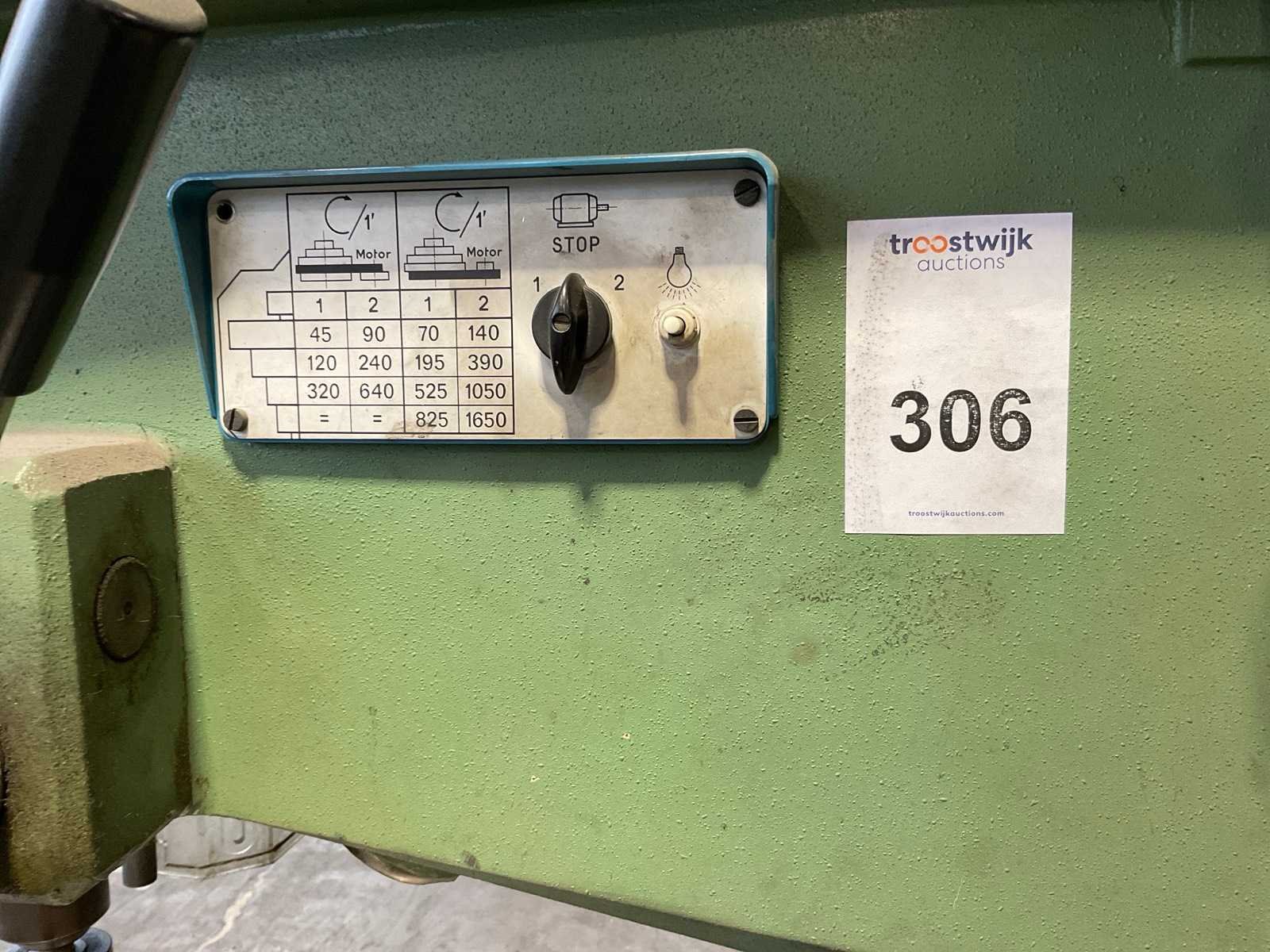Nee Merk: Bimak Type: 40mo Aantal snelheden: 4 Spindelsnelheid van n =: 45rpm Spindelsnelheid tot n =: 1650rpm Boordiepte: 150mm Uitlading: 400mm Tafel afmeting l: 695mm Tafel afmeting b: 695mm Aansluiting: 400V Handboek aanwezig: true Afmeting l: 1000mm Afmeting b: 700mm Afmeting h: 1900mm