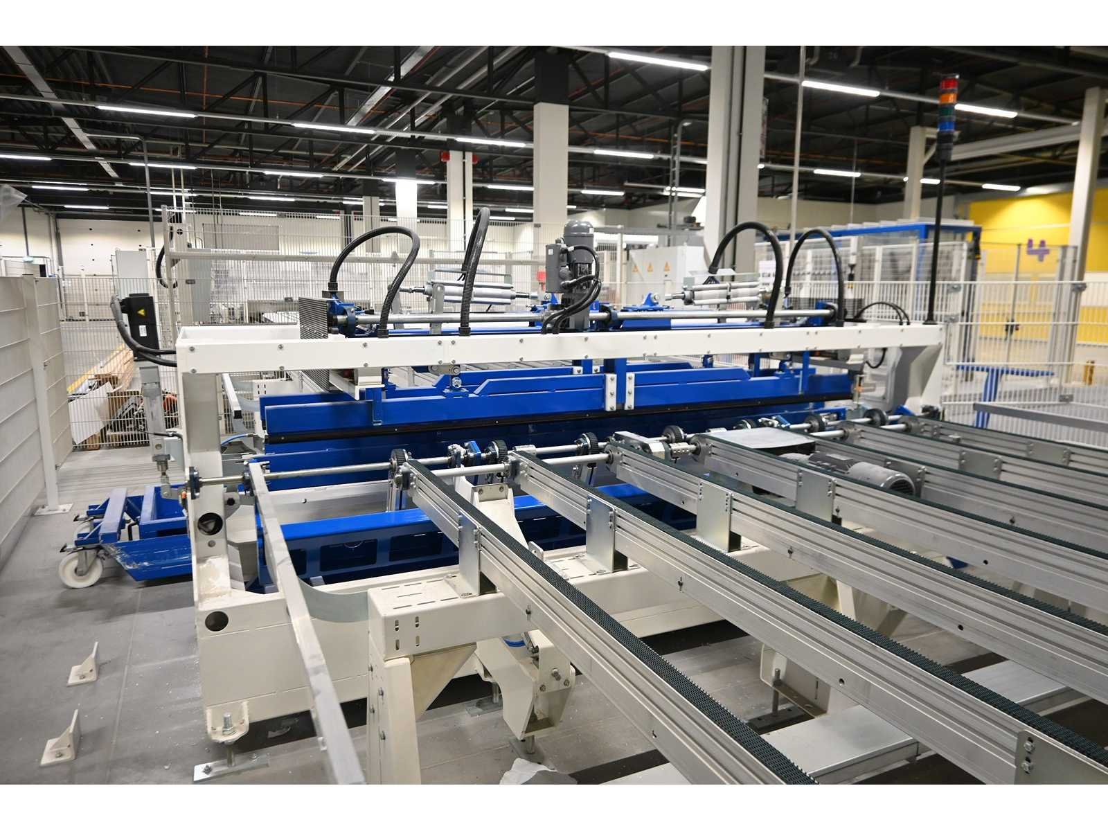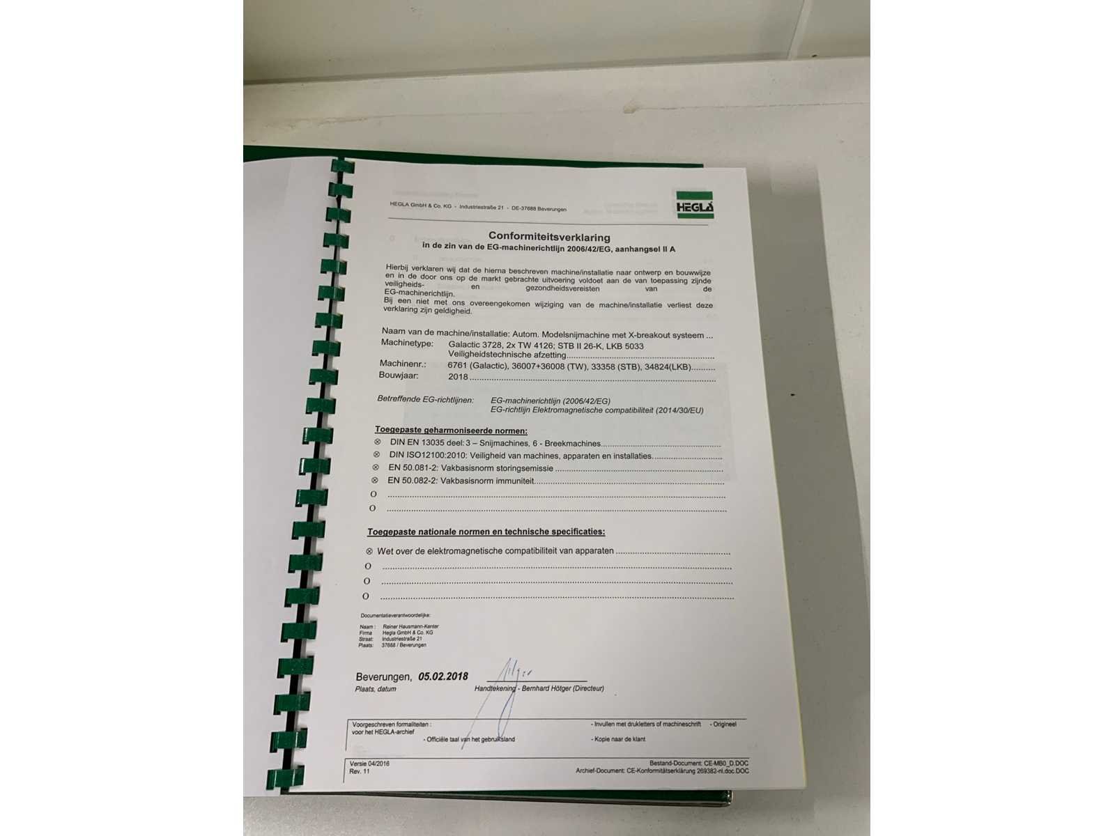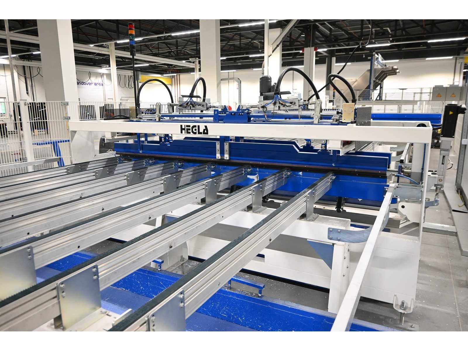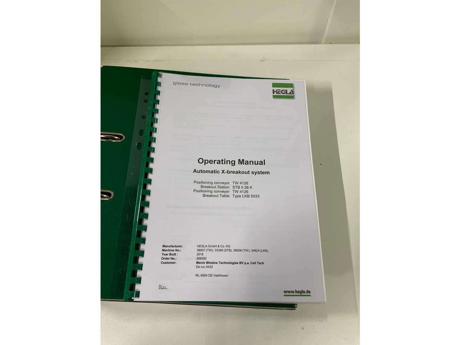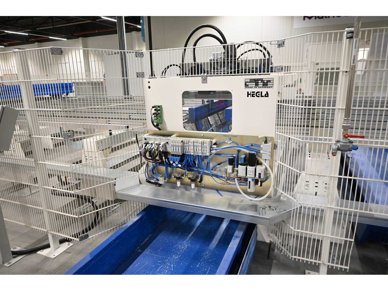 Voorzien van 2 x Hegla transport en positioneerband type: TW-4126 (600KG per stuk). Machine investering: €200.000,-. Exclusief BTW. Dit kavel is onderdeel van combinatie-kavel 120 (kavel 101-119). No Merk: Hegla Type: STB 2-26-K Traverenbrechstation Bouwjaar: 2018 Serienummer: 33358 Snijbereik: 3200mm Aansluiting: 400V Eigen gewicht: 1150kg Totale afmeting L: 5650mm Totale afmeting Breedte: 450mm Totale afmeting Hoogte: 1600mm