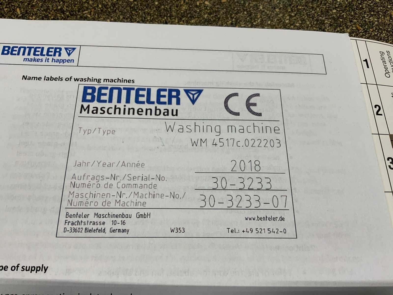 Werkbreedte ca. 180 cm. Type: WM 4516 C-011123. Voorzien van Siemens Simatic HMI touch screen besturingssysteem. Machine investering: €113.000, excl. BTW. Dit kavel is onderdeel van combinatie-kavel 120 (kavel 101-119). No Merk: Benteler Type: WM 4517C- 050WM Bouwjaar: 2018 Serienummer: 30-3233-38 Aansluiting: 400V Totale afmeting L: 2500mm Totale afmeting Breedte: 2500mm Totale afmeting Hoogte: 1250mm