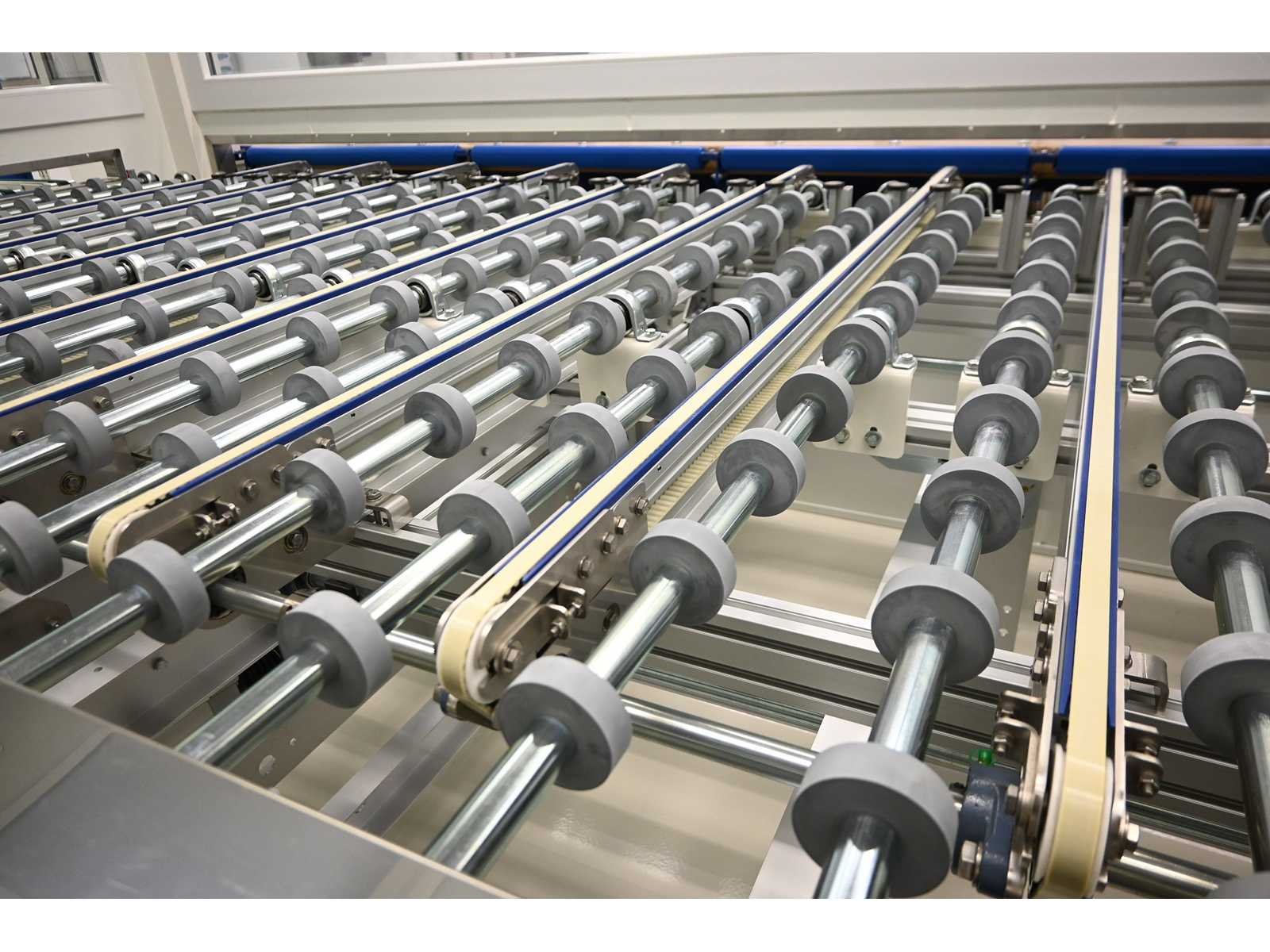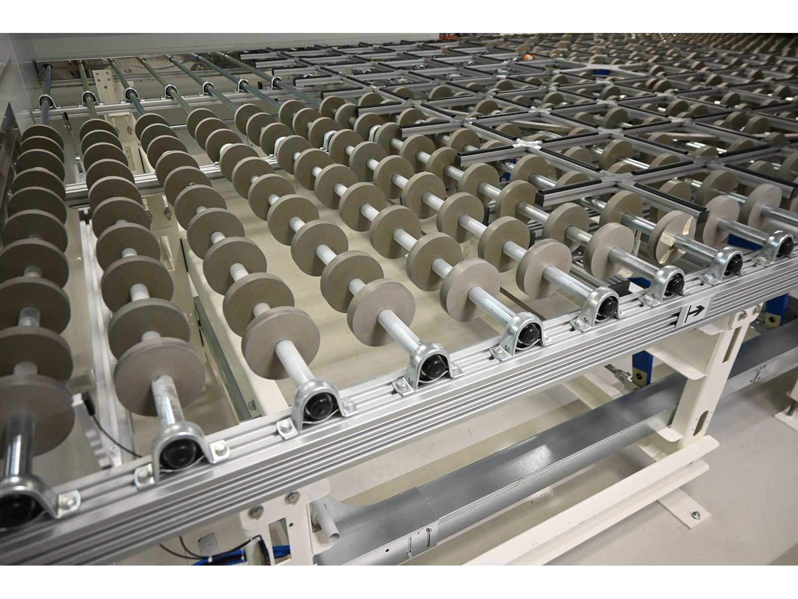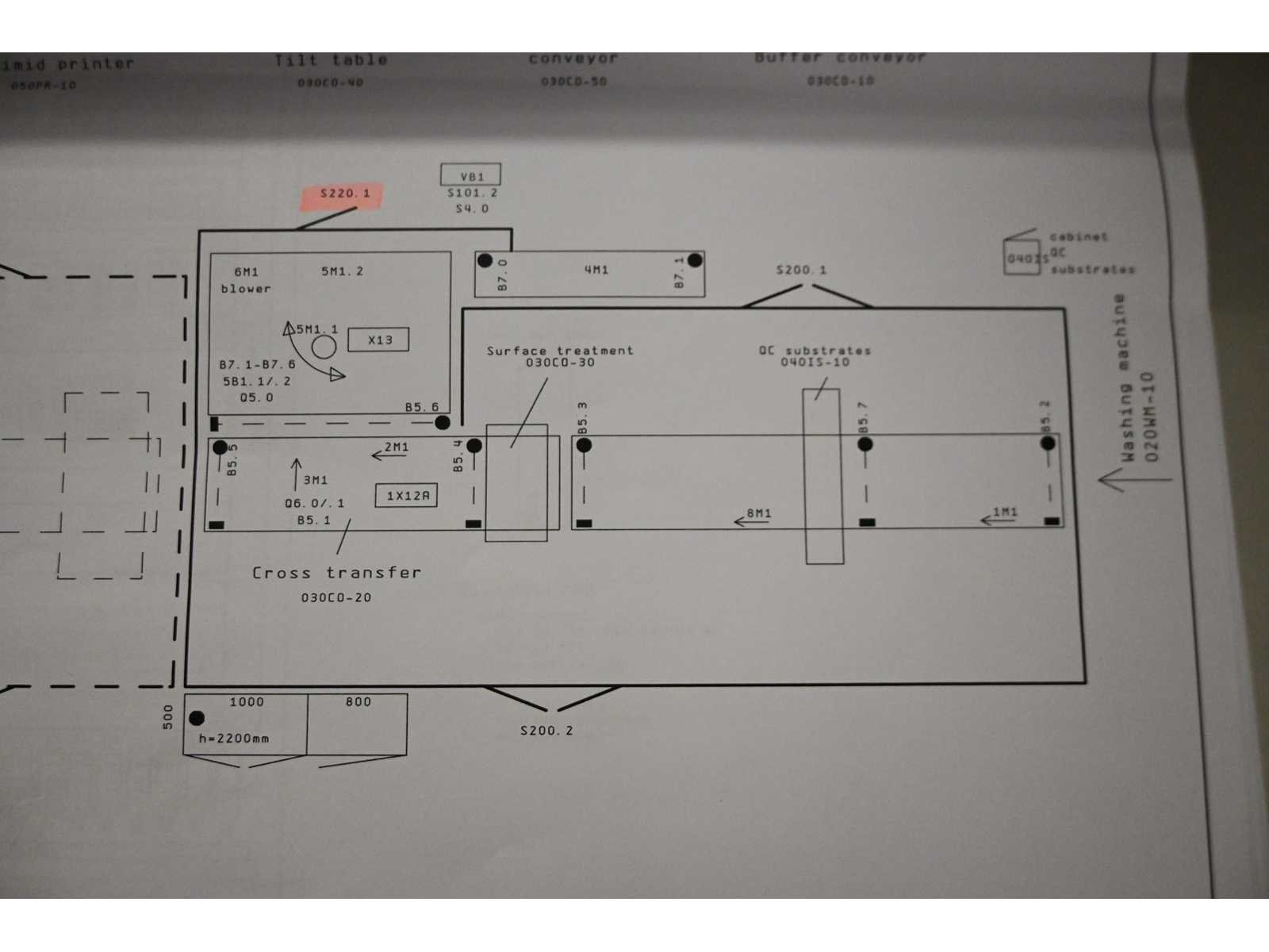Met Siemens Simatic HMI besturingsysteem. Bestaande onder andere uit 1 x in hoogte verstelbare transport tafel die maakt van een verticaal transport proces een horizontaal transportproces. Of van een horizontaal transport proces een verticaal transport proces. Afmeting ca. L400 x B3950 x H1000 mm. Tevens 2 x Benteler Unloading conveyor in hoogte verstelbare transporttafel (afmeting ca. L400 x B210 x H100cm en L550 x B210 x H100cm), 1 x Benteler Cross belt Conveyor in hoogte verstelbare transporttafel (Afmeting ca. L370 x B225 x H100 cm), Benteler kantelbare kogelrol in hoogte verstelbare transport tafel (Afmeting ca. L378 x B255 x H100 cm) en 1 x Benteler verticale glas zij-uitgifte (Afmeting ca. L425 x B75 x H227cm. Machine-investering: €220.000 excl. BTW. Dit kavel is onderdeel van combinatie-kavel 221 (kavel 201-220). Nee Merk: Benteler Type: (Turn over Device) Conveyor unloading / Crossbelt Conveyor Bouwjaar: 2017 Aansluiting: 400V