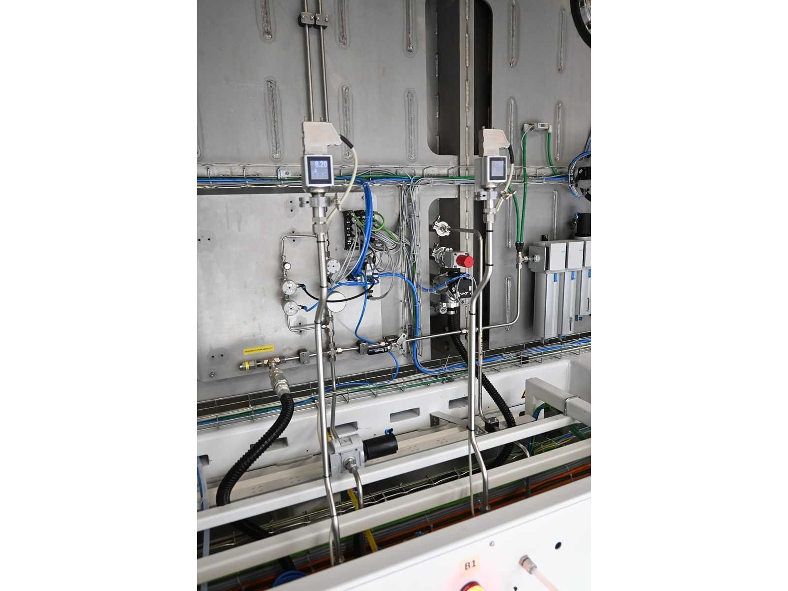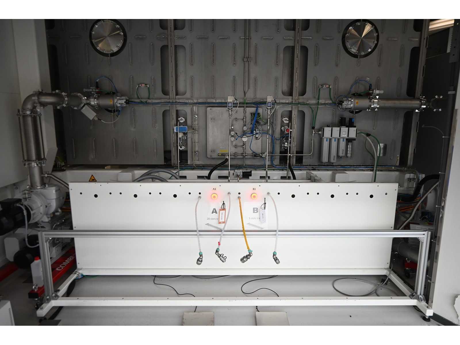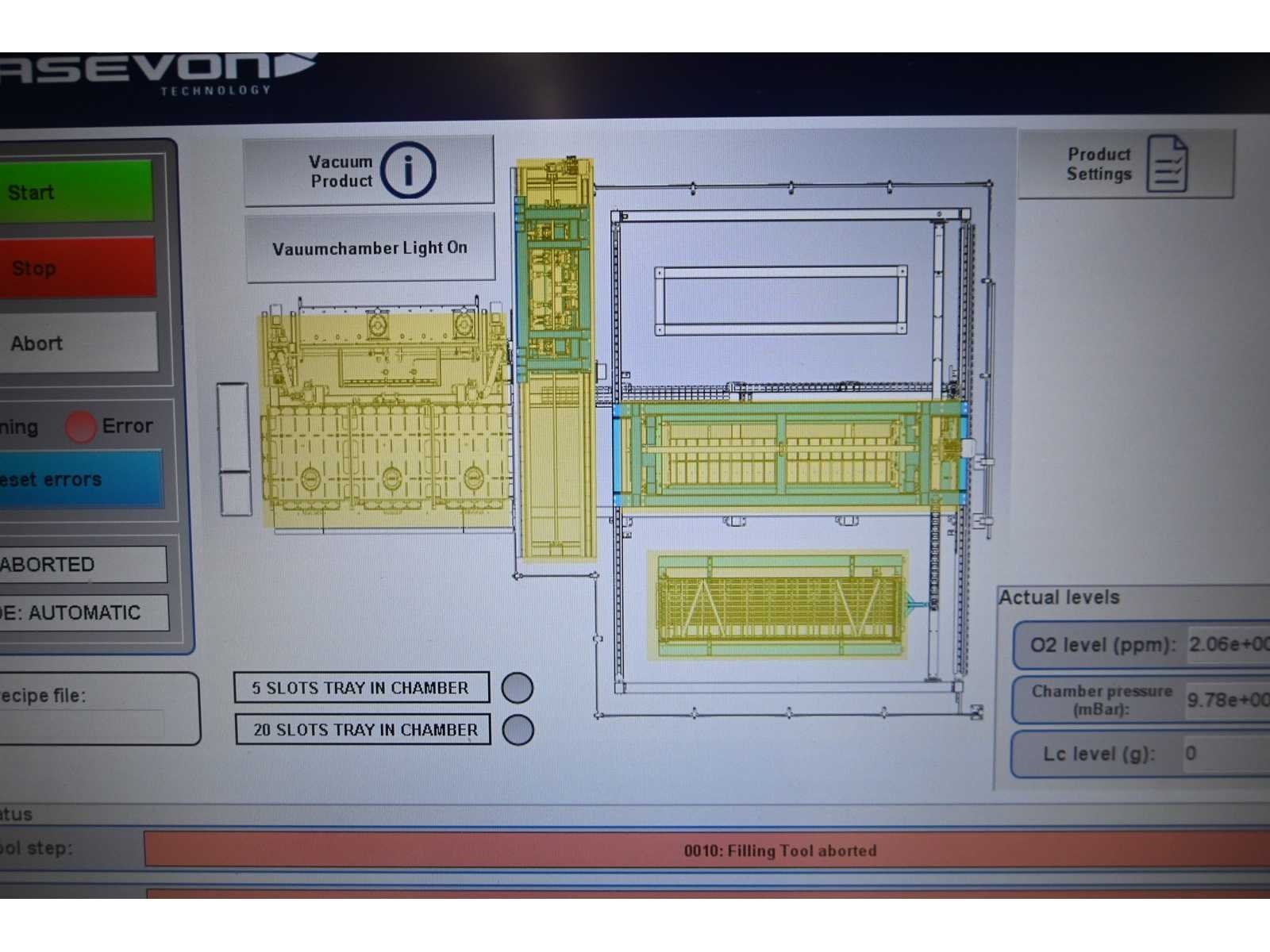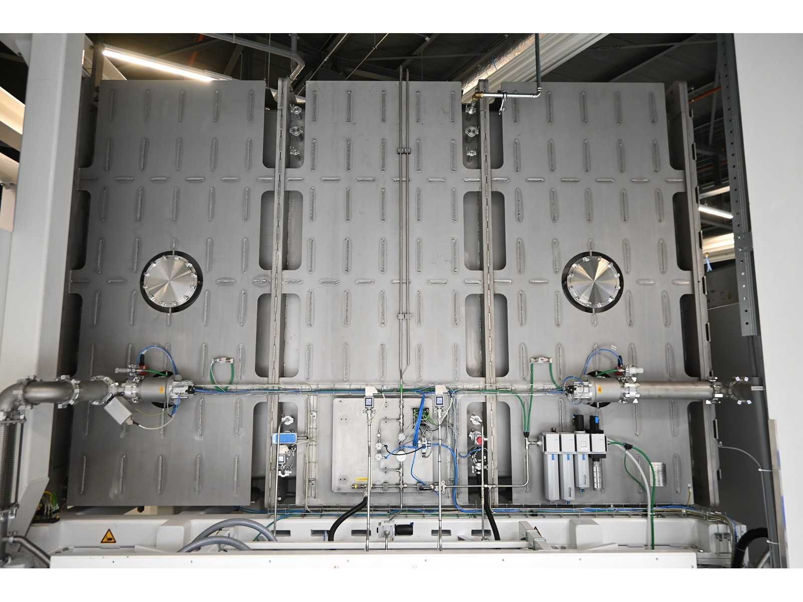 Filling Cell Tool met LC- vloeistof. Bestaande uit een Transfer-systeem, Manipulator, Gate Valve, 2 x Pfeiffer WD 400 Combi-Line Vacuüm pomp (bouwjaar: 2020) met (spoel) Canister, capaciteit: 2 canisters, Vacuüm-kamer en Elektriciteitskast met HMI touchscreen operator bedieningsscherm. 1.5 bar overdruk capaciteit, Volume: 11.800 Liter. Inclusief 2 drukmeters, vacuümkleppen, etc. Inclusief Beckhoff CP 3919-0010 operator touch screen scherm. Gewicht ca. 37.000KG. Machine-investering €610.000,- excl. BTW. Nee Merk: Masévon Bouwjaar: 2017 Serienummer: 1641.03.0200-1 Aansluiting: 400V Eigen gewicht: 37000kg Totale afmeting L: 7200mm Totale afmeting Breedte: 12500mm Totale afmeting Hoogte: 4500mm