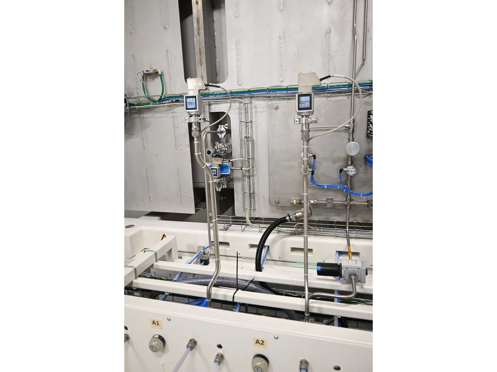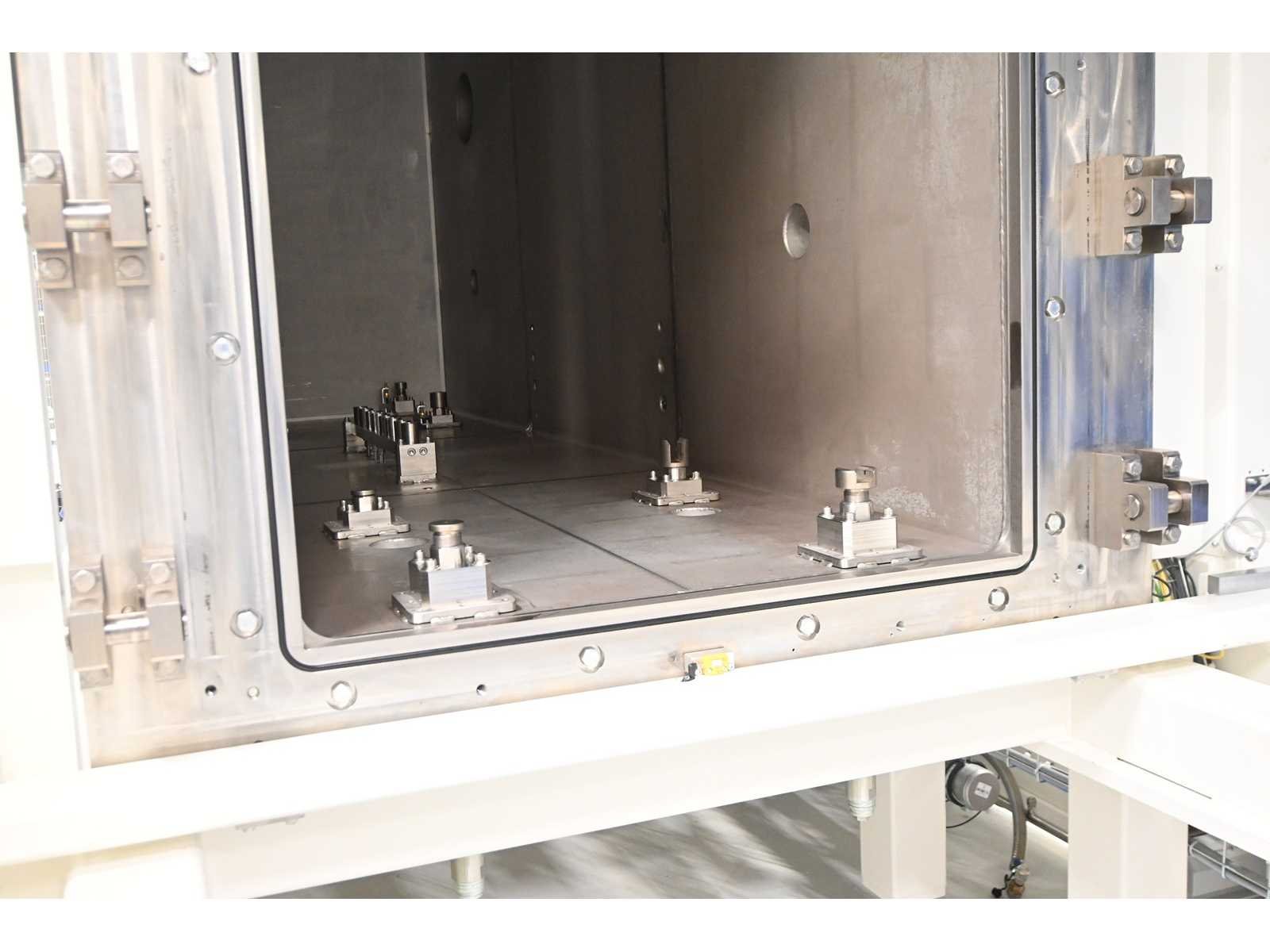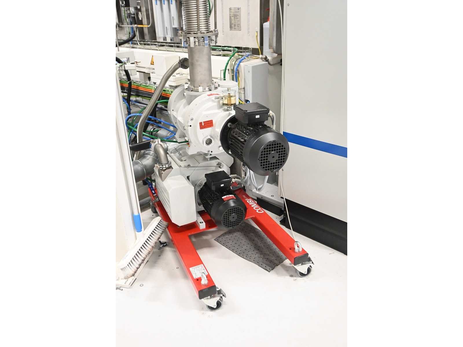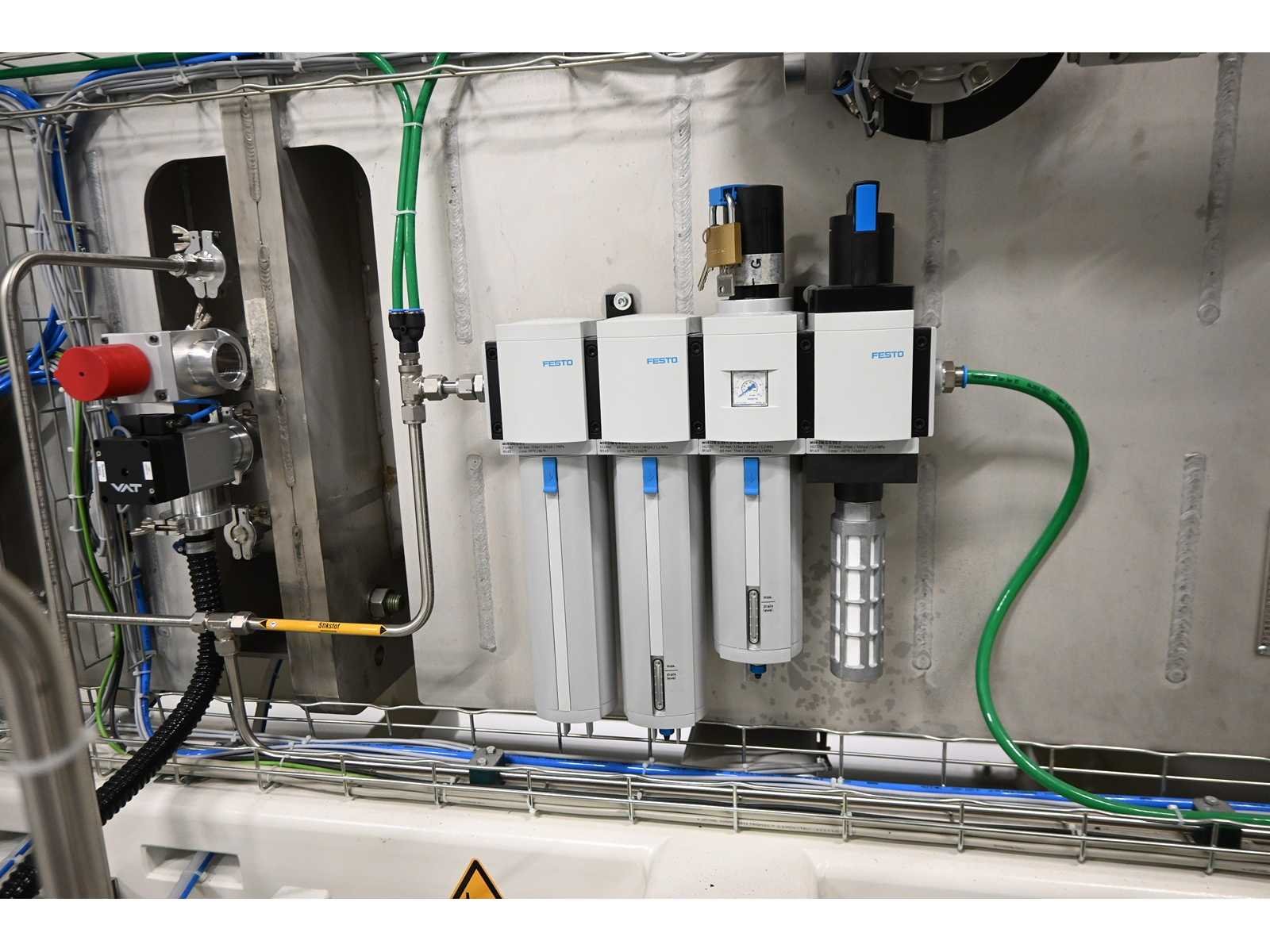 Filling Cell Tool met LC- vloeistof. Bestaande uit een Transfer-systeem, Manipulator, Gate Valve, 2 x Pfeiffer WD 400 Combi-Line Vacuüm pomp met (spoel) Canister, capaciteit: 5 canisters, Vacuüm-kamer en Elektriciteitskast met HMI touchscreen operator bedieningsscherm. 1.5 bar overdruk capaciteit. Volume: 11.800 Liter. Inclusief 5 drukmeters, vacuümkleppen, etc. Inclusief Beckhoff CP 3919-0010 operator touch screen scherm. Gewicht ca. 37.000KG. Machine-investering €1.100.000,- excl. BTW. Nee Merk: Masévon Bouwjaar: 2020 Serienummer: 1934.03.0200 Aansluiting: 400V Eigen gewicht: 37000kg Totale afmeting L: 7200mm Totale afmeting Breedte: 12500mm Totale afmeting Hoogte: 4500mm