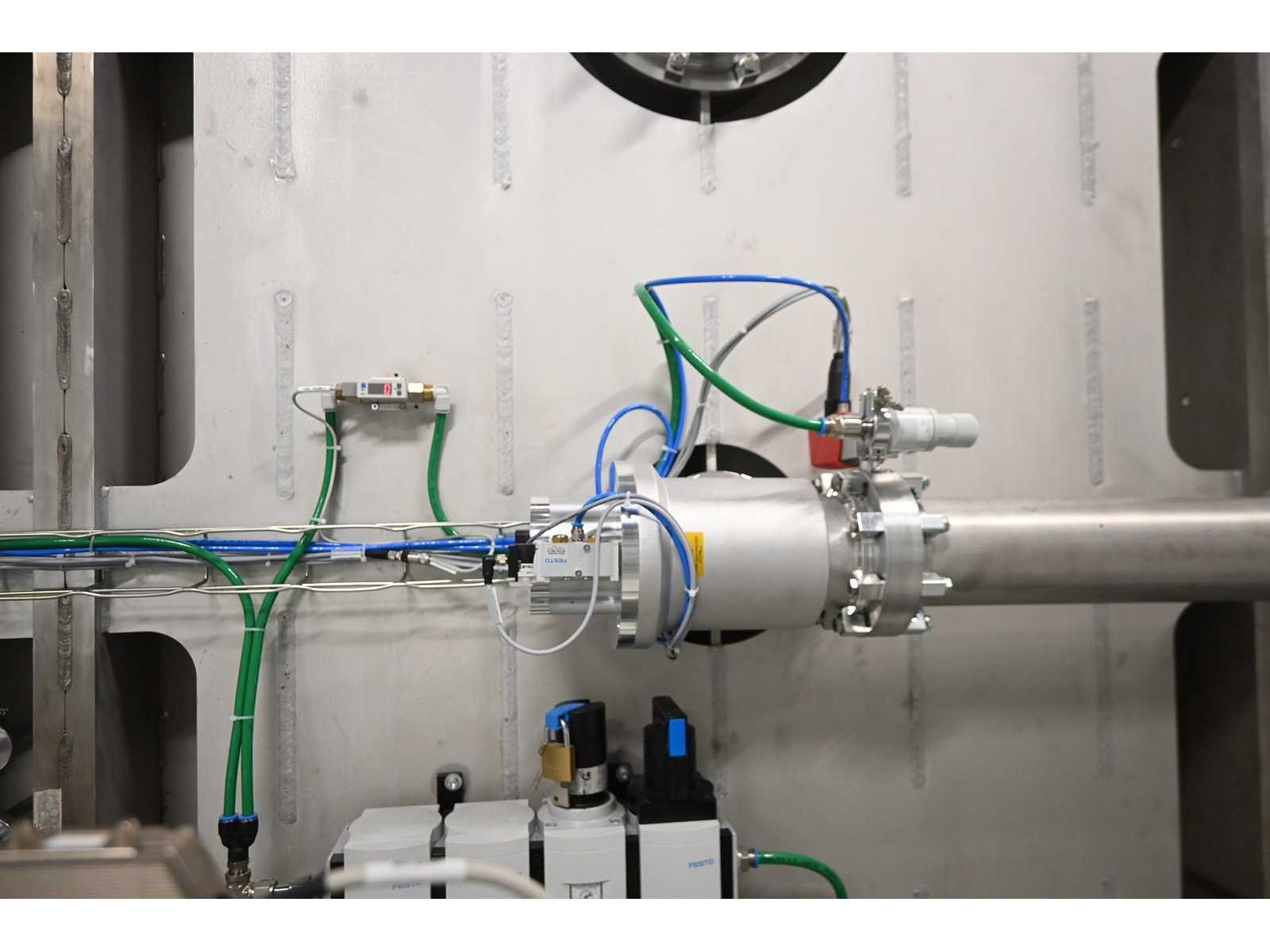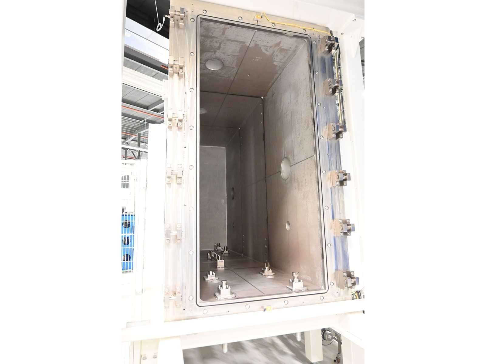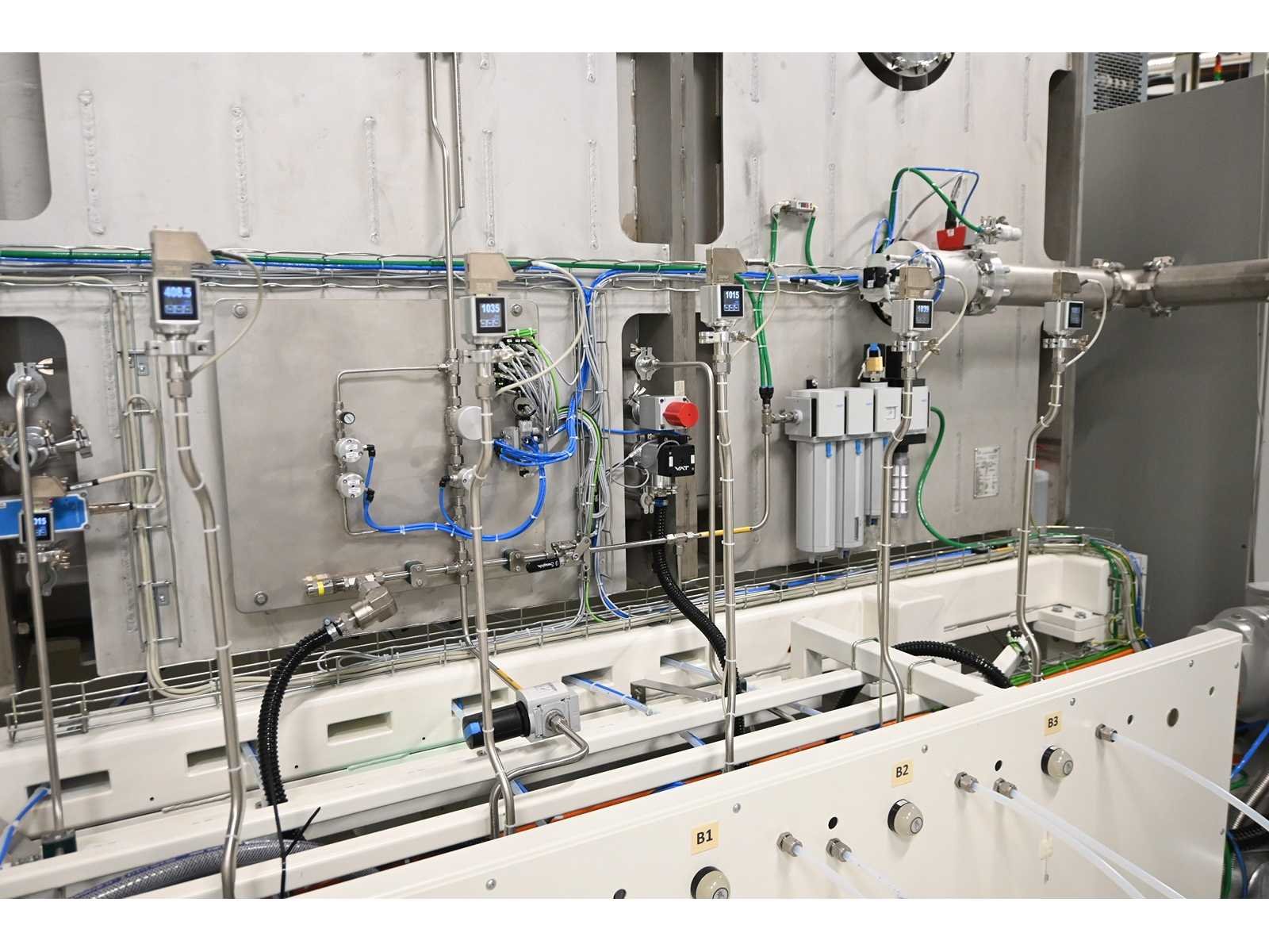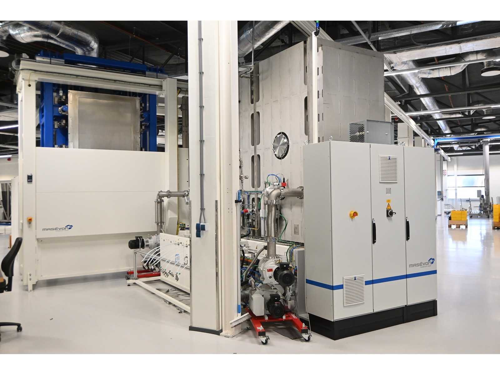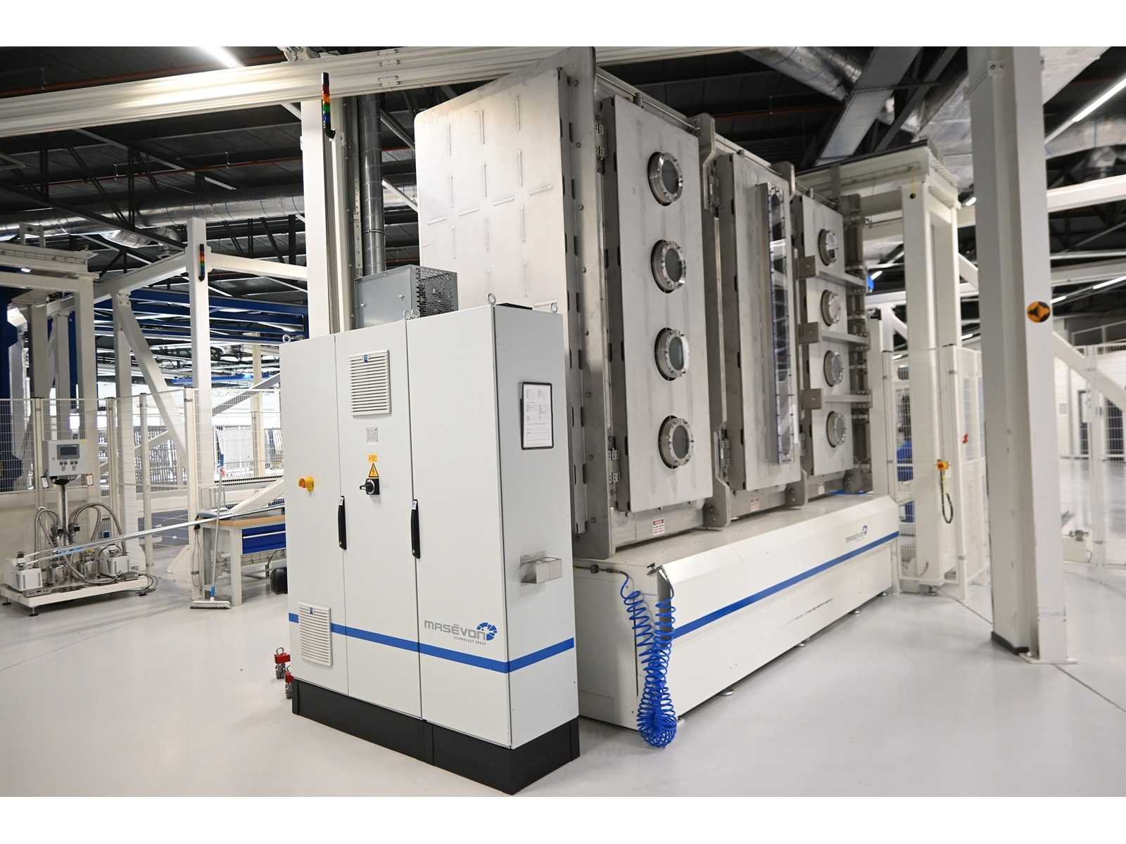 Filling Cell Tool met LC- vloeistof. Bestaande uit een Transfer-systeem, Manipulator, Gate Valve, 2 x Pfeiffer WD 400 Combi-Line Vacuüm pomp met (spoel) Canister, capaciteit: 5 canisters, Vacuüm-kamer en Elektriciteitskast met HMI touchscreen operator bedieningsscherm. 1.5 bar overdruk capaciteit. Volume: 11.800 Liter. Inclusief 5 drukmeters, vacuümkleppen, etc. Inclusief Beckhoff CP 3919-0010 operator touch screen scherm. Gewicht ca. 37.000KG. Machine-investering €1.100.000,- excl. BTW. Nee Merk: Masévon Bouwjaar: 2020 Serienummer: 1934.03.0200 Aansluiting: 400V Eigen gewicht: 37000kg Totale afmeting L: 7200mm Totale afmeting Breedte: 12500mm Totale afmeting Hoogte: 4500mm