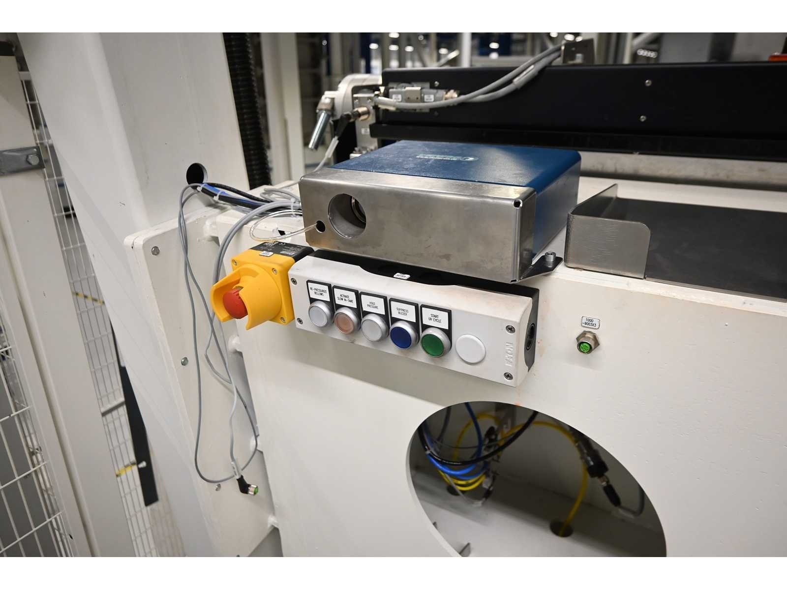 Voorzien van Beckhoff- touch screen besturing en Sick laser machine beveiliging. Voorzien van 4Pico A-UV-Curing system, type : U-Source 3700 mm. Pers-werk breedte afmeting ca. L380 x H200 cm. Machine-investering €180.000,- Nee Merk: Masévon / 4Pico Bouwjaar: 2017 Serienummer: 1641.05-1 Aansluiting: 400V Eigen gewicht: 6000kg Totale afmeting L: 6200mm Totale afmeting Breedte: 2250mm Totale afmeting Hoogte: 4250mm