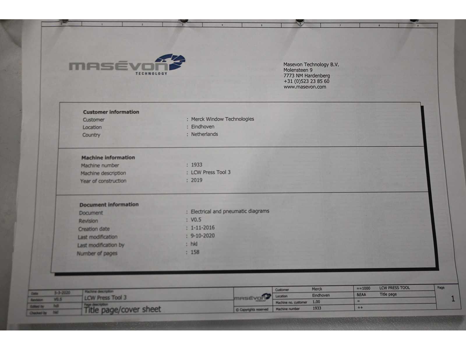 Voorzien van Beckhoff- touch screen besturing en Sick laser machine beveiliging. Voorzien van 4Pico A-UV-Curing system, type : U-Source 3700 mm. Pers-werk breedte afmeting ca. L380 x H200 cm. Machine-investering €180.000,- Nee Merk: Masévon / 4Pico Bouwjaar: 2020 Serienummer: 1933.05 Aansluiting: 400V Eigen gewicht: 6000kg Totale afmeting L: 6200mm Totale afmeting Breedte: 2250mm Totale afmeting Hoogte: 4250mm