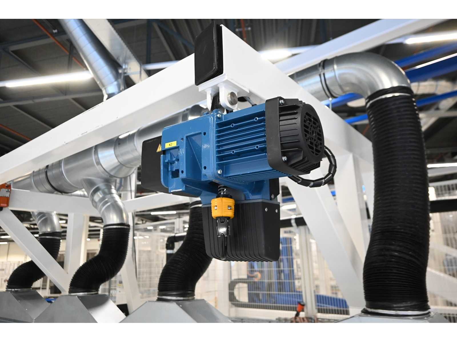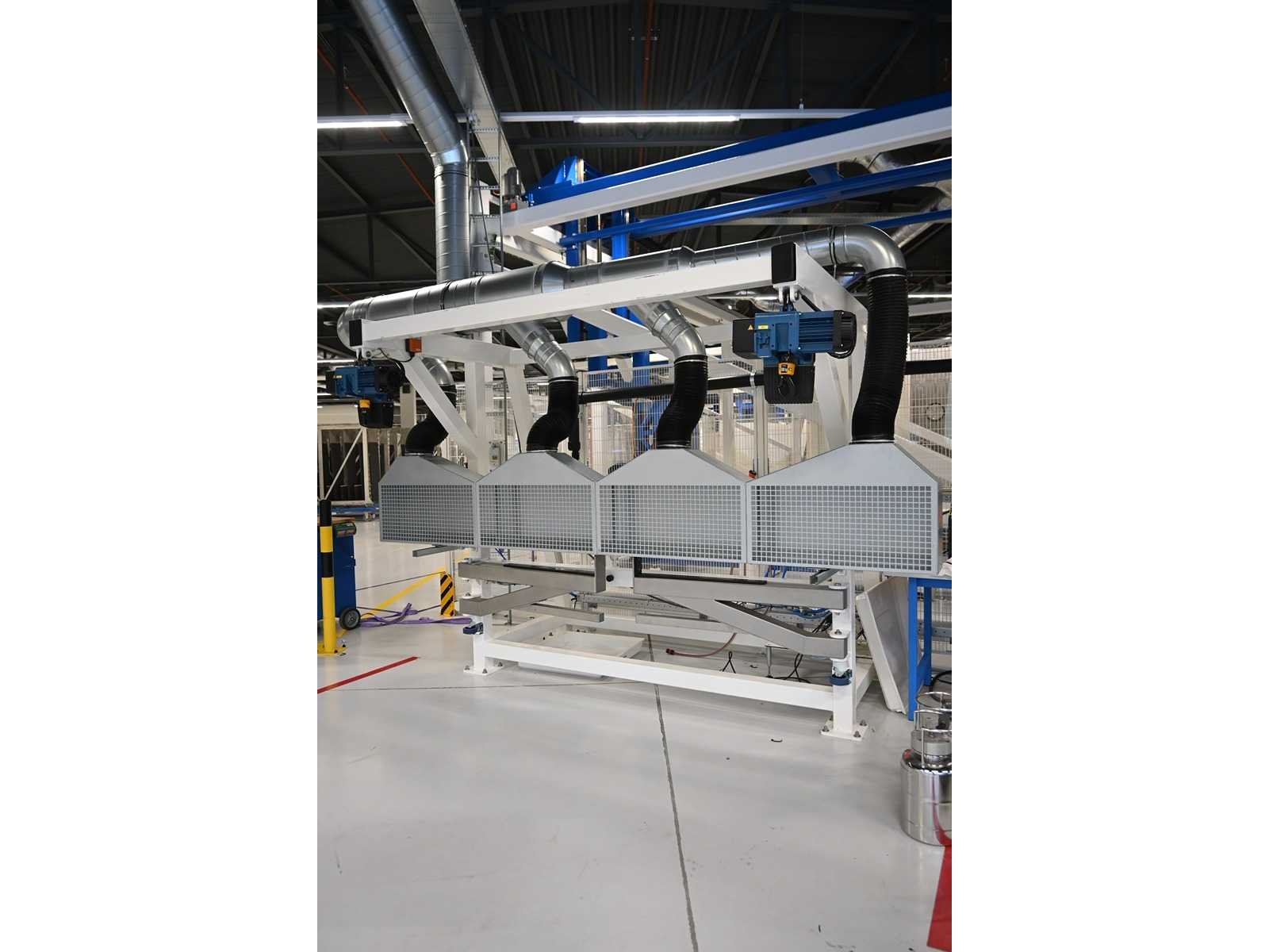 2019 demag / masévon - 4-delige afzuiginstallatie met hijsframe voorzien van 2 x demag dc com 5-500 kg kettingtakels