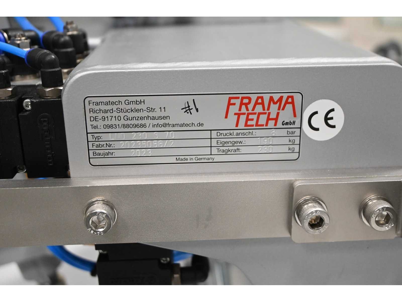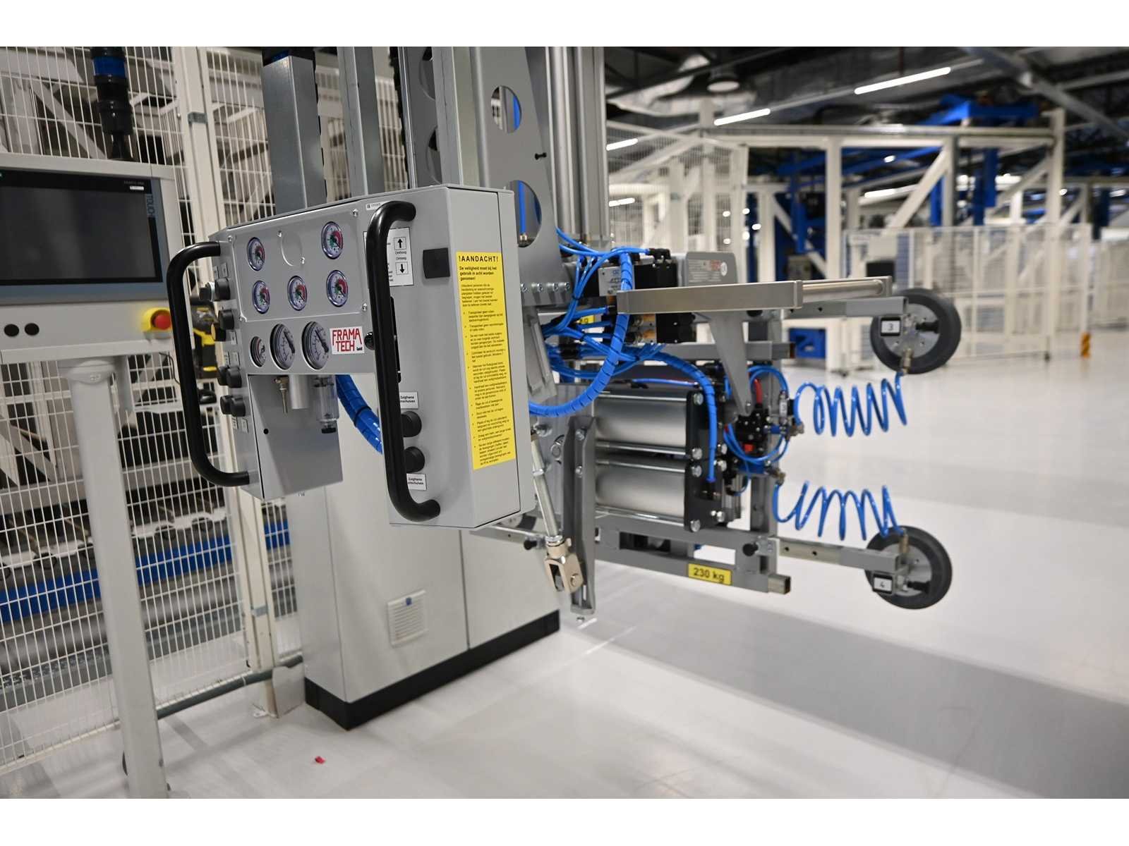 Overspanning ca. 680 cm. Aangedreven. inclusief Framatech pneumatische vacuümheffer, type: LND 230 S70, bouwjaar 2023. Voorzien van 6 zuignappen. Investering: €35.000 excl. BTW. Nee Merk: Abus / Framatech Type: ZHB / LND 230 S70 Bouwjaar: 2023 Serienummer: 150-057522 Overspanning: 6.8m Hijsvermogen: 230kg Totale afmeting L: 12000mm Totale afmeting Breedte: 7000mm Totale afmeting Hoogte: 4250mm