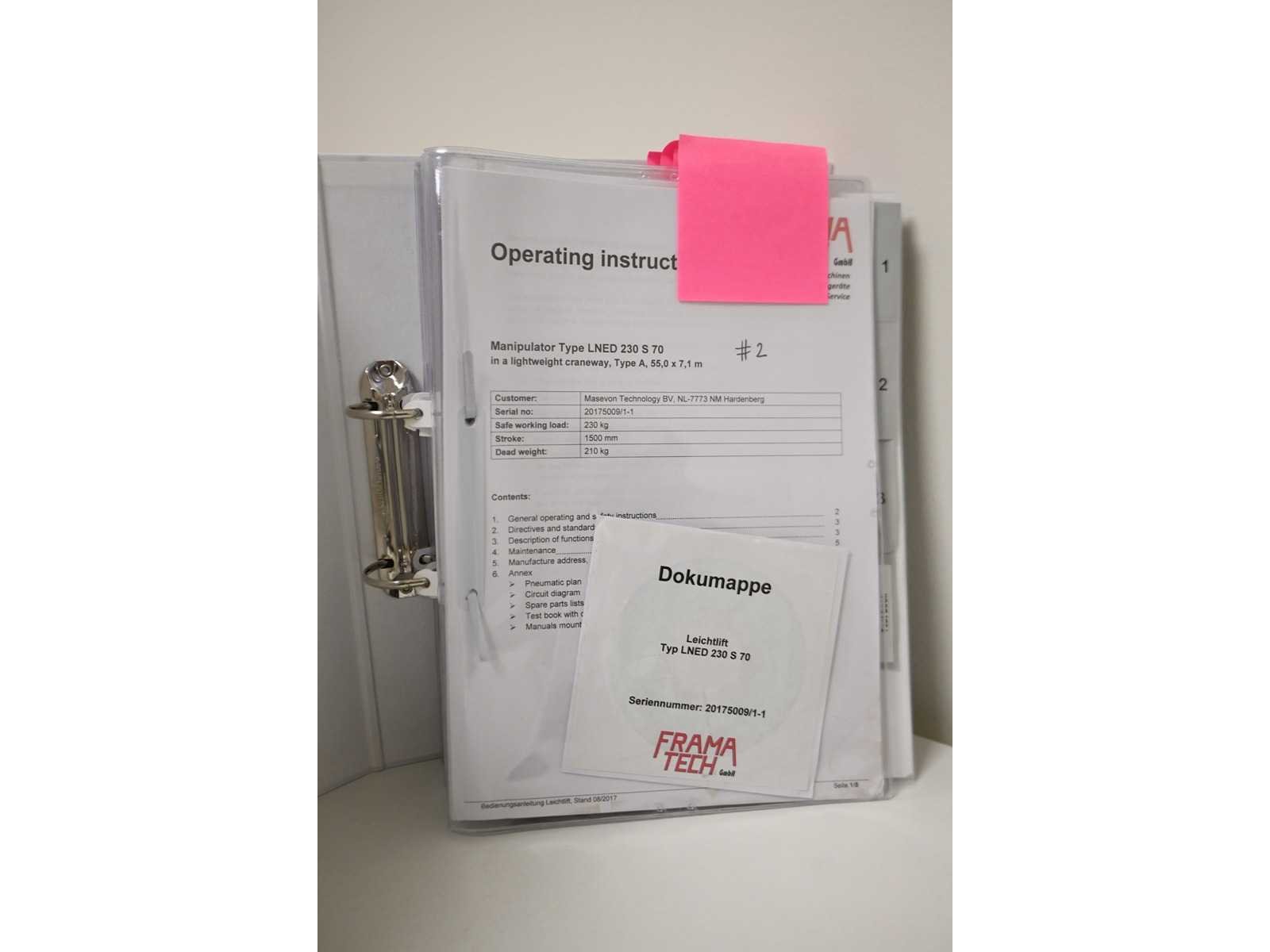 Overspanning 2 x ca. 700cm cm. Aangedreven. inclusief Framatech pneumatische vacuümheffer, type: LNED 230 S70, bouwjaren: 2023 en 2 x 2017. vacuümheffer, type: LN 230 S70, bouwjaren: 2023 en 2020. Investering: €105.000 excl. BTW. Nee Merk: Abus / Framatech Type: ZHB / LNED 230 S70 Bouwjaar: 2022 Totale afmeting L: 55000mm Totale afmeting Breedte: 17000mm Totale afmeting Hoogte: 4400mm