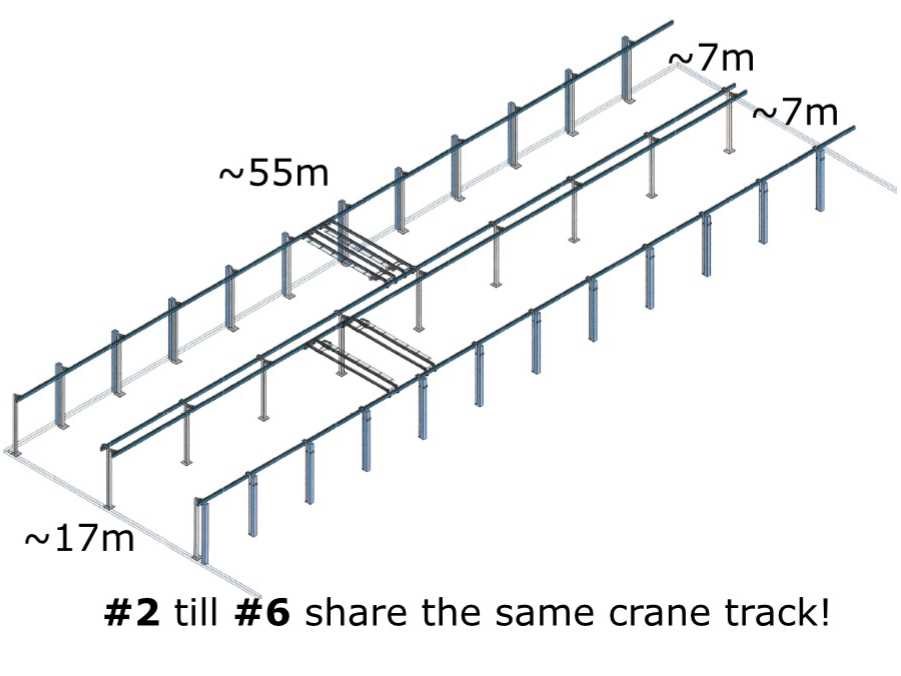2022 abus / framatech zhb / lned 230 s70 2 x 55m1 zelfdragende stalen kraanbaanconstructie met 5 vacuümheffers