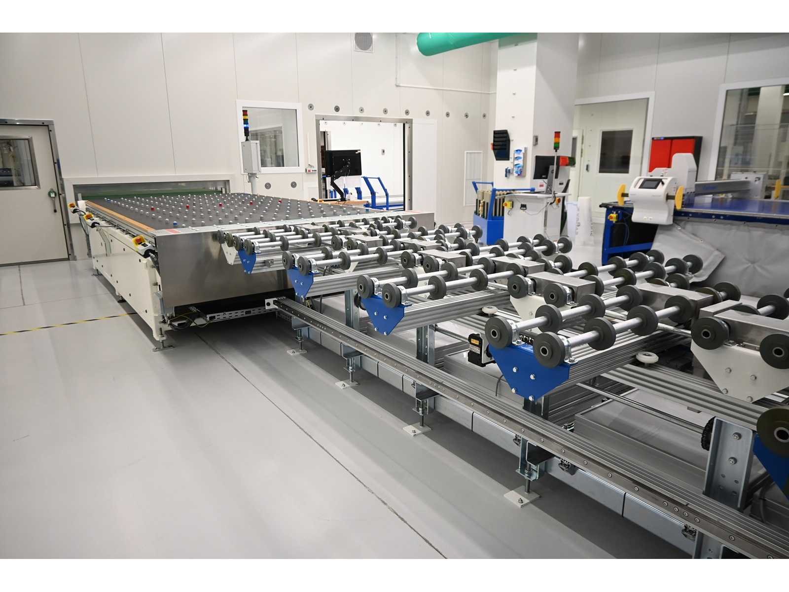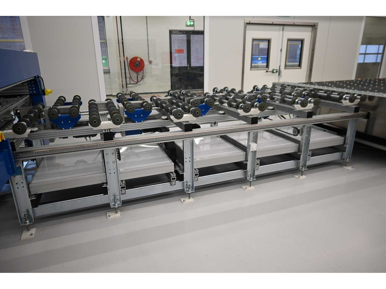 2019 benteler layup glas assembly unit met conveyor en batch conveyor ball roller table for glas loading (c)
