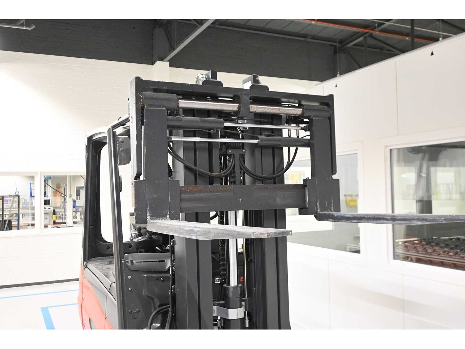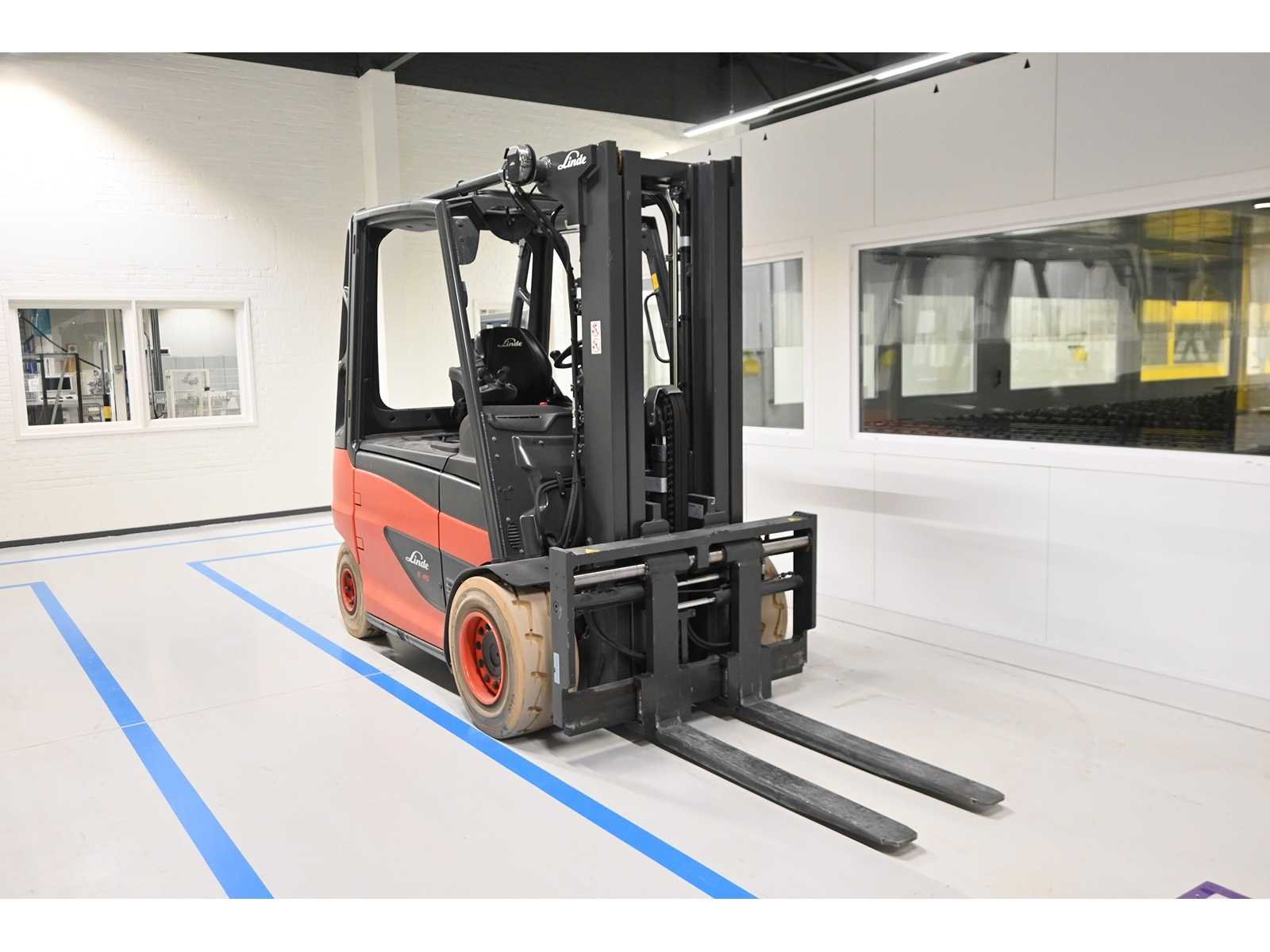 Voorzien van Hagaberg vorkenbord met vorkversteller (2023). Triplex mast, bedrijfsuren: 9 uur. Voorzien van Fronius Selectiva 4.0 oplader. Nee Merk: Linde Type: E45H-01/600 Bouwjaar: 2023 Serienummer: H2Y388M00647 Brandstof: Elektrisch Afgelezen urenstand: 9 Free-lift: true Side-shift: true Hydraulisch verstelbare lepels: true Triple mast: true Eigen gewicht: 7738kg Hefvermogen: 4500kg Lepellengte: 1500mm Max. hefhoogte: 4725mm Hefhoogte: 4725mm Vol rubber banden: true Minimale doorrijhoogte: 2350mm