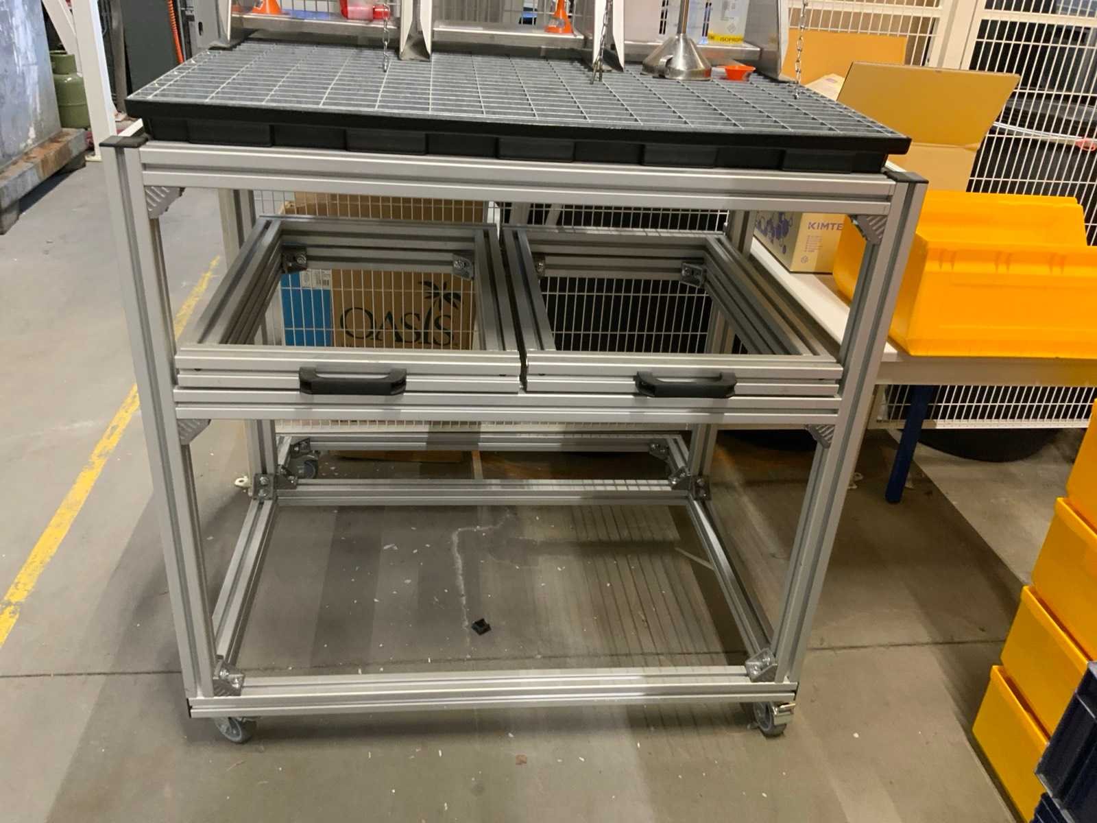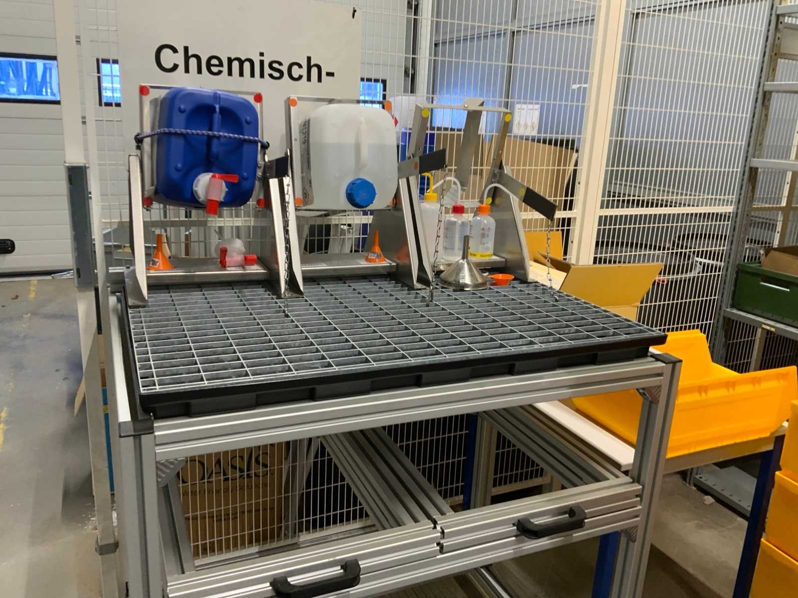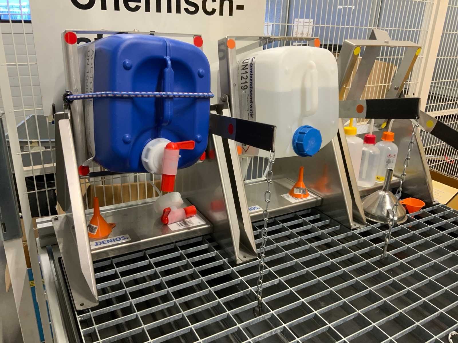 Denios rvs / aluminium afvulsysteem inclusief 3 kantelbare afvulunits