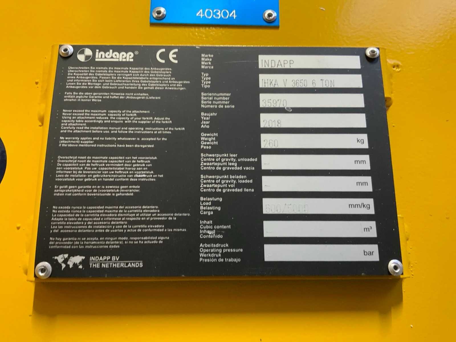 Nee Merk: Indapp Type: IHKA V 3650 6 Ton Bouwjaar: 2018 Hijsvermogen: 6000kg Eigen gewicht: 260kg Totale afmeting L: 2250mm Totale afmeting Breedte: 600mm Totale afmeting Hoogte: 900mm