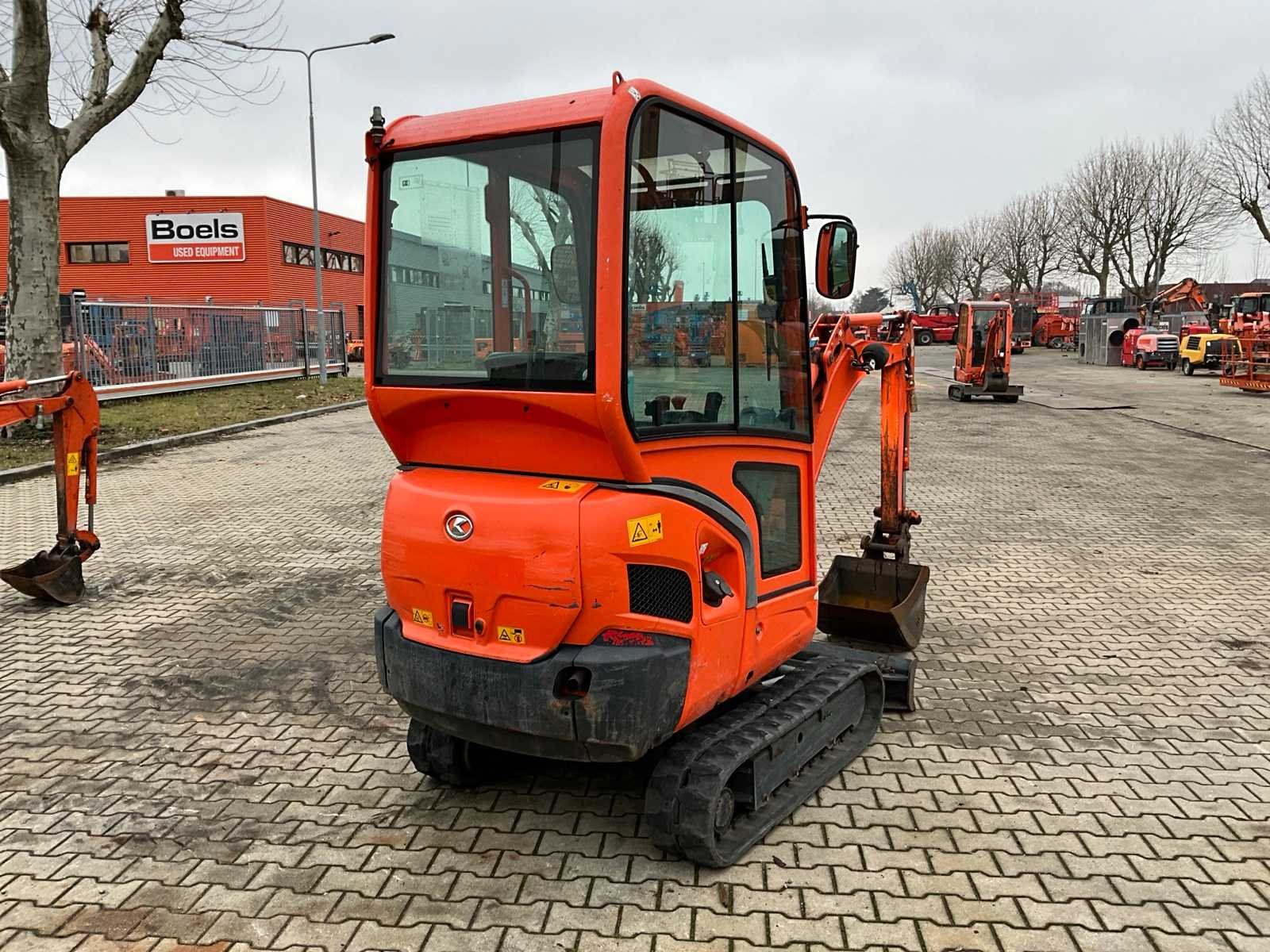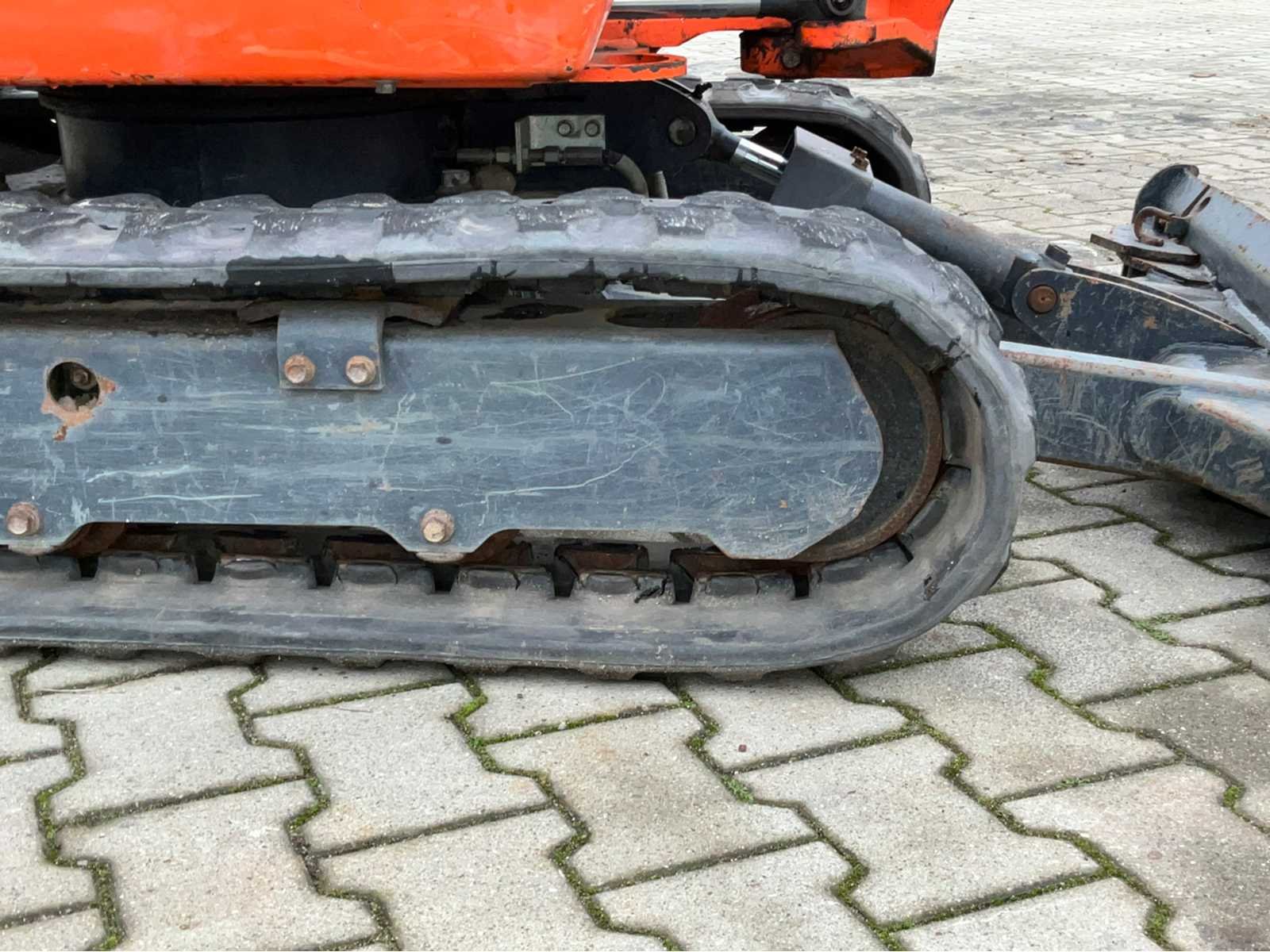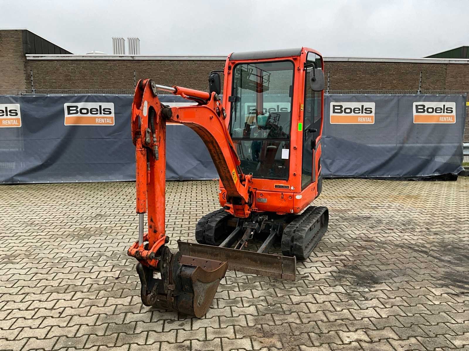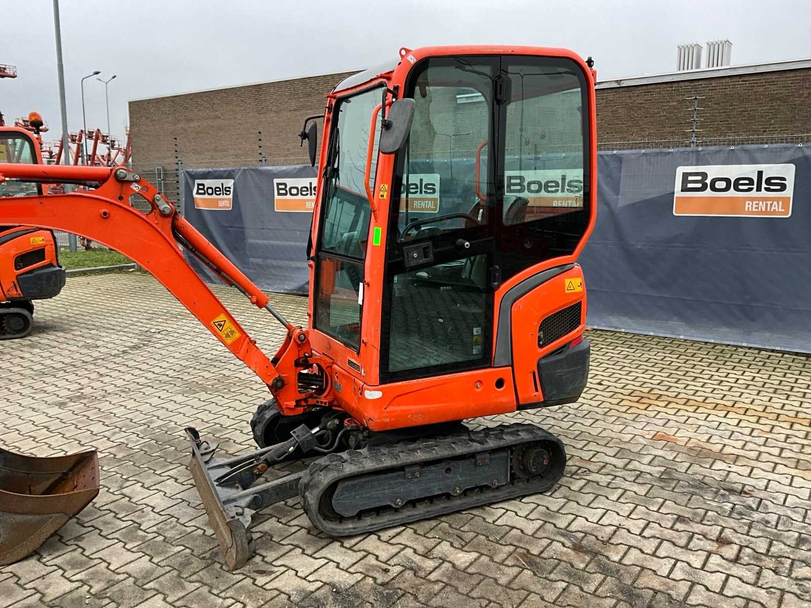 Gesloten cabine; rubber rupsbanden; rupsen hydraulisch in breedte verstelbaar 990 - 1240 mm; maximale uitstorthoogte 2250 mm; extra hydraulische functie; snelwissel; dozerblad breedte 1250 mm voorzien van verlengstuk; working condition; Nee Merk: Kubota Type: KX016-4G Bouwjaar: 2017 Serienummer: WKFRGB1200Z062233 Merk motor: Kubota Motorvermogen (kW): 9.6kW Aantal cilinders: 3 Brandstof: Diesel Max. werkbereik: 3730mm Max. graafdiepte: 2250mm Graafbak afm. l: 500mm Graafbak afm. b: 500mm Graafbak afm. h: 450mm Rups breedte: 230mm Afgelezen urenstand: 1363 Eigen gewicht: 1625kg Totale afmeting L: 3750mm Totale afmeting Breedte: 1250mm Totale afmeting Hoogte: 2350mm