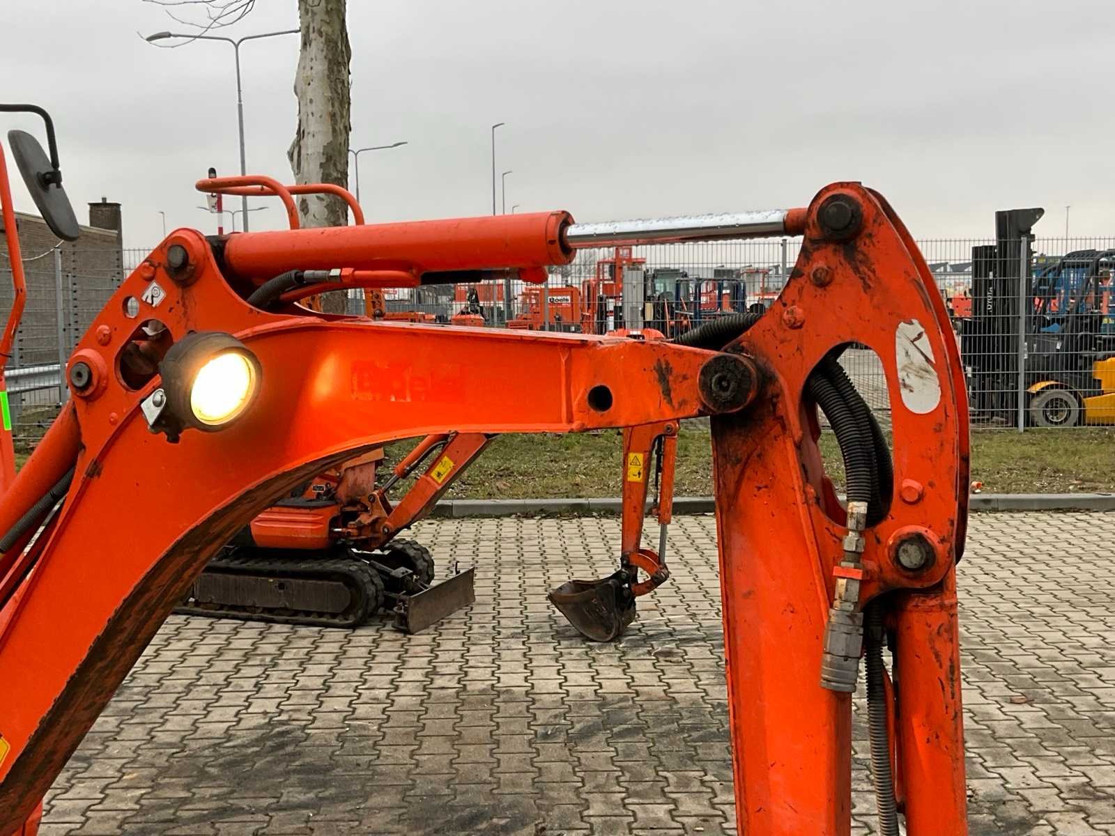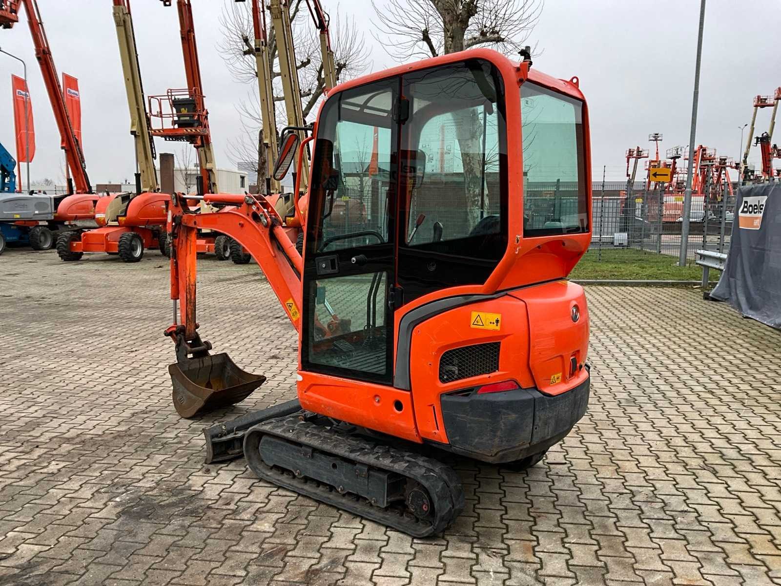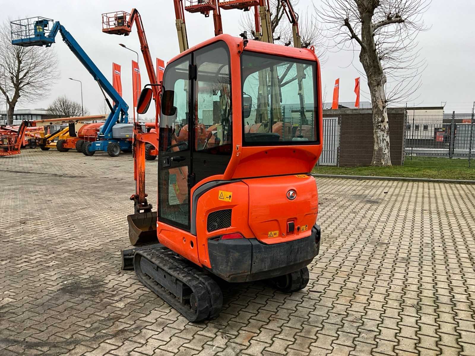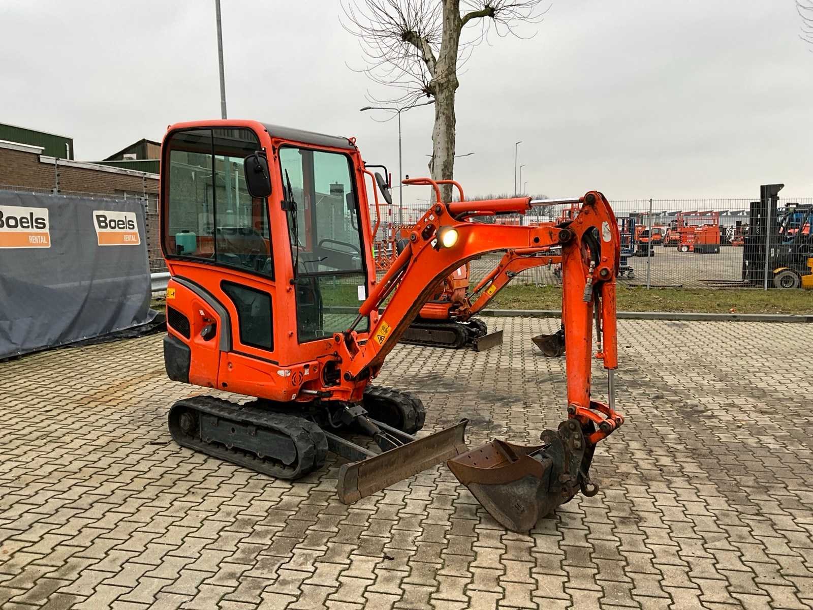 Gesloten cabine; rubber rupsbanden; rupsen hydraulisch in breedte verstelbaar 990 - 1240 mm; maximale uitstorthoogte 2250 mm; extra hydraulische functie; snelwissel; dozerblad breedte 1250 mm voorzien van verlengstuk; working condition; Nee Merk: Kubota Type: KX016-4G Bouwjaar: 2017 Serienummer: WKFRGB1200Z062233 Merk motor: Kubota Motorvermogen (kW): 9.6kW Aantal cilinders: 3 Brandstof: Diesel Max. werkbereik: 3730mm Max. graafdiepte: 2250mm Graafbak afm. l: 500mm Graafbak afm. b: 500mm Graafbak afm. h: 450mm Rups breedte: 230mm Afgelezen urenstand: 1363 Eigen gewicht: 1625kg Totale afmeting L: 3750mm Totale afmeting Breedte: 1250mm Totale afmeting Hoogte: 2350mm