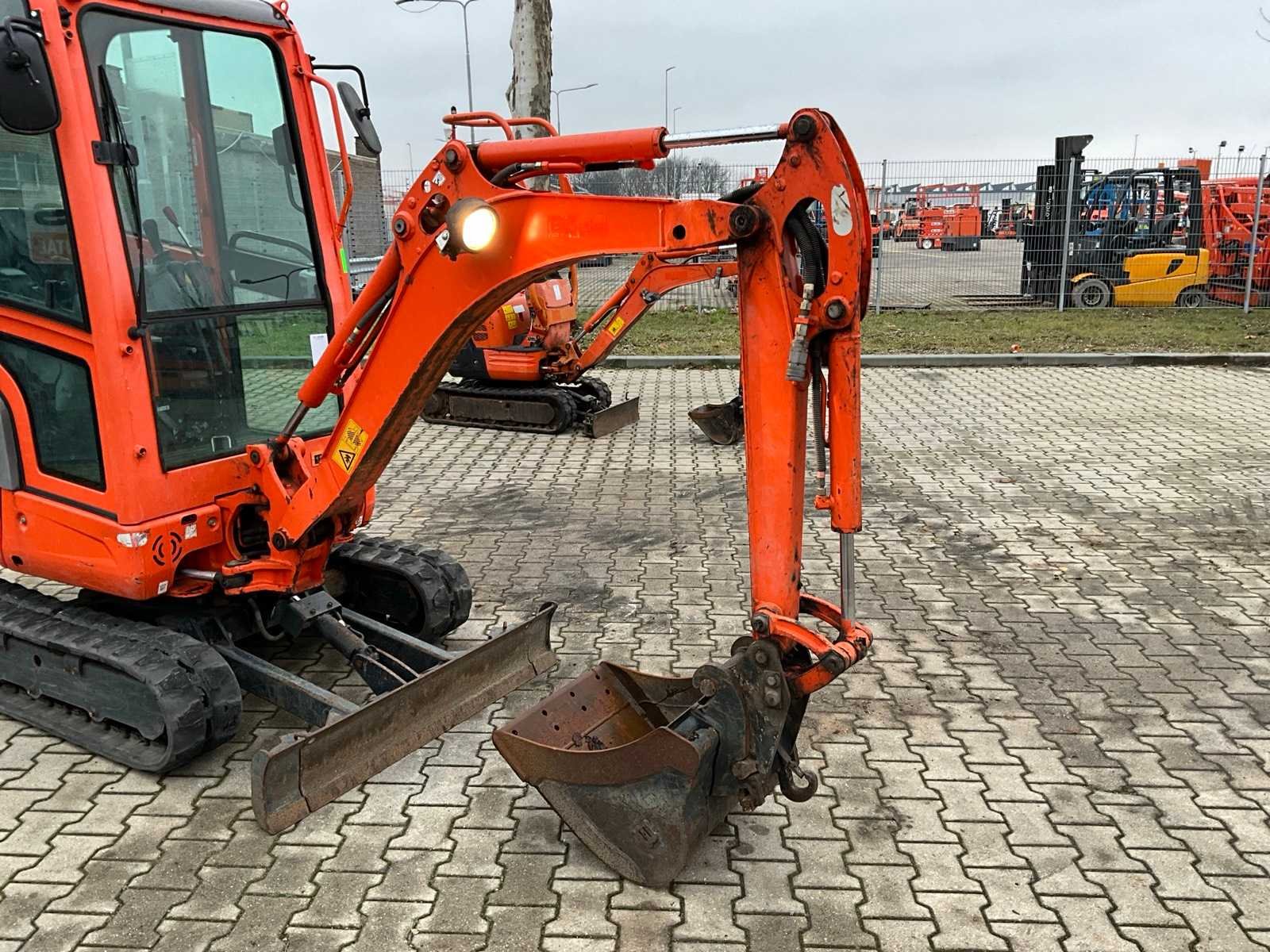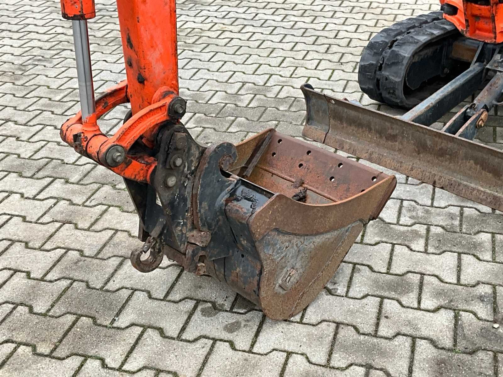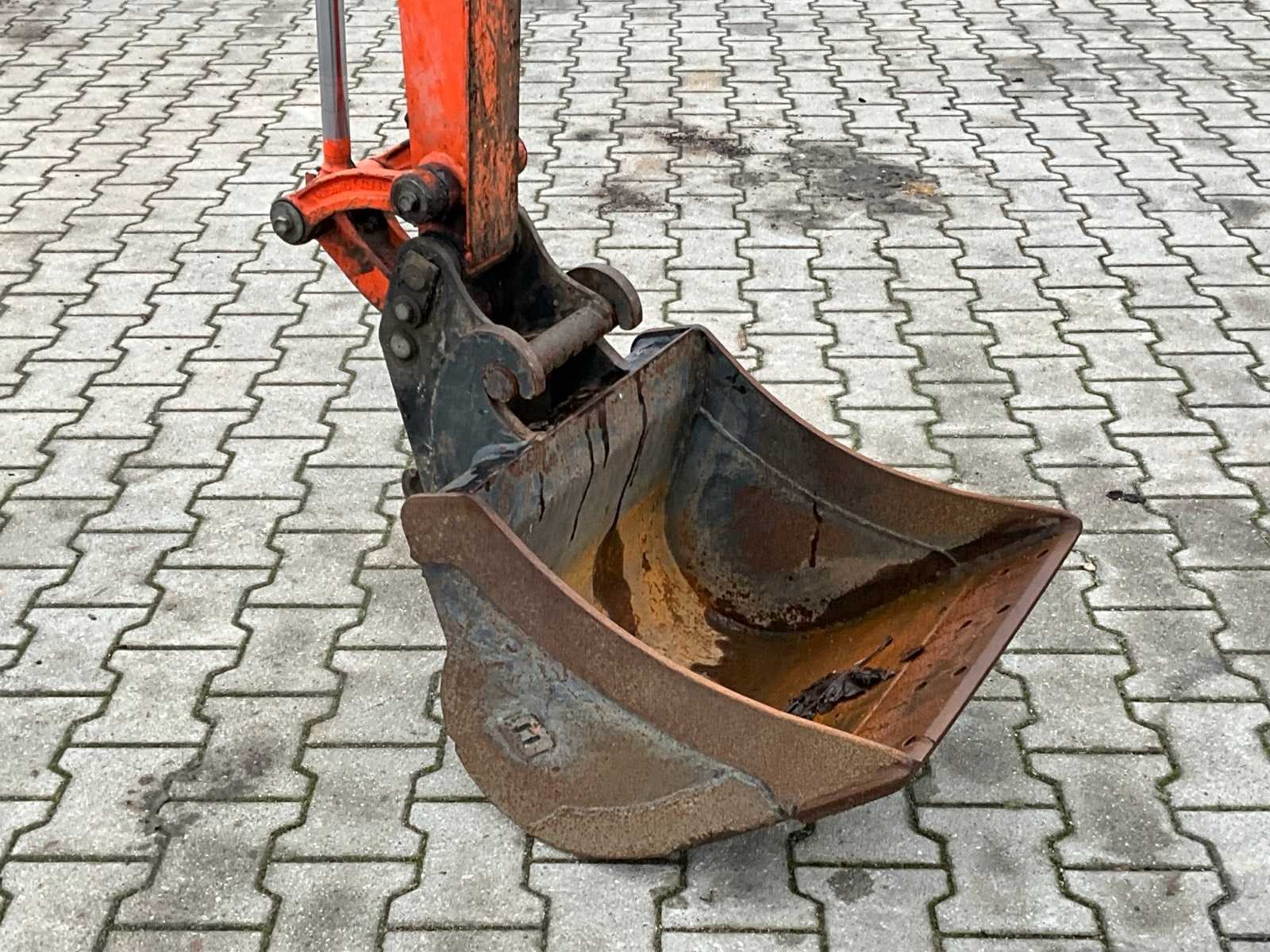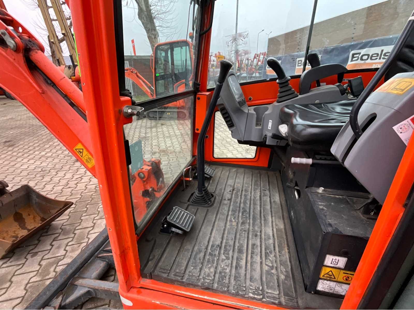 Gesloten cabine; rubber rupsbanden; rupsen hydraulisch in breedte verstelbaar 990 - 1240 mm; maximale uitstorthoogte 2250 mm; extra hydraulische functie; snelwissel; dozerblad breedte 1250 mm voorzien van verlengstuk; working condition; Nee Merk: Kubota Type: KX016-4G Bouwjaar: 2017 Serienummer: WKFRGB1200Z062233 Merk motor: Kubota Motorvermogen (kW): 9.6kW Aantal cilinders: 3 Brandstof: Diesel Max. werkbereik: 3730mm Max. graafdiepte: 2250mm Graafbak afm. l: 500mm Graafbak afm. b: 500mm Graafbak afm. h: 450mm Rups breedte: 230mm Afgelezen urenstand: 1363 Eigen gewicht: 1625kg Totale afmeting L: 3750mm Totale afmeting Breedte: 1250mm Totale afmeting Hoogte: 2350mm
