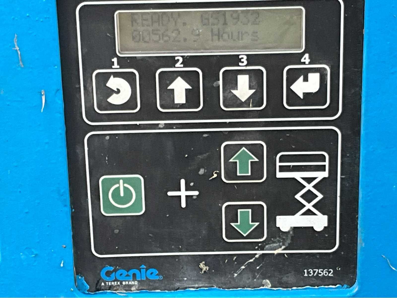 Platform vloerhoogte 5800 mm; uitschuifbaar platform 2540x740 mm; interne acculader 230 Volt; kooibediening; accupakket dient te worden vervangen; zonder typeplaatje; working condition; Nee Merk: Genie Type: GS-1932 Bouwjaar: 2013 Serienummer: GS3013A-120635 Elektrisch: true Schaarhoogwerker: true Werkhoogte: 7800mm Plateau afm. l: 1630mm Plateau afm. b: 740mm Platform capaciteit: 227kg Accu lader: true Afgelezen urenstand: 563 Eigen gewicht: 1550kg Totale afmeting L: 1850mm Totale afmeting Breedte: 850mm Totale afmeting Hoogte: 2150mm