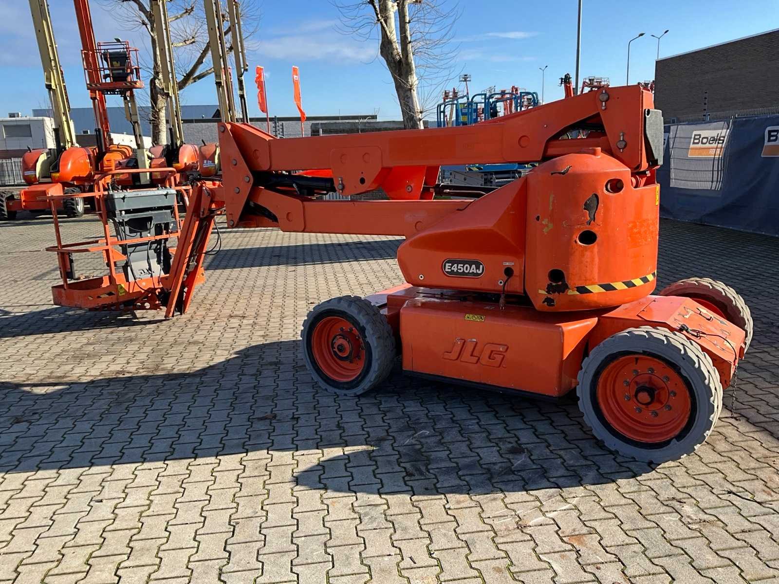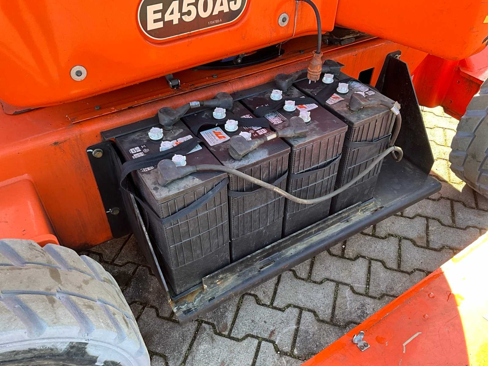 Gebruik: binnen en buiten; platform vloerhoogte 13700 mm; kooibediening; 230 Volt stroom aansluiting platform; working condition Nee Merk: JLG Type: E450AJ Bouwjaar: 2011 Serienummer: 300153892 Elektrisch: true Knikarm hoogwerker: true Werkhoogte: 15700mm Horizontale rijkwijdte: 7000mm Plateau afm. l: 1520mm Plateau afm. b: 760mm Platform capaciteit: 230kg Accu lader: true Afgelezen urenstand: 2490 Eigen gewicht: 6750kg Totale afmeting L: 6600mm Totale afmeting Breedte: 1760mm Totale afmeting Hoogte: 1960mm