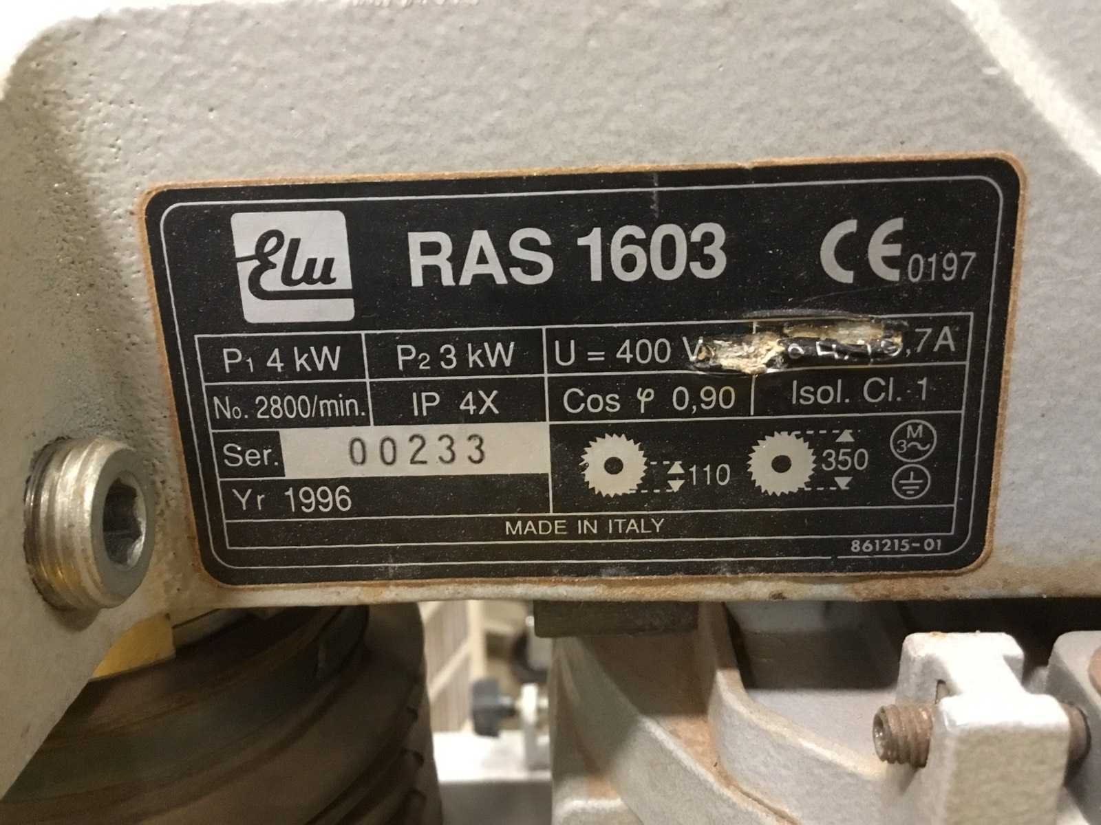Nee Merk: Elu Type: 1603 Bouwjaar: 1996 Zaagblad Ø: 350mm Uitlading: 450mm Verstek: true Tafel afmeting l: 1100mm Tafel afmeting b: 570mm Motorvermogen (kW): 3kW Aansluiting: 400V Afmeting l: 1200mm Afmeting b: 1150mm Afmeting h: 150mm