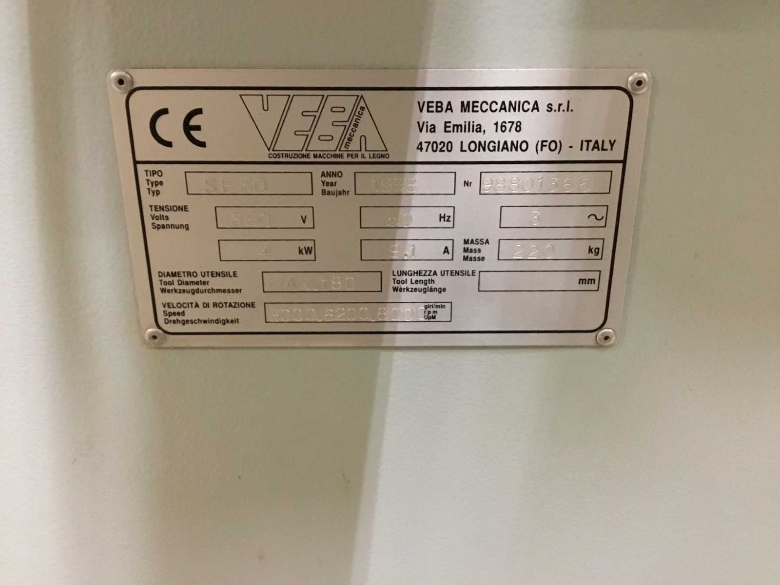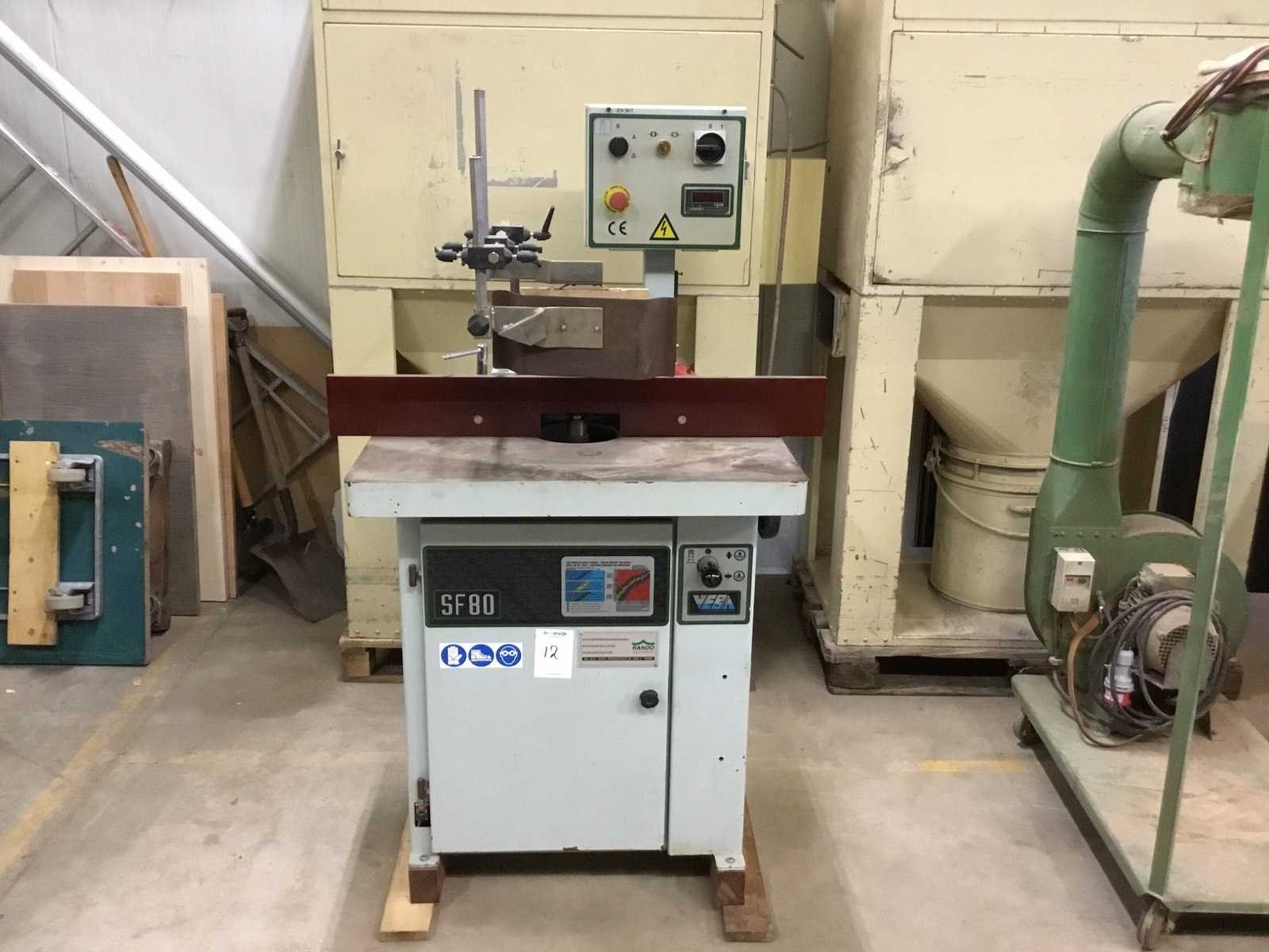 Maximale werktuigafmeting 180mm. Geremd. Nee Merk: Veba Type: SF 80 Bouwjaar: 1998 Tafel afmeting l: 845mm Tafel afmeting b: 650mm Spil Ø: 30mm Spilhoogte: 180mm Aantal snelheden: 3 Aansluiting: 400V Machinegewicht: 220kg Afmeting l: 1020mm Afmeting b: 800mm Afmeting h: 1700mm