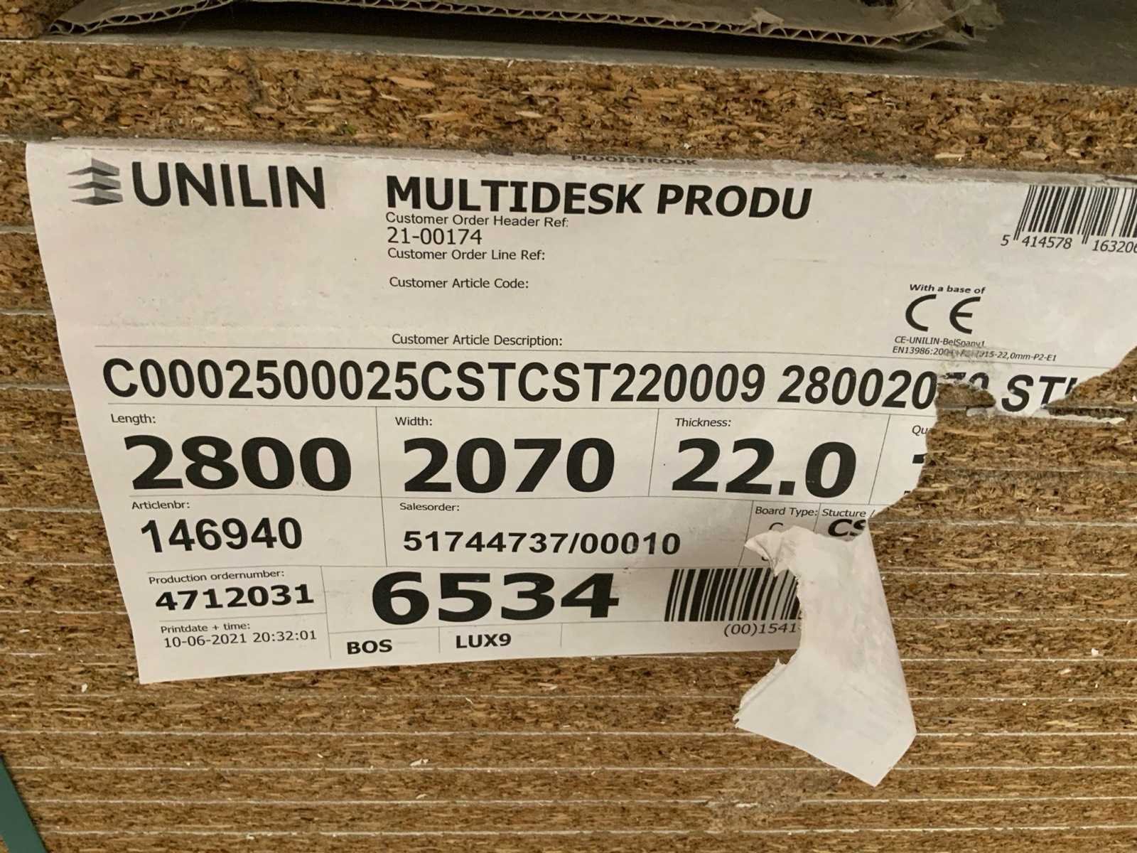 Nee Merk: Unilin Plaatafmeting l: 2800mm Plaatafmeting b: 2070mm Dikte: 22mm Totale afmeting L: 2800mm Totale afmeting Breedte: 2070mm Totale afmeting Hoogte: 500mm
