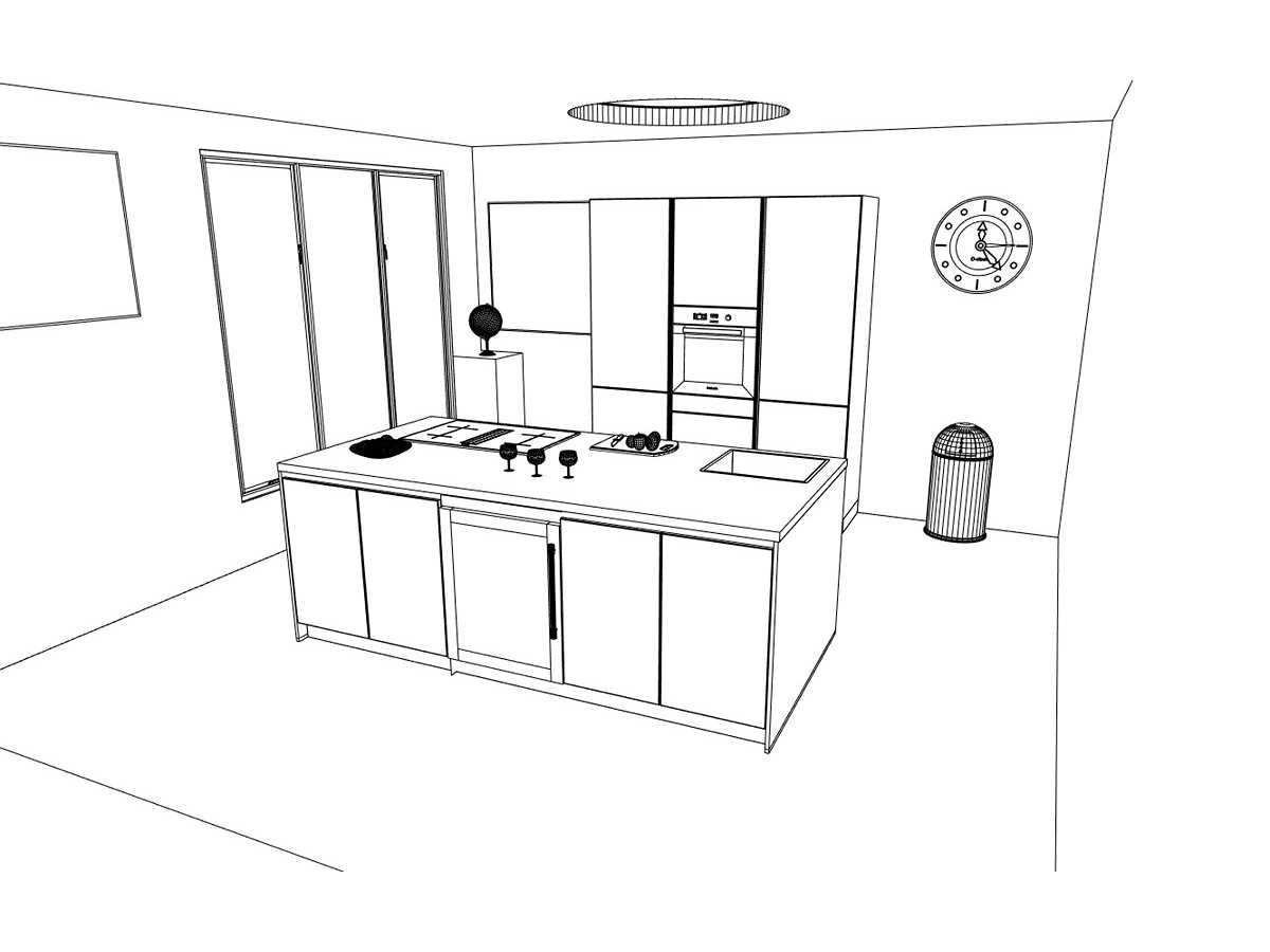 Miele KMDA7473FR-U Inductiekookplaat inclusief afzuigsysteem, 4 kookzones, 2 flex zones, 80cm. Siemens KU21WAHG0 Onderbouw wijnklimaatkast 60x82cm. Let op! Staat niet opgesteld in de showroom, enkel via 3D tekening; wordt geleverd ongebruikt in doos. Let op! Excl. Kraan en accessoires. Nee Merk: Häcker Concept130 Model: Topsoft mat zwart lak Type keukenopstelling: Eiland Lengte: 185cm Breedte: 60cm Hoogte: 218cm Gootsteen: Reginox Amsterdam 50 pure black Pure Black opbouw spoelbak 50x40cm Werkblad hoogte: 92cm Aanrechtblad: HPL marmer groen repro (150) 3,8cm Koelkast: Miele K7125E Integreerbare koelkast met superKoelen, inhoud 136 liter, Nis 88cm Softclose: true Oven: Miele H2861BCLST Multifunctionele oven PureLine met 8 programma's, inhoud 76 liter, Nis 60cm. Vaatwasser: Miele G5150SCVI Volledig integreerbare vaatwasmachine met 5 reinigingsprogramma's 60cm Lengte kookeiland: 244cm Breedte kookeiland: 120cm Hoogte kookeiland: 02cm Plintkleur: mat zwart Hoofdkleur: Mat zwart lak Style: Modern greeploos Kleur: mat zwart