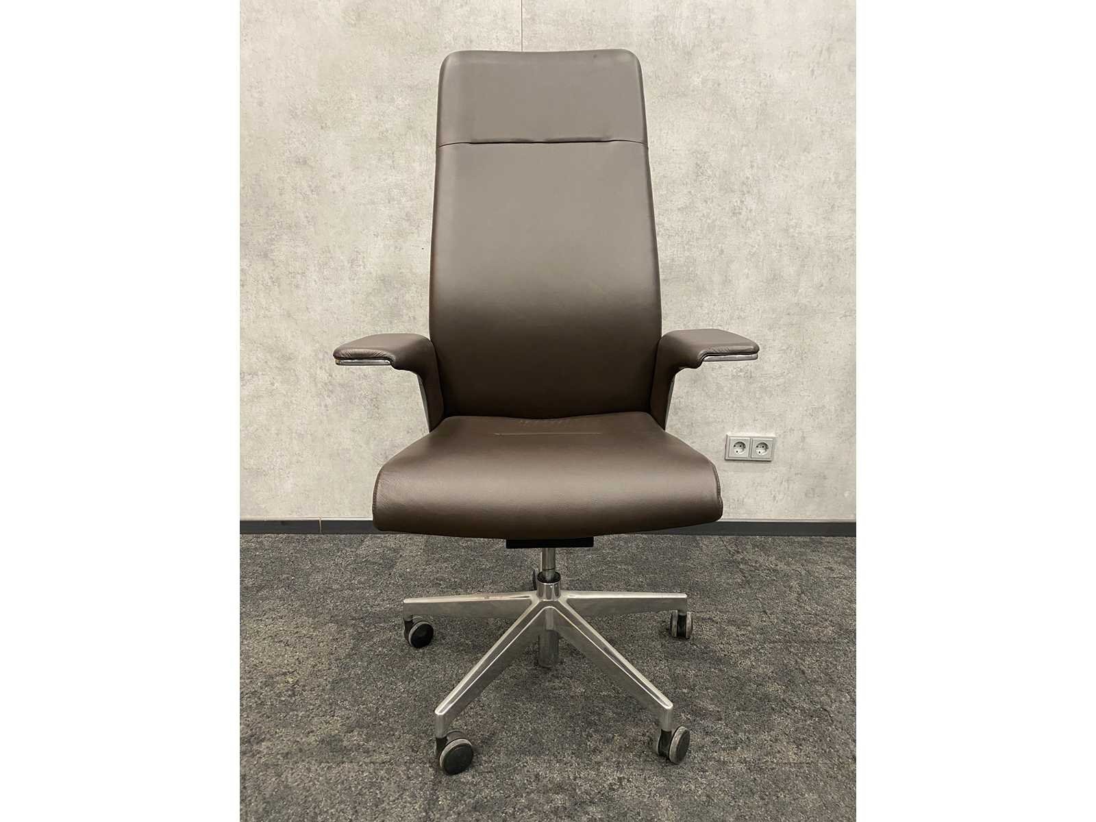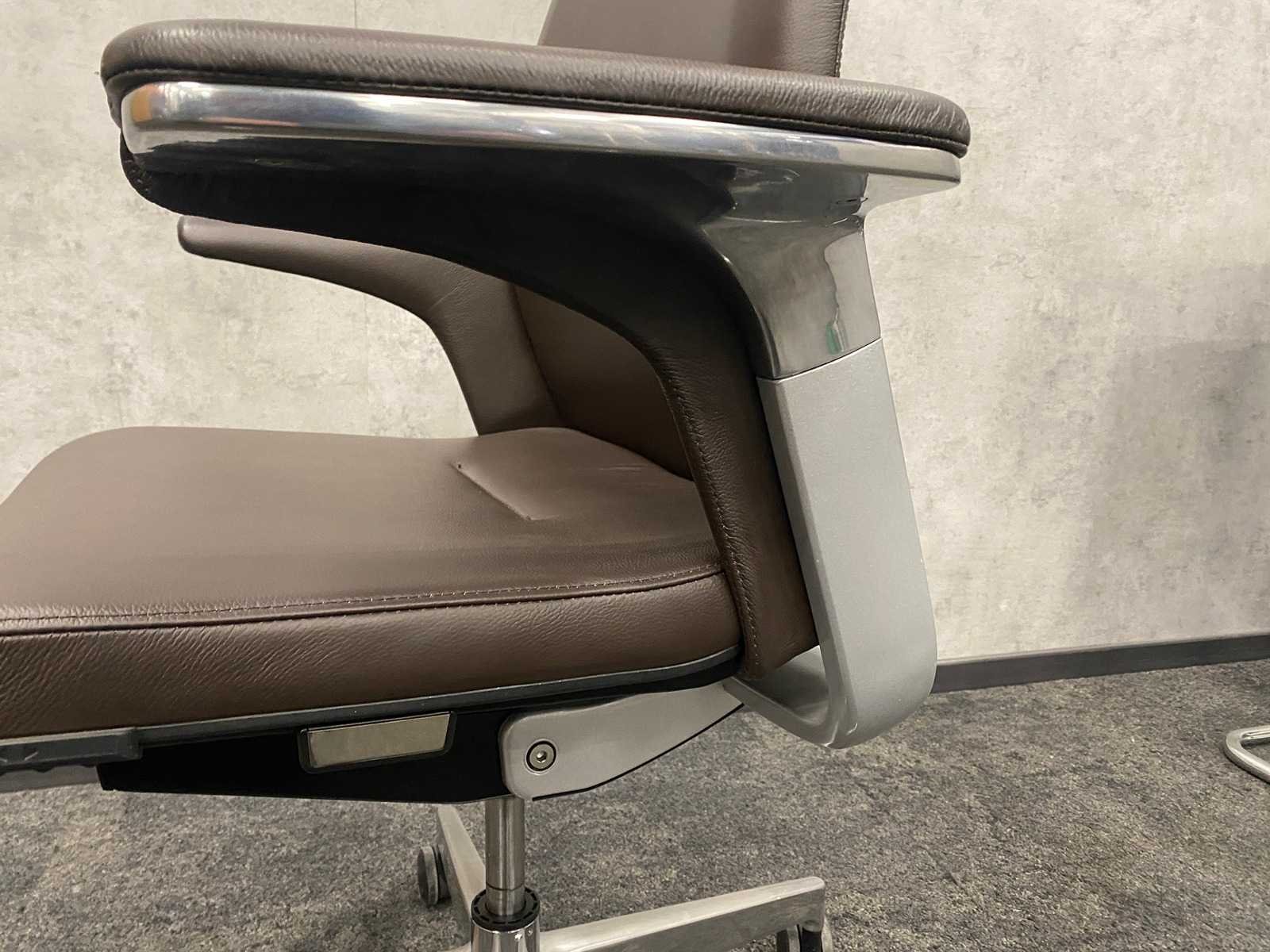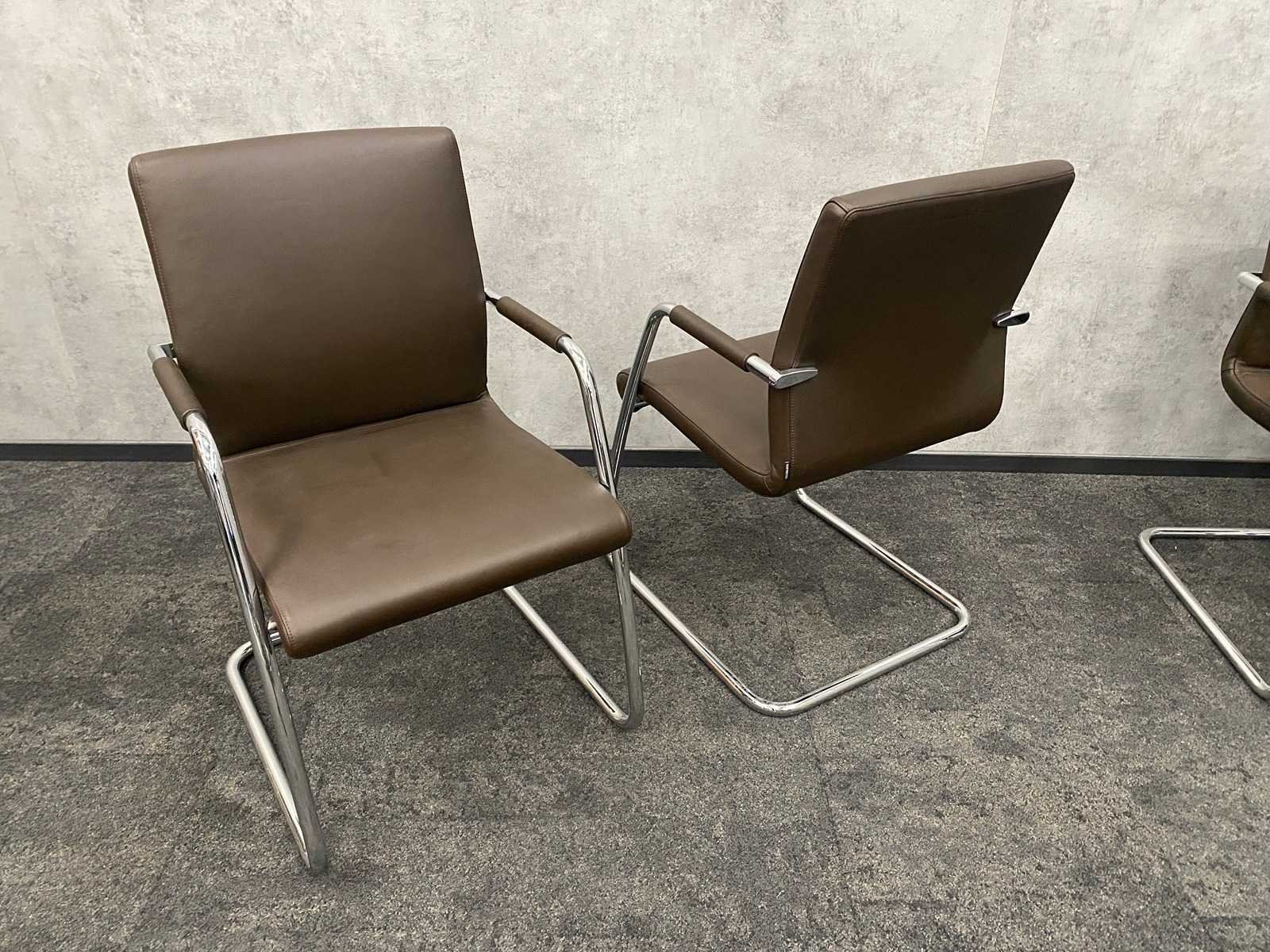 Kavel bestaande uit 4x Martin Stoll conferentiestoel v.v. bruin leder. -- 1x ASIS Match Executive bureaustoel v.v. armleggers, zitdiepte en zithoogte instelbaar, actief zitten. Nee Merk: ASIS Match Executive/ Martin Stoll Kleur: bruin, chroom