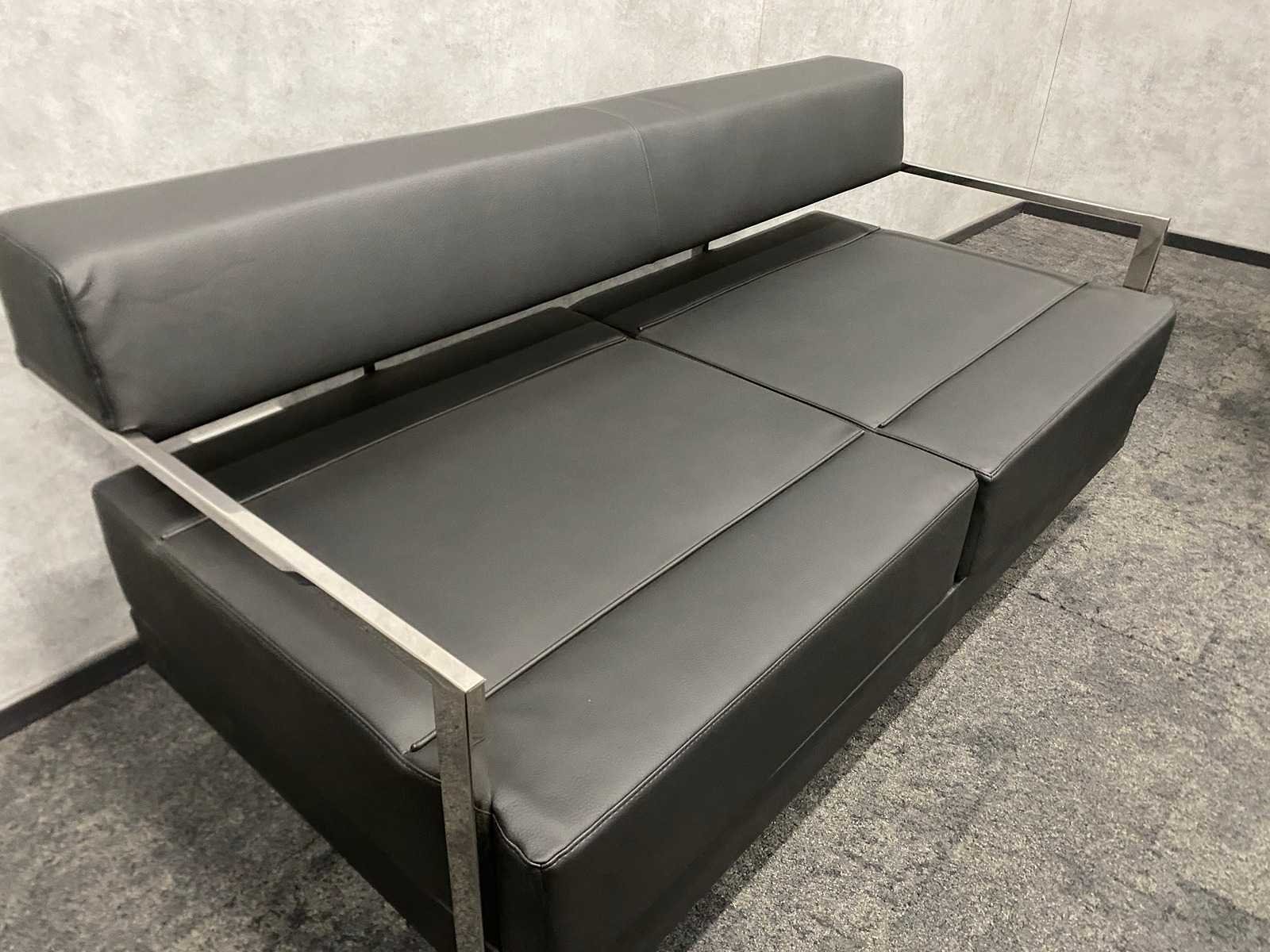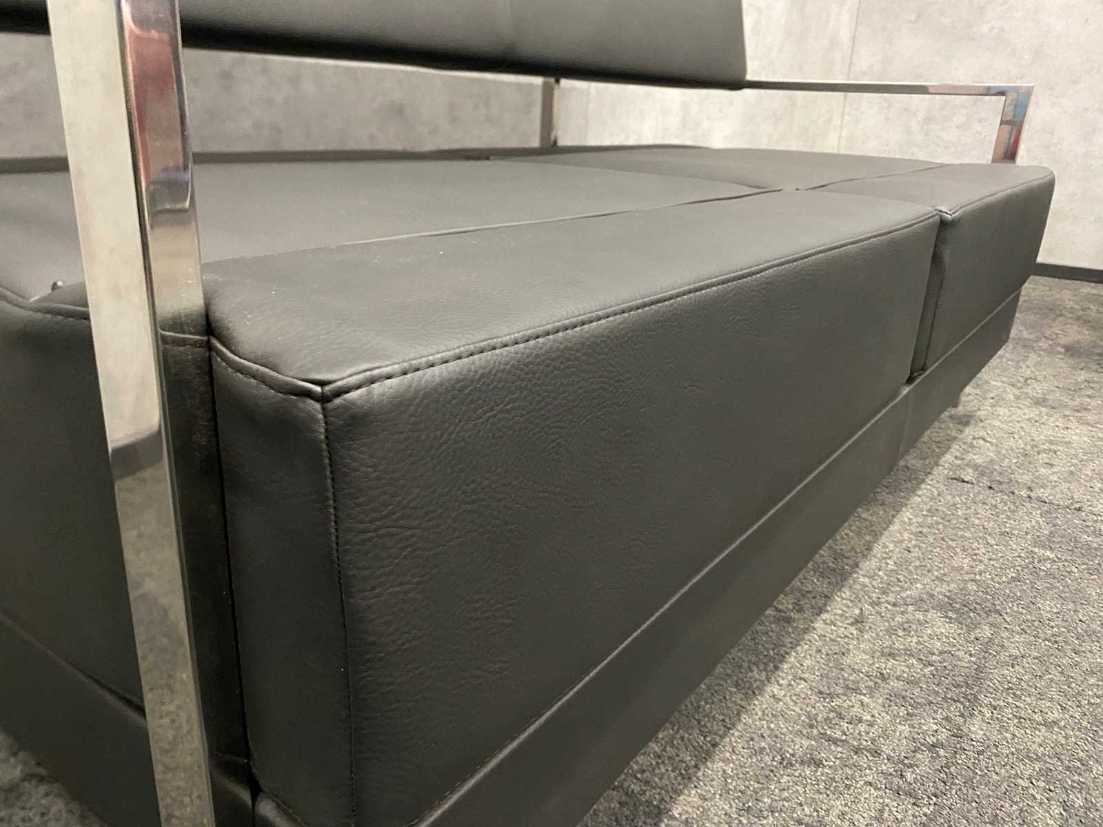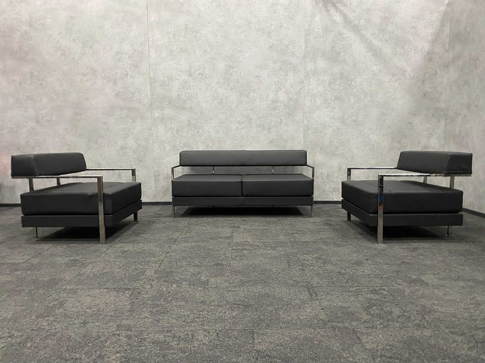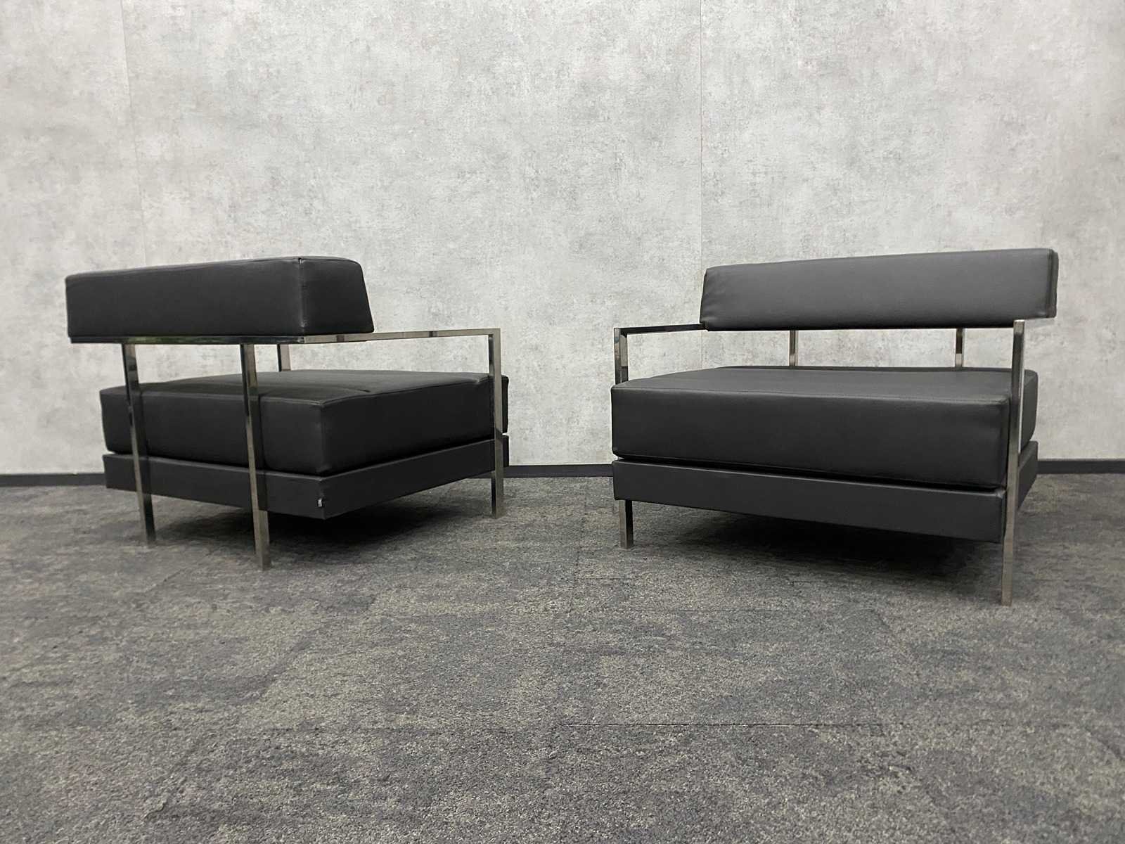 Afm. fauteuils ca. hxbxd 76x94x84 cm. zithoogte ca. 44 cm. ----- Afm. 2.5 zits sofa ca. hxbxd 76x164x84 cm. zithoogte ca. 44 cm. Nee Merk: Noti Ixo Kleur: chroom, zwart Materiaal: metaal, leder