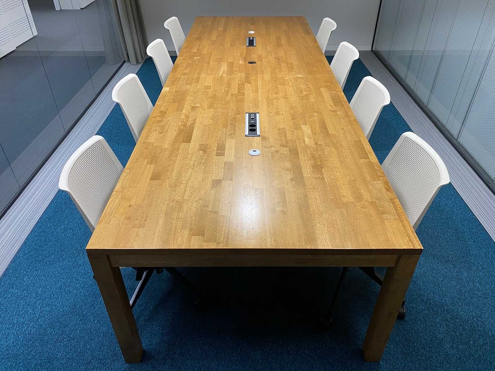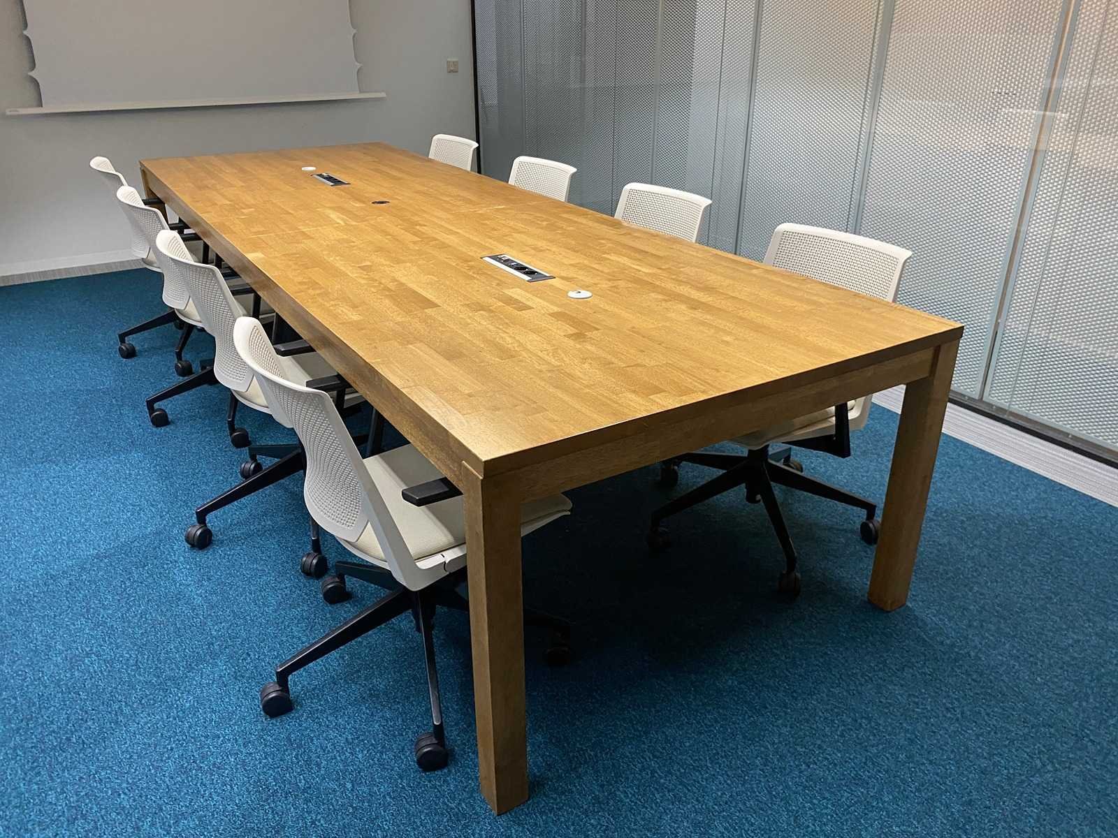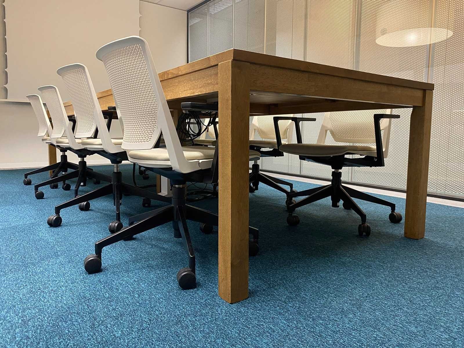 Kavel bestaande uit 8x Haworth verrijdbare conferentiestoel --- 1x rustieke houten conferentietafel v.v. inbouwmodule en kabeldoorvoer. tafel is reeds professioneel gedemonteerd (blad in 2 delen) Nee Merk: Haworth Lengte: 350cm Breedte: 120cm Hoogte: 76cm