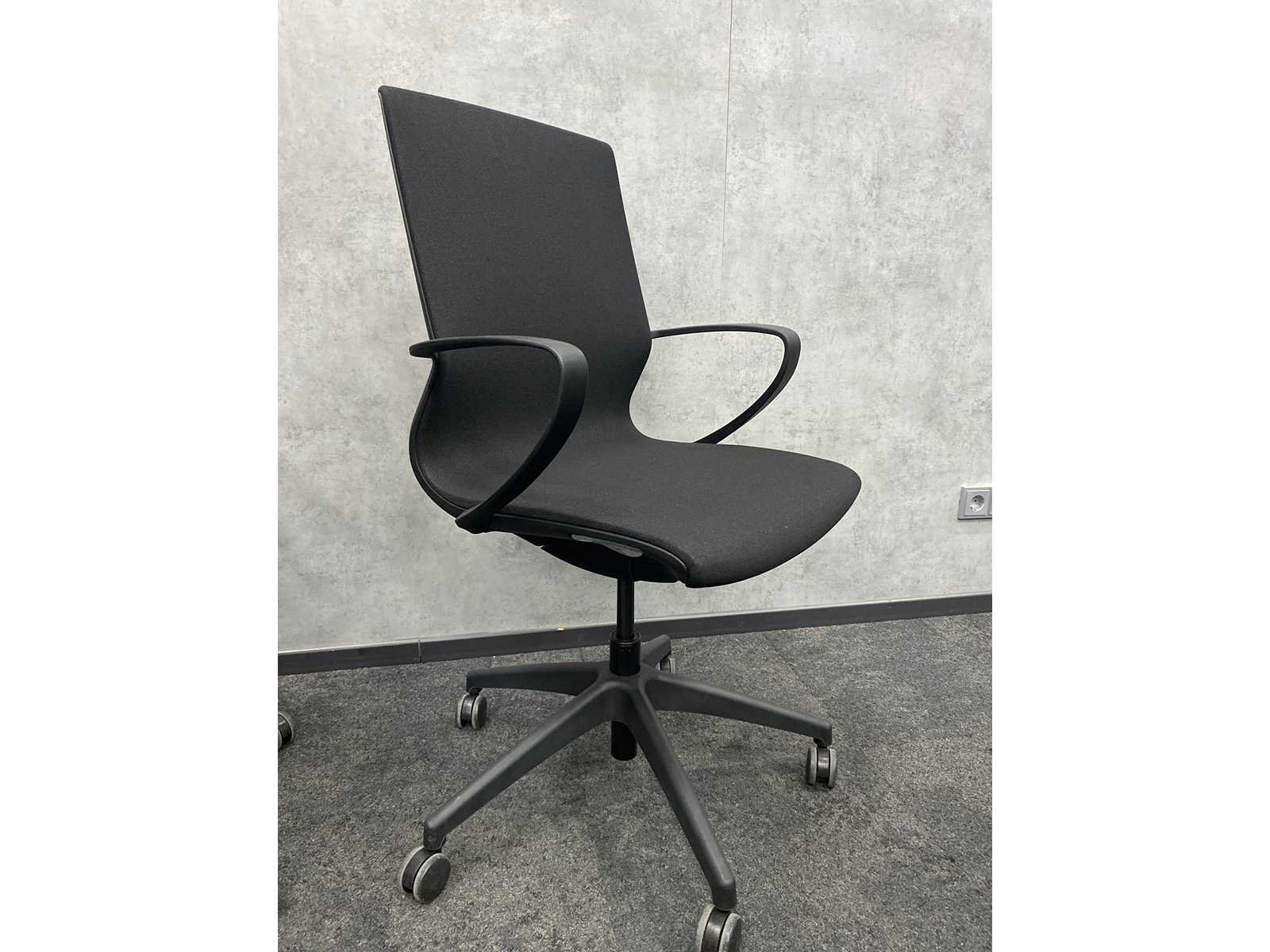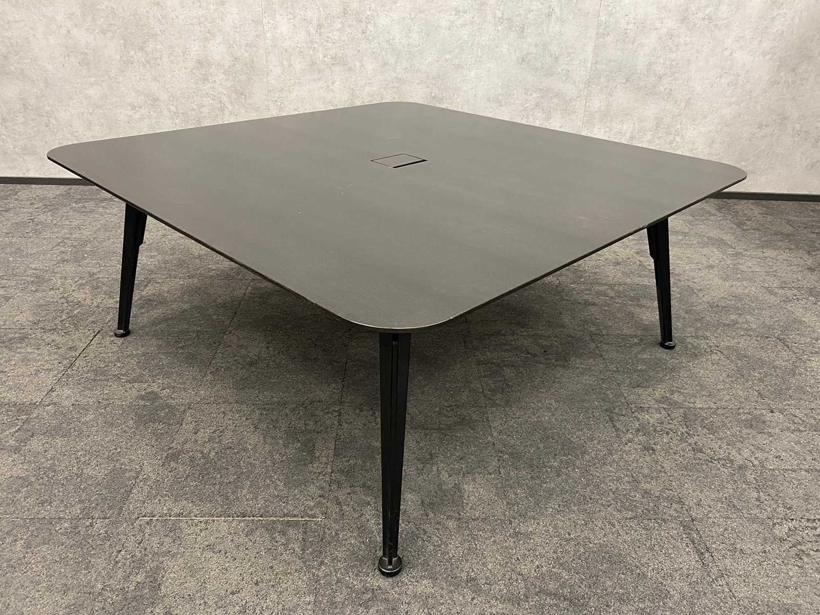 Kavel bestaande uit 1x CASE01 design tafel v.v. in hoogte instelbaar frame v.v. kabeldoorvoer ----- 8x Alternativ verrijdbare conferentiestoel, zithoogte verstelbaar. Nee Merk: CASE01/ Alternativ Kleur: zwart Lengte: 180cm Breedte: 180cm