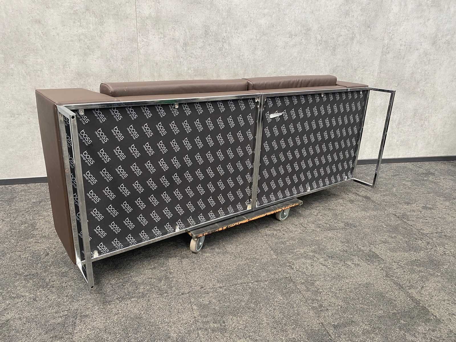 Nee Merk: Layla by Boss Design Kleur: bruin, chroom Breedte: 200cm Hoogte: 68cm Zithoogte: 42cm Diepte: 76cm Materiaal: leder
