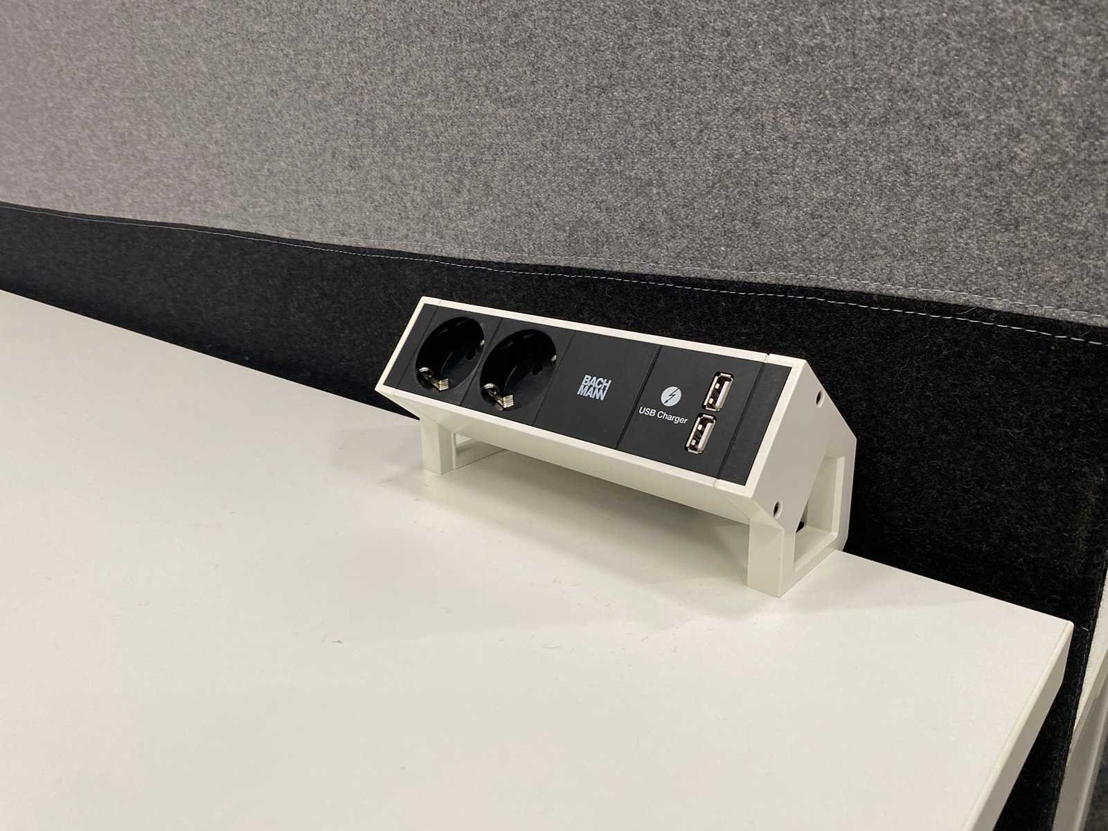 V.v. grijs akoestische scheidingswand en 2x Bachmann opbouw stekkerblok (2x230V+2xUSB) ---- let op transportafmeting. ca. hxbxd 65x140x170 cm. Nee Slingerbureau: true Breedte: 140cm Diepte: 80cm