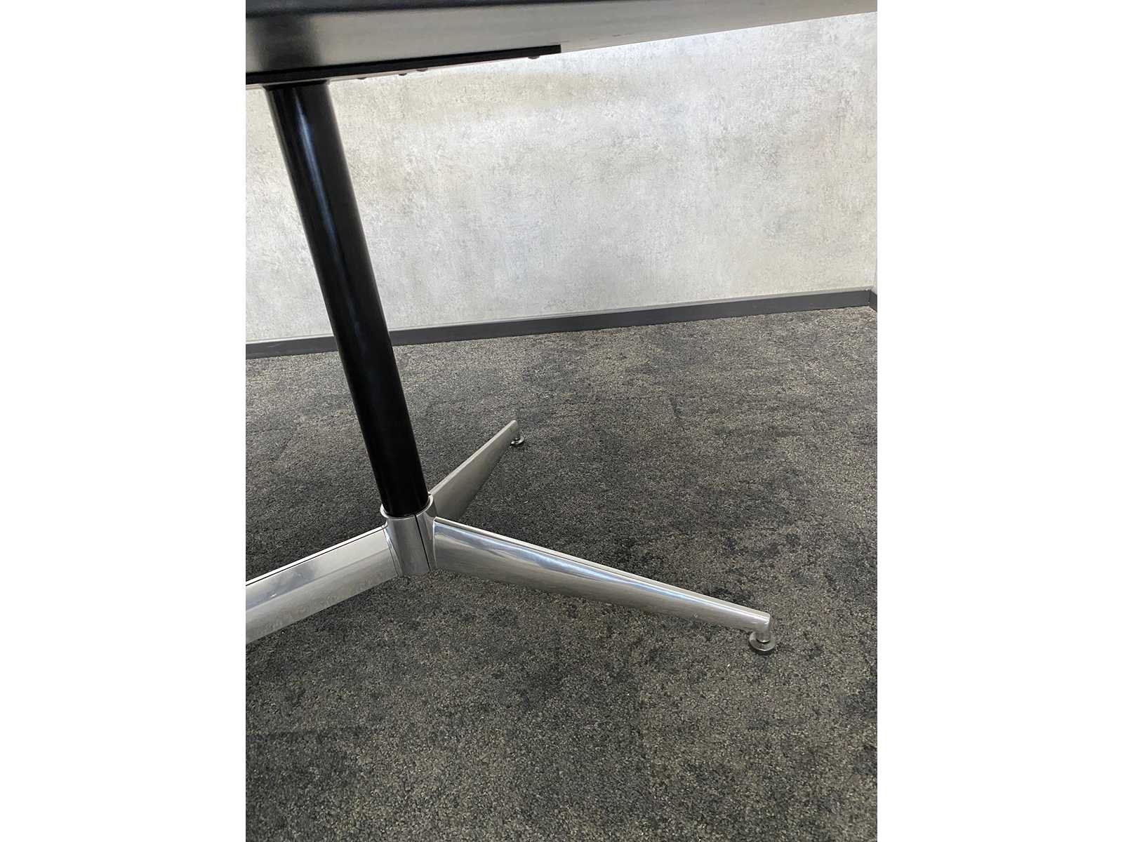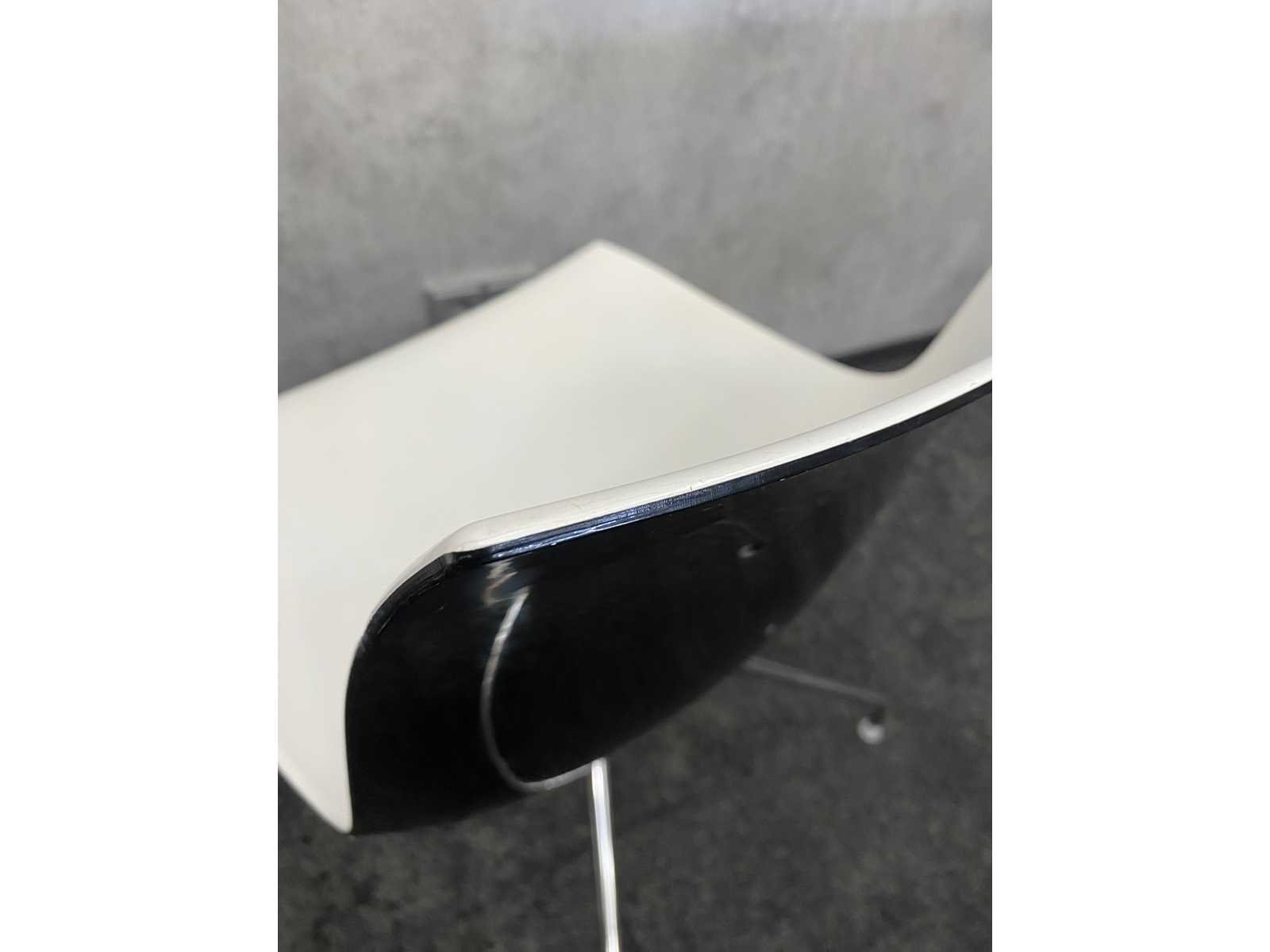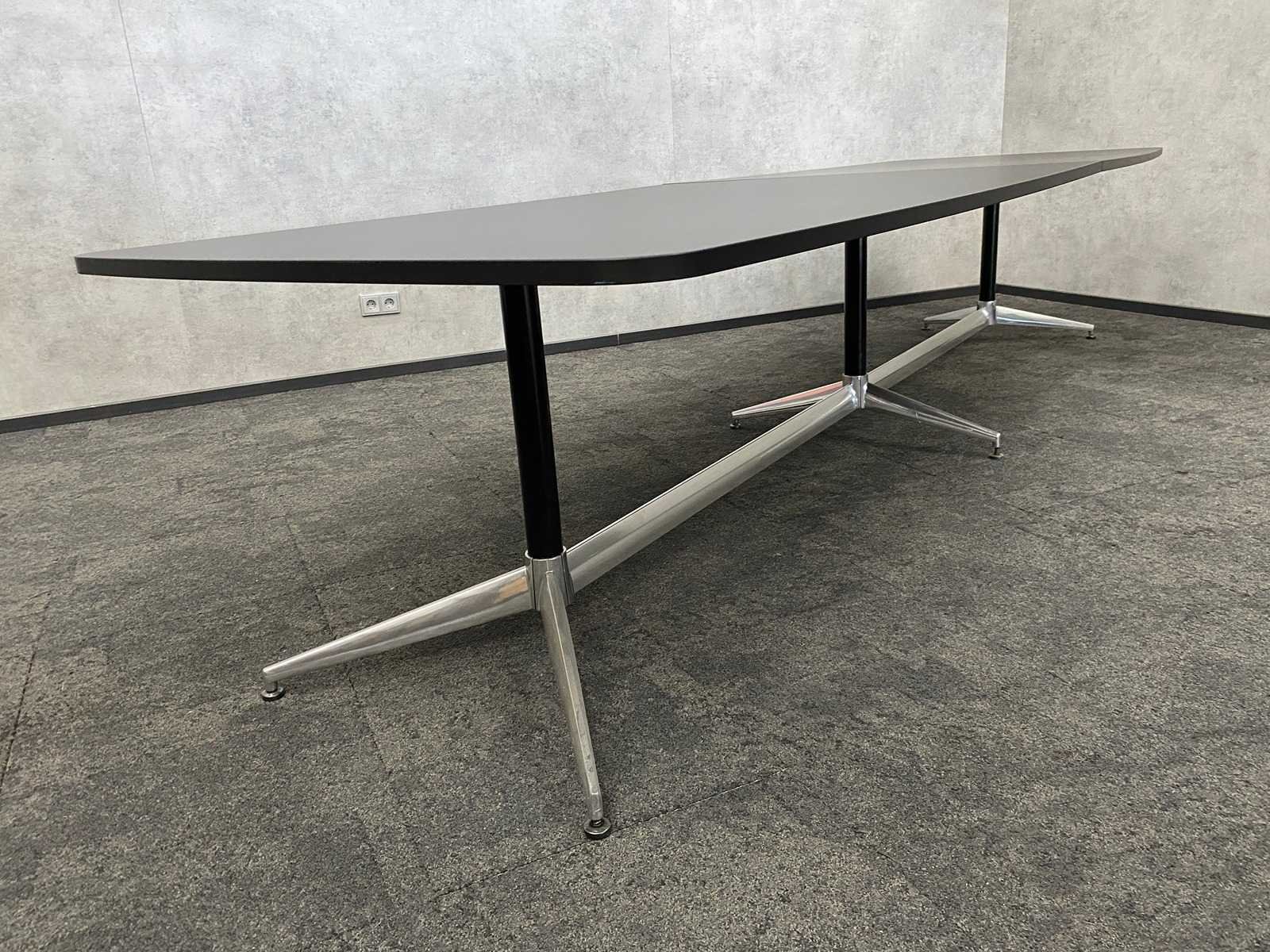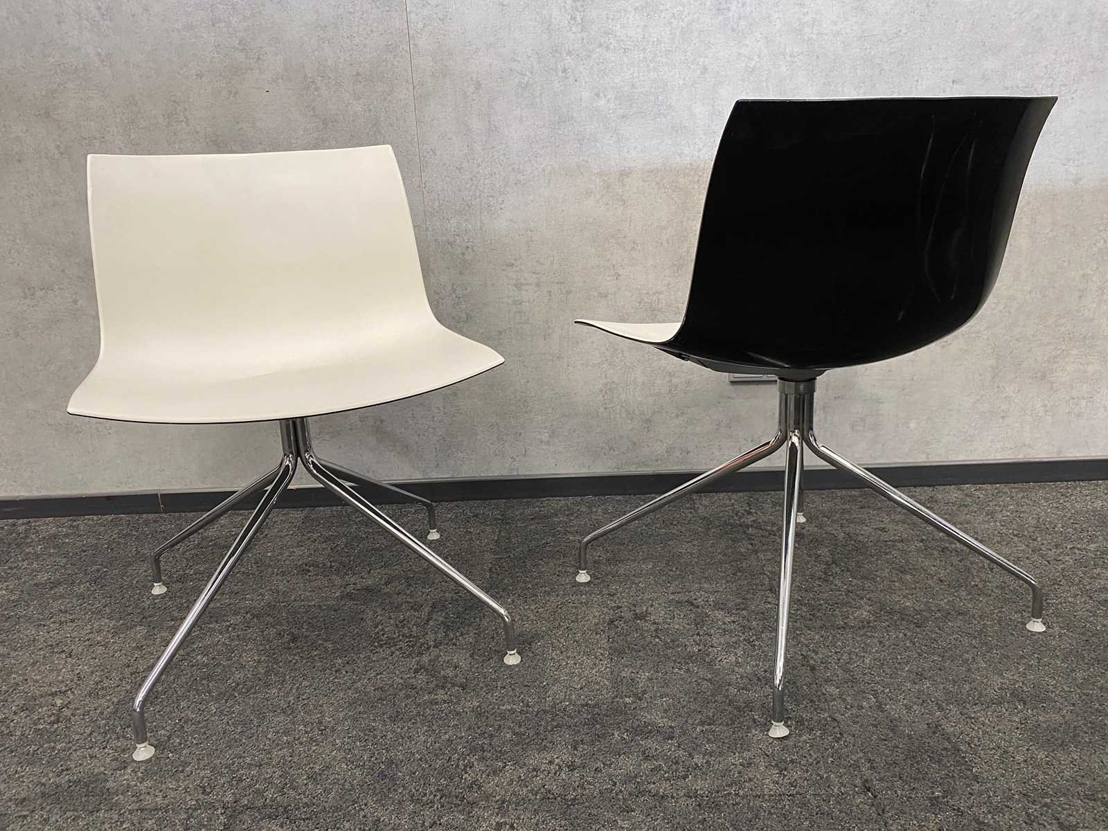 Kavel bestaande uit 12x Arper Catifa design stoel v.v. draaibaar frame -- 1x nieuwe vergadertafel v.v. nieuw chroom/zwart stalen frame en 2-delig zwart melamine tafelblad. Tafel is reeds gedemonteerd/ nieuw in doos (LET OP tafelbladen zijn los en onverpakt) Nee Merk: Arper Catifa Kleur: zwart, chroom, wit Lengte: 370cm Breedte: 120cm Hoogte: 74cm