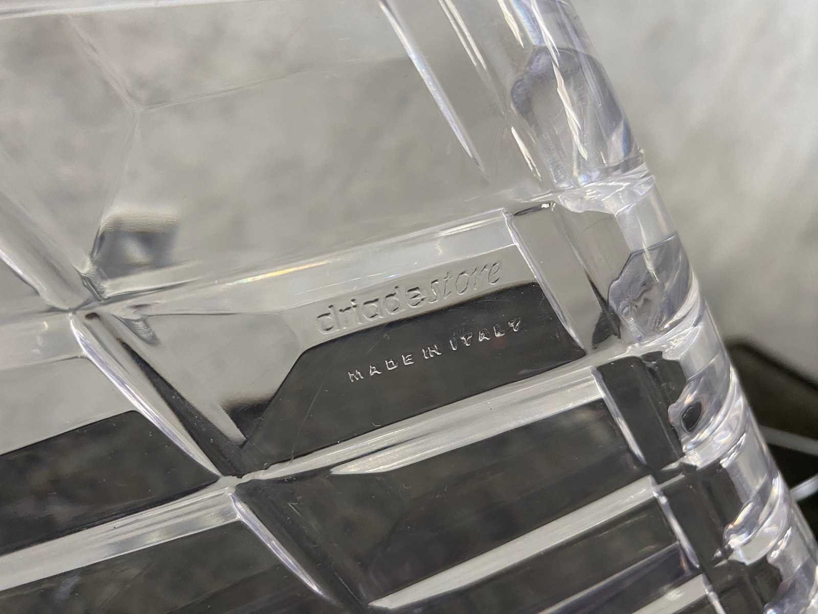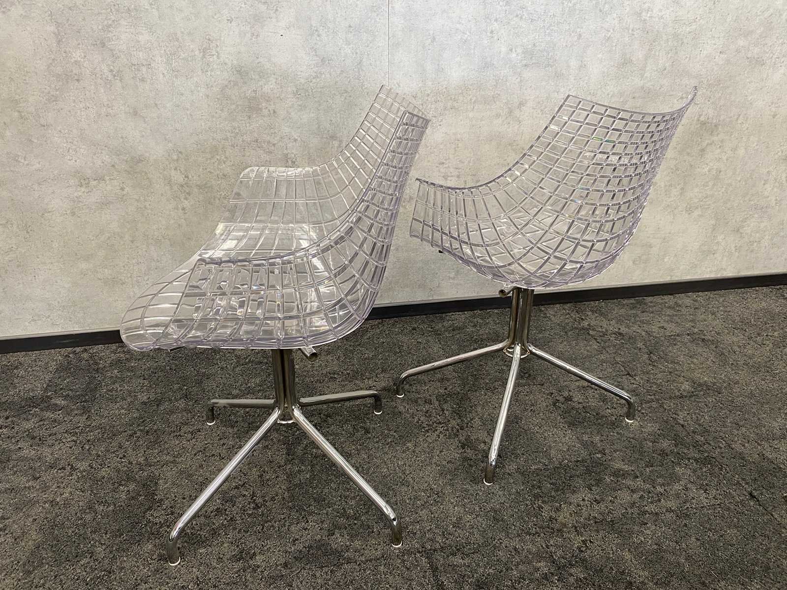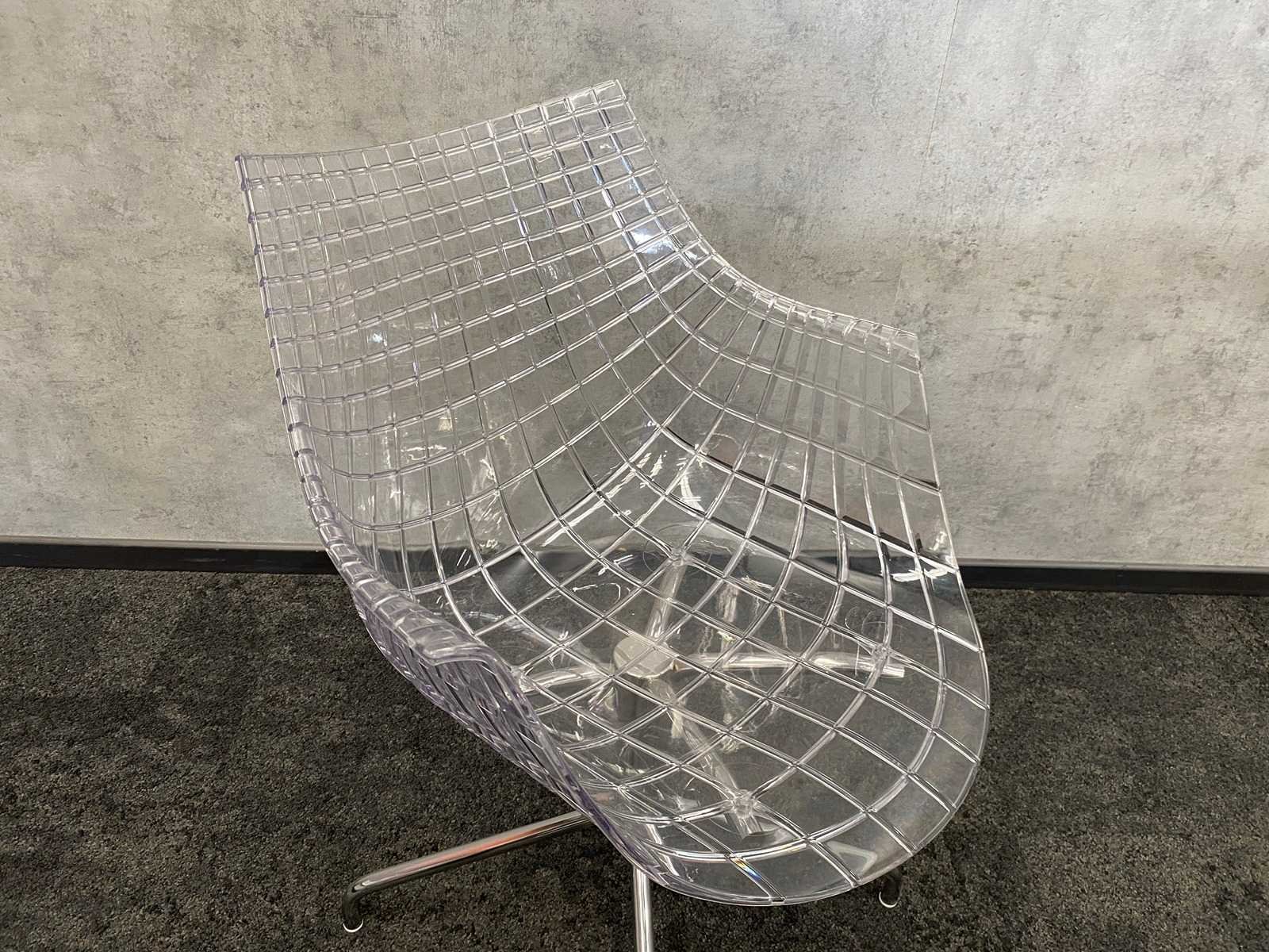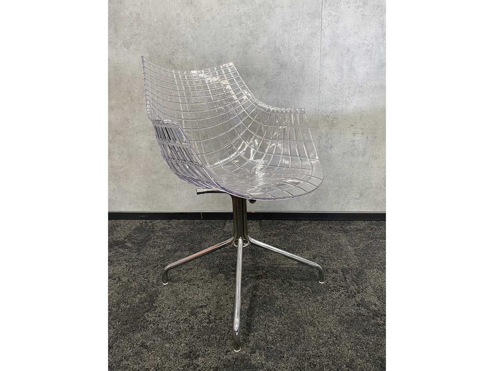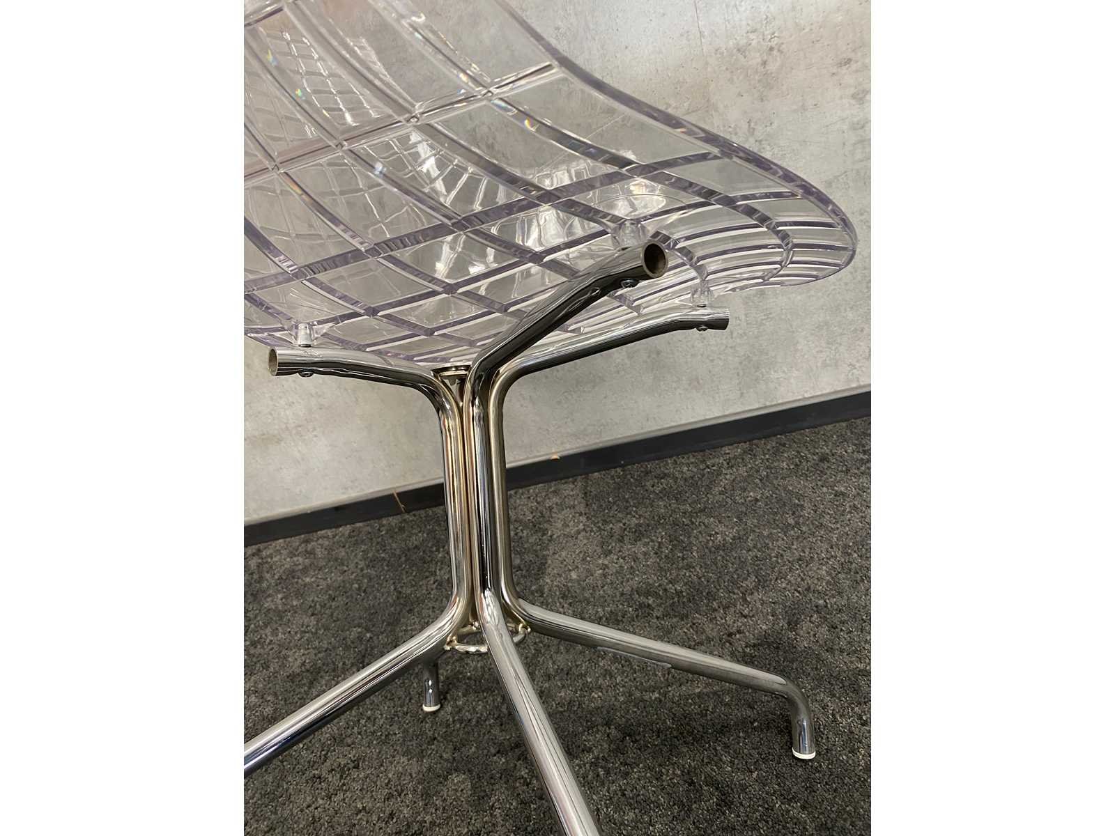 Kavel bestaande uit 8x Driade Meridiana design stoel --- 1x nieuwe vergadertafel v.v. nieuw chroom/zwart stalen frame en 2-delig zwart melamine tafelblad. Tafel is reeds gedemonteerd/ nieuw in doos (LET OP tafelbladen zijn los en onverpakt) Nee Merk: Driade Meridiana Kleur: zwart, chroom, transparant Lengte: 370cm Breedte: 120cm Hoogte: 74cm