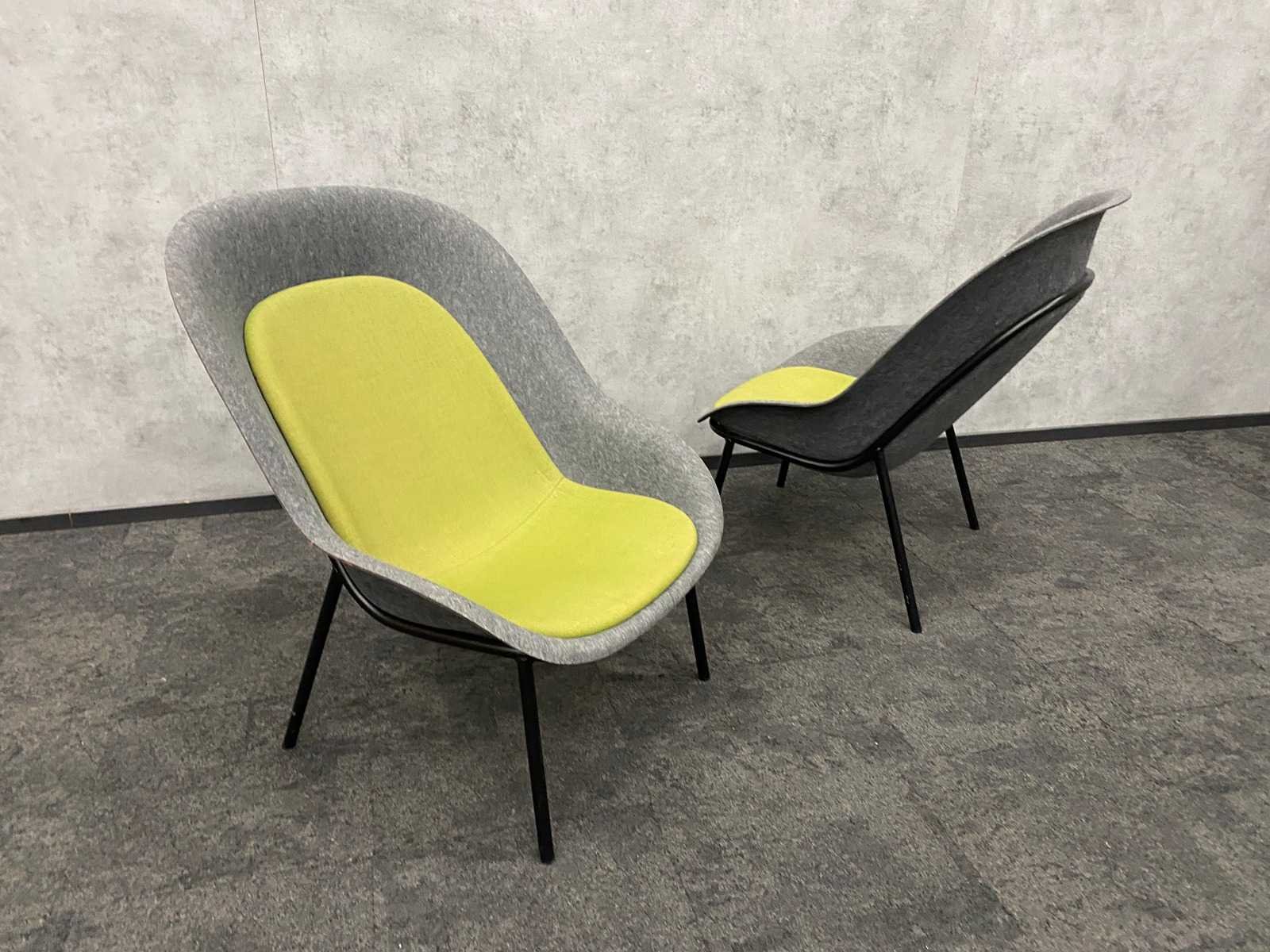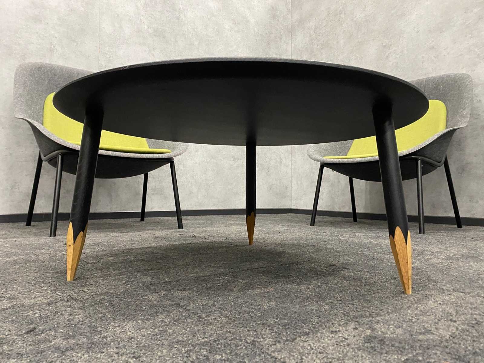 Kavel bestaande uit 3x De Vorm Nook design fauteuil ---- 1x &tradition by Samuel Wilkinson coffee table, hoogte ca. 40 cm. en diameter 93 cm. Nee Merk: De Vorm/ &tradition Materiaal: metaal, PET-vilt