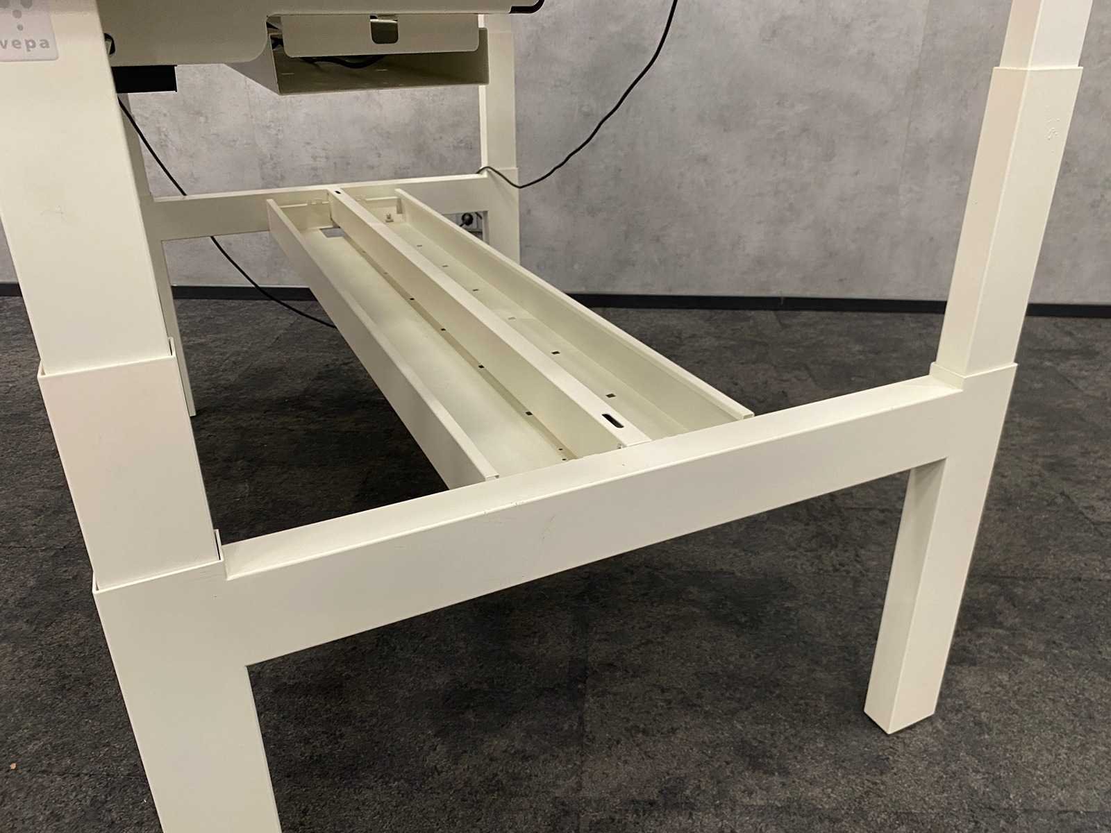 Hoogte werkblad ca. 64 tot 130 cm. --- v.v. draadgoot en kabeldoorvoer. --- let op transportafmeting ca. hxbxd 65x160x170 cm. Nee Merk: Vepa Zit-sta: true Elektrisch verstelbaar: true Kleur: wit Breedte: 160cm Hoogte: 130cm Materiaal: metaal, melamine Diepte: 80cm