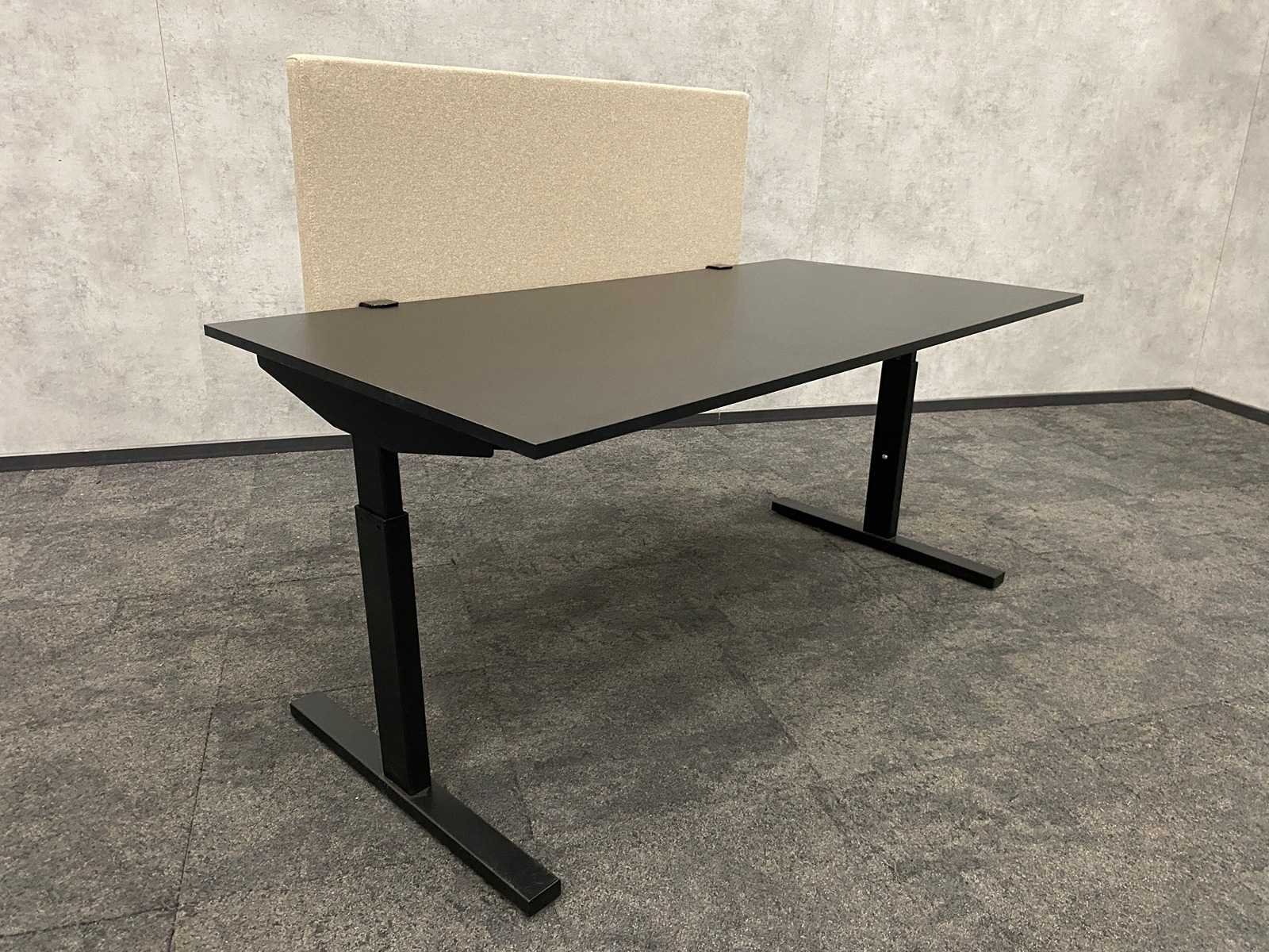 Met beige scheidingswand v.v. bureauklemmen. Nee Kleur: beige, zwart Breedte: 160cm Materiaal: metaal, melamine Diepte: 80cm