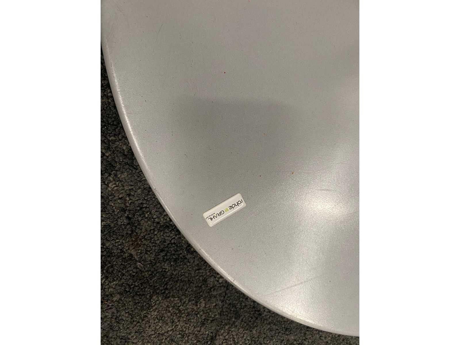 Afm. tafels ca. hoogte 75.5 cm. diameter 80 cm. Nee Merk: Rohde&Grahl/ Alma Design