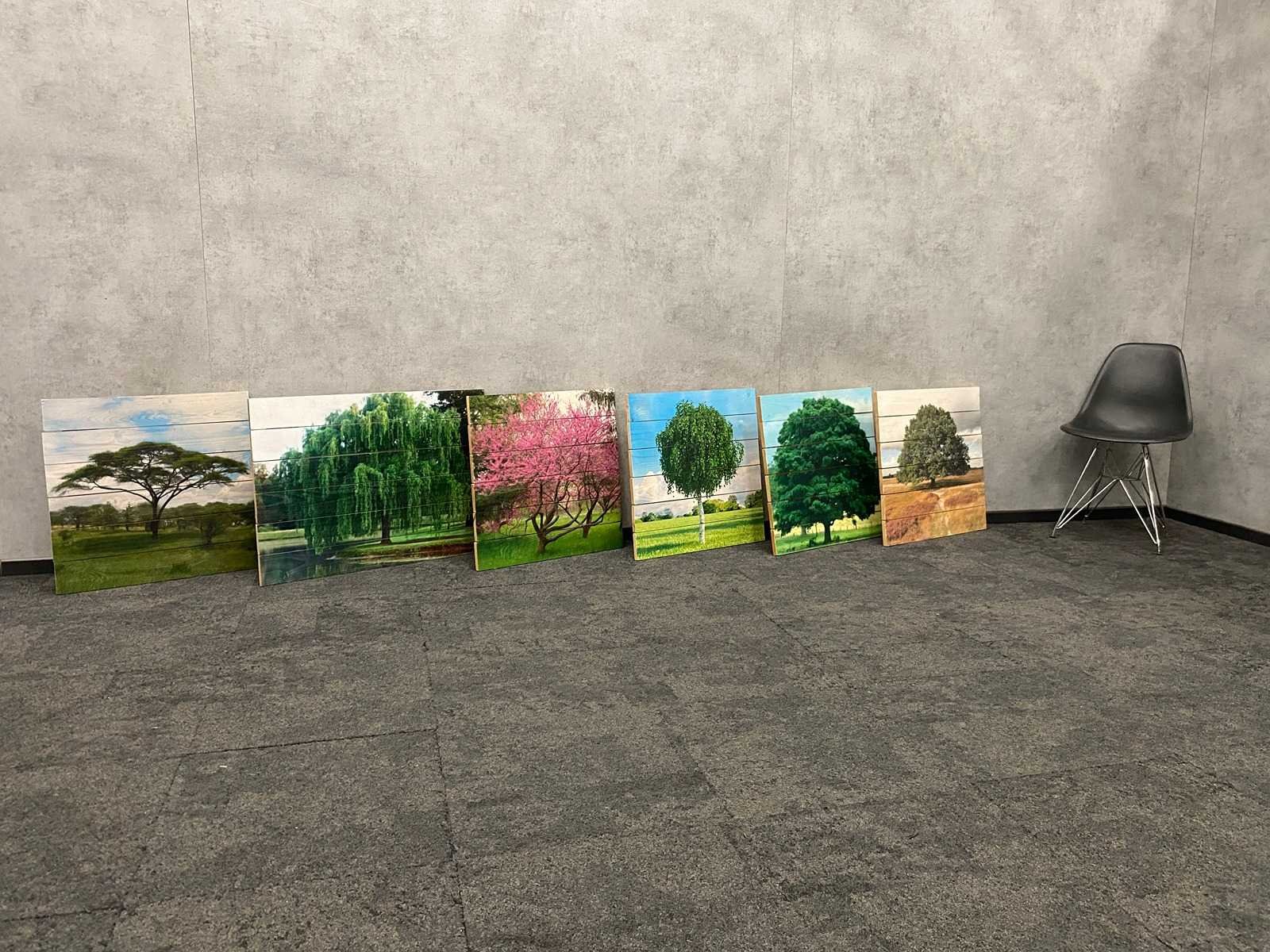 6x wanddecoratie - boom afgedrukt op hout