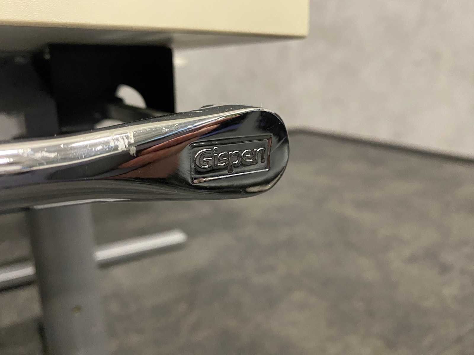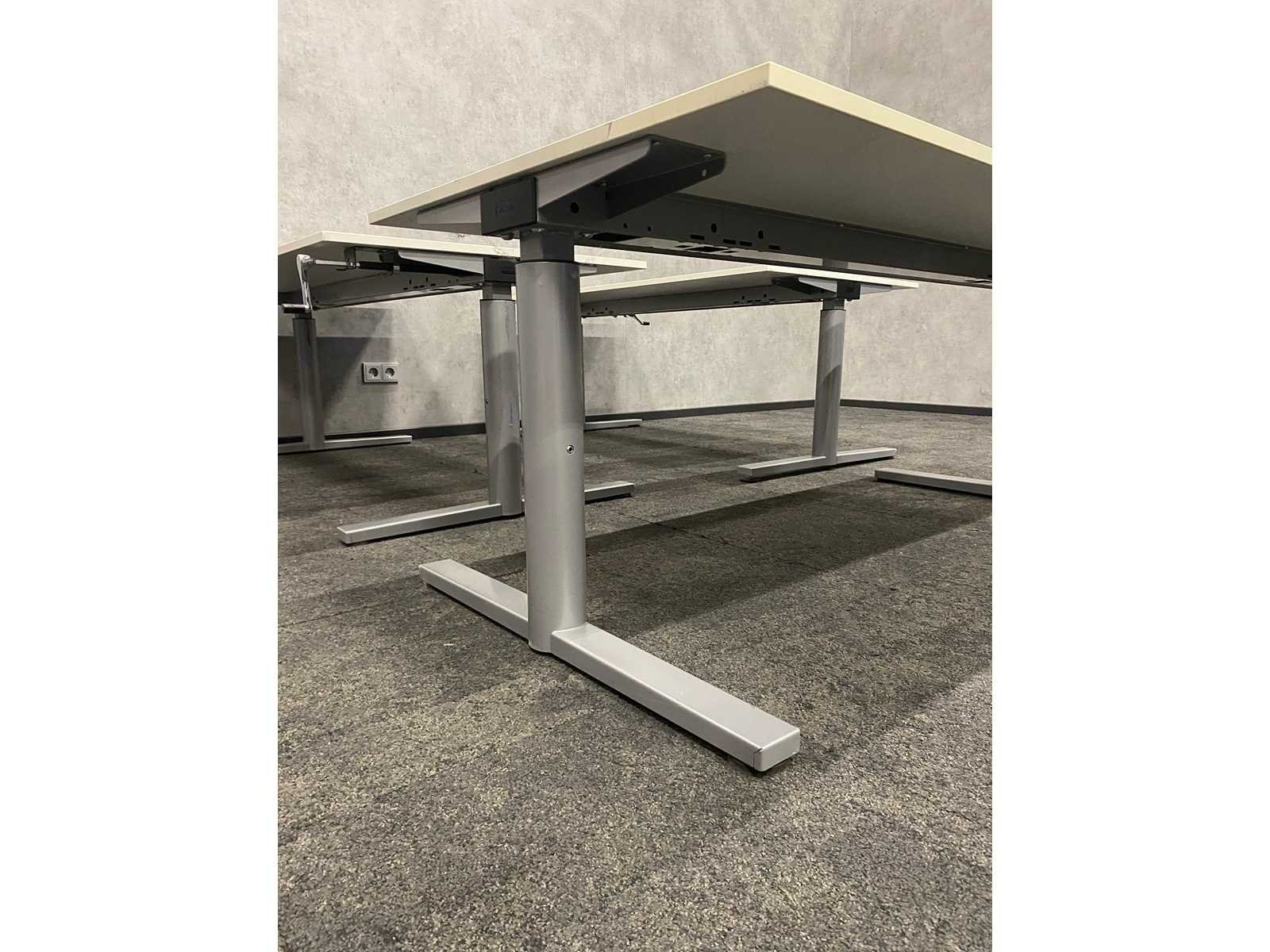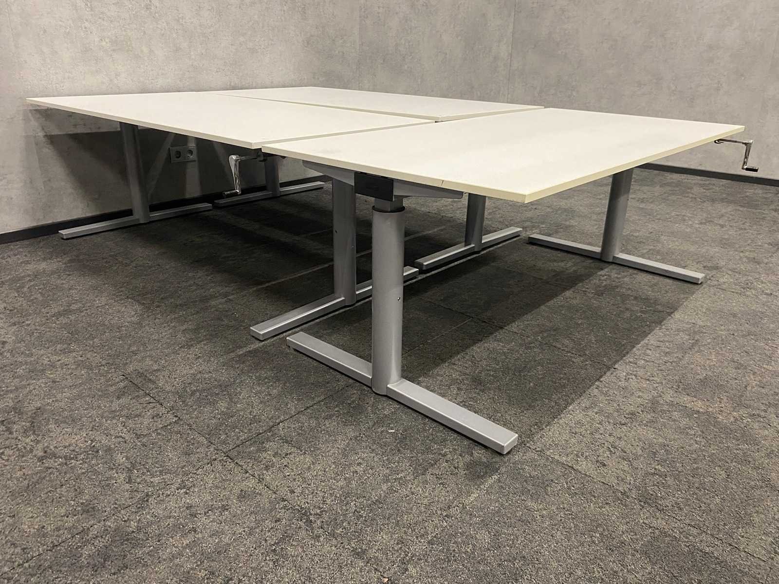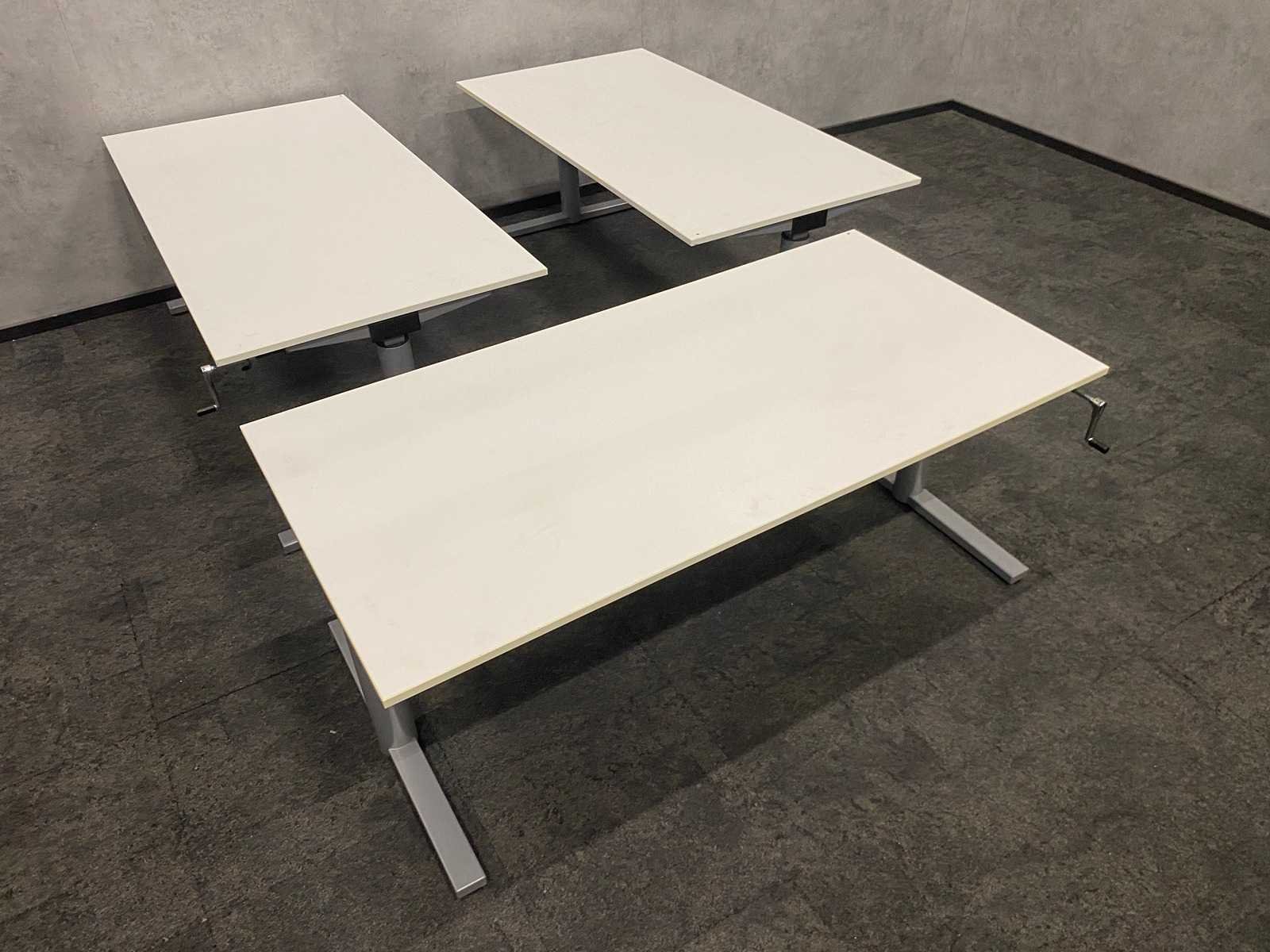 Nee Merk: 3x Gispen Slingerbureau: true Kleur: grijs, wit Breedte: 160cm Materiaal: metaal, melamine Diepte: 80cm
