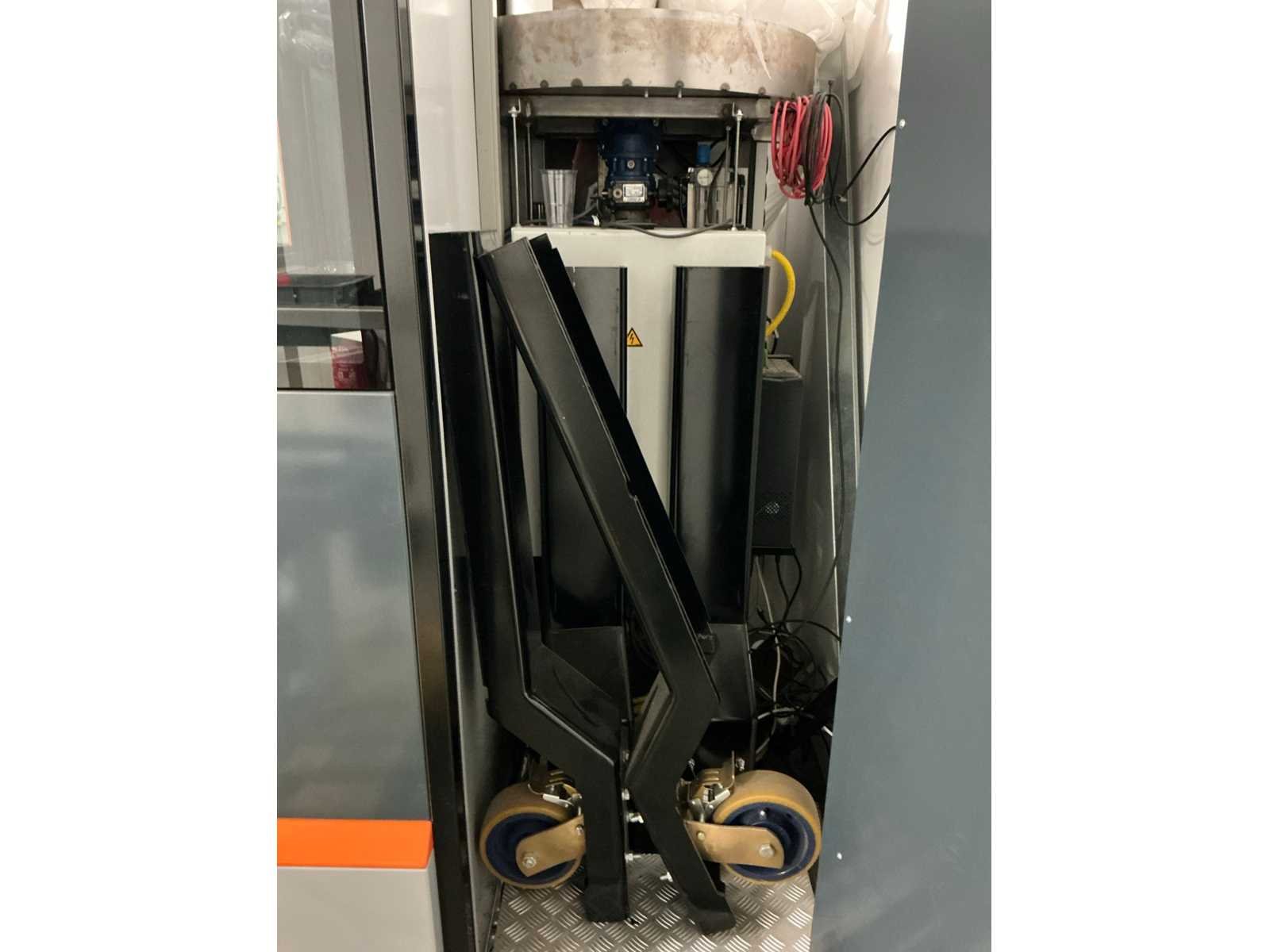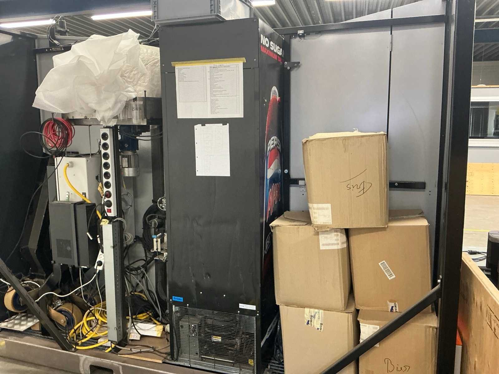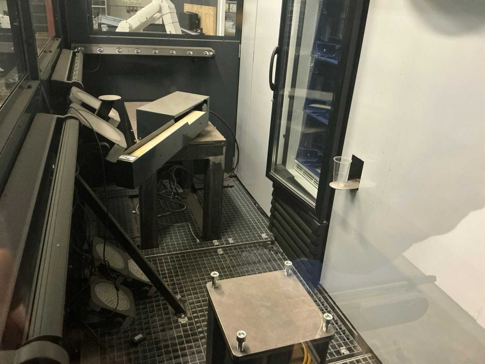 Opstelling ingericht voor de geautomatiseerde verkoop van dranken op evenementen. Voorzien van: koelkast, uitgifte lopende band, professionele verlichting, verkoopschema en transportwielen. Exclusief robot Nee Merk: Romias Model: Barduo Lengte: 320cm Breedte: 203cm Hoogte: 237cm
