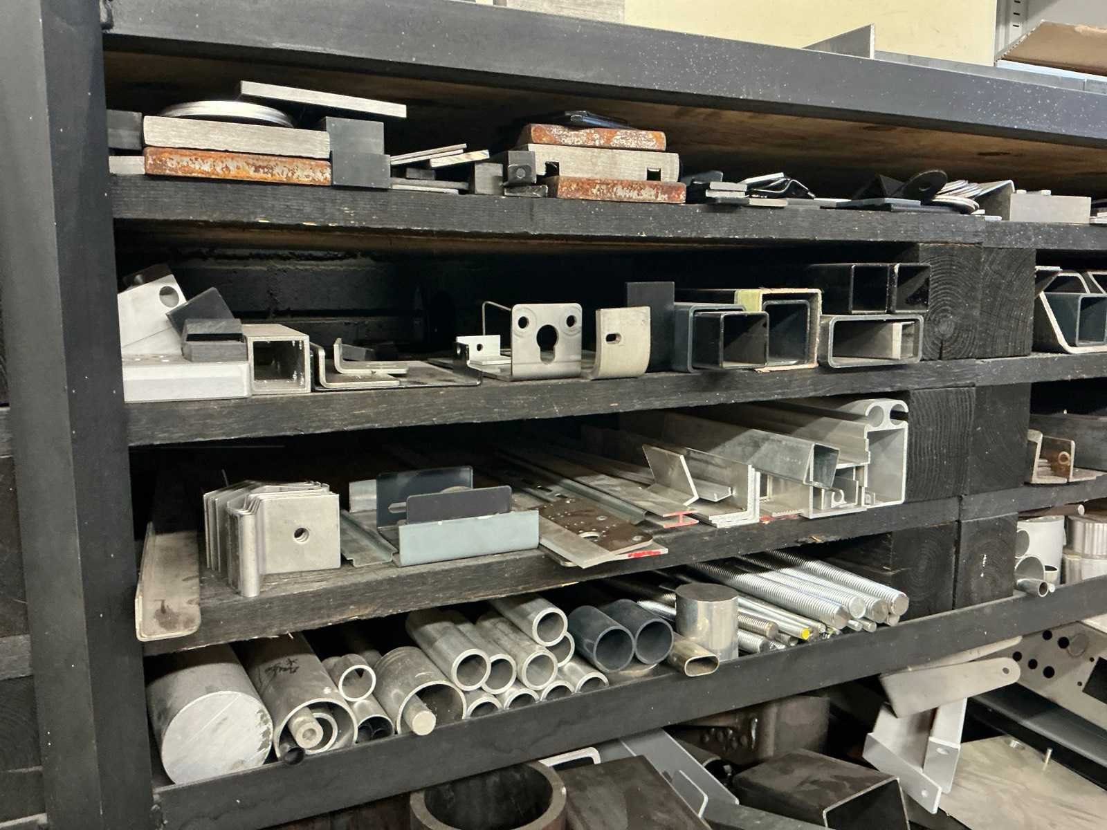 Stellingkast met reststukken staal, rvs en aluminium